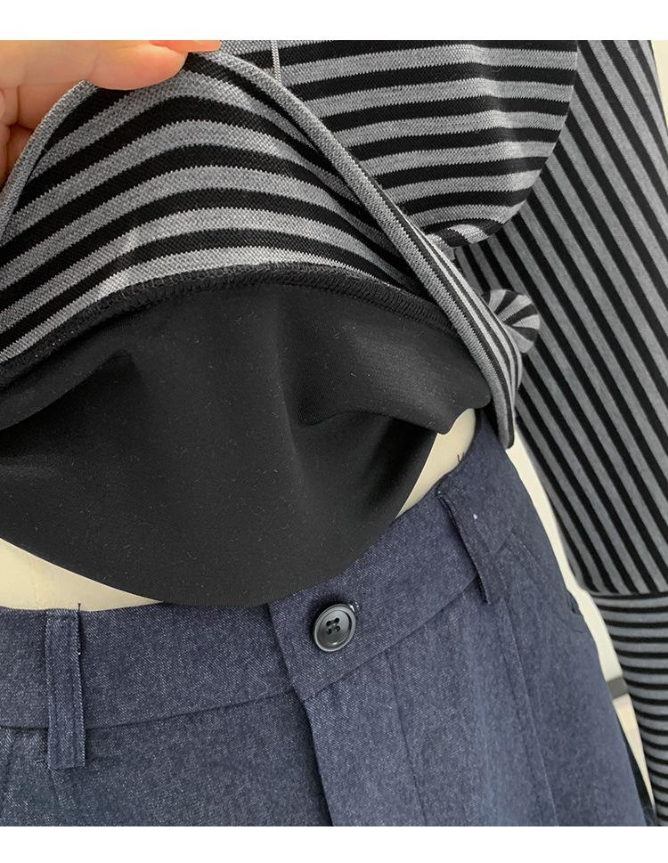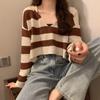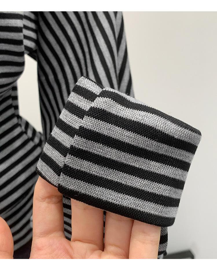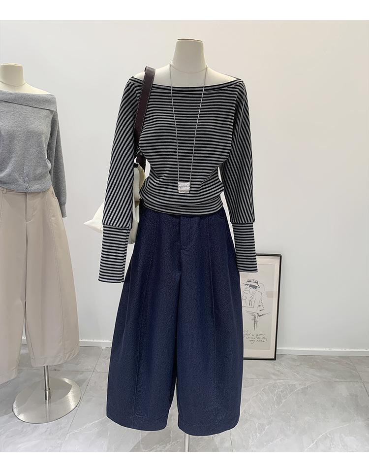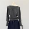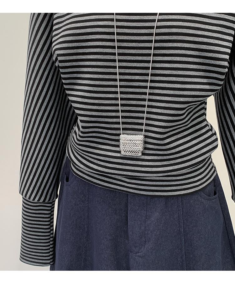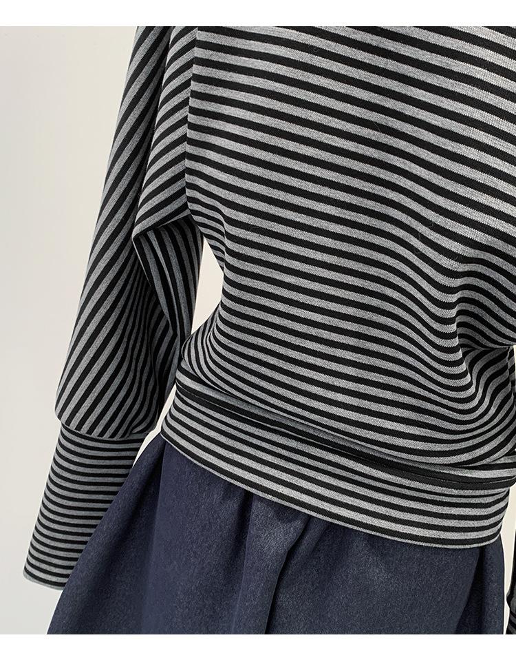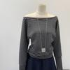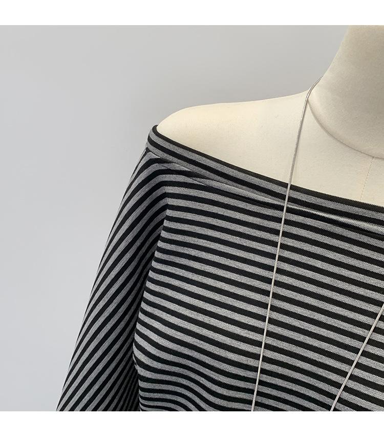Camiseta de Manga Larga a Rayas con Hombro Descubierto de Diseño Nicho para Mujer Estilo Coreano Otoño 2025 Nueva Llegada Buen Artículo Top con Hombro Descubierto