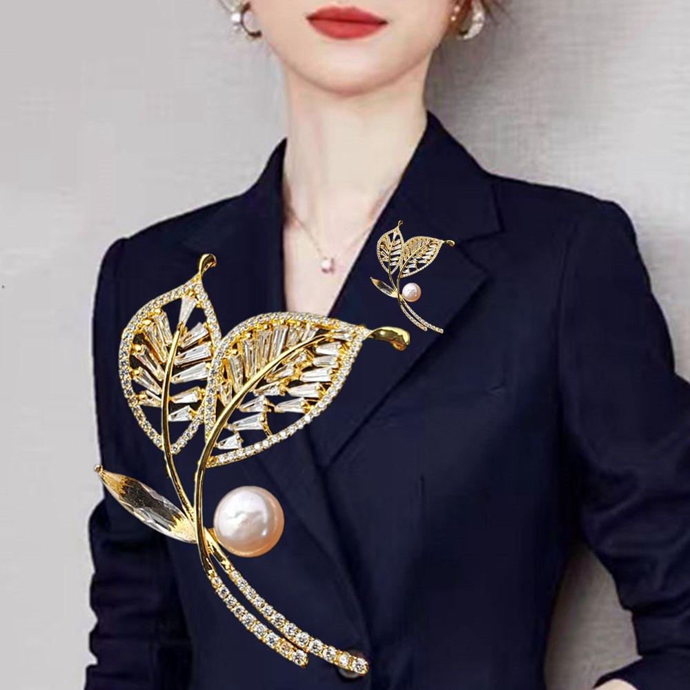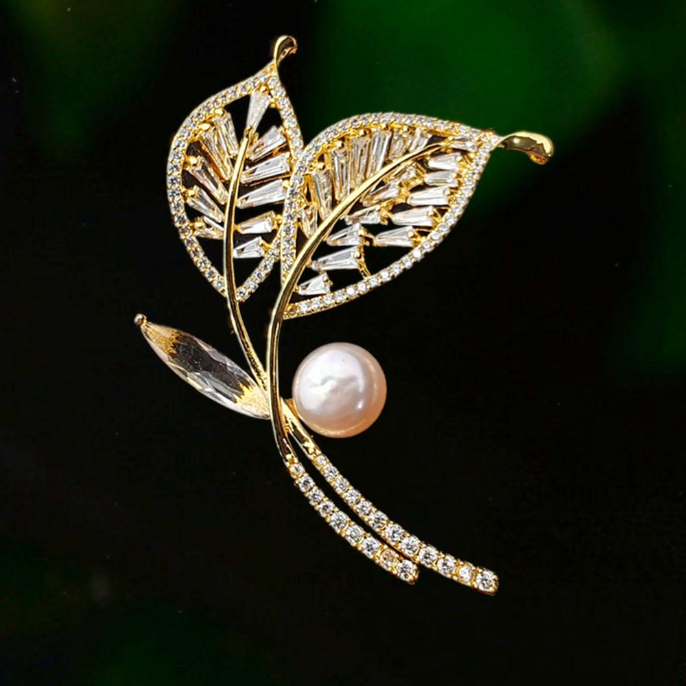 Broche de Zircón Nicho de Alta Gama Incrustado Perla de Agua Dulce Natural Corsage Versátil Alfiler para Ropa Accesorios Regalo