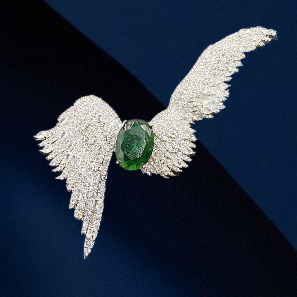 High-end wing brooch with luxurious zircon stone e