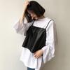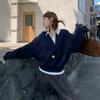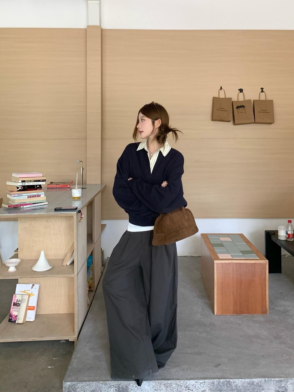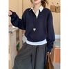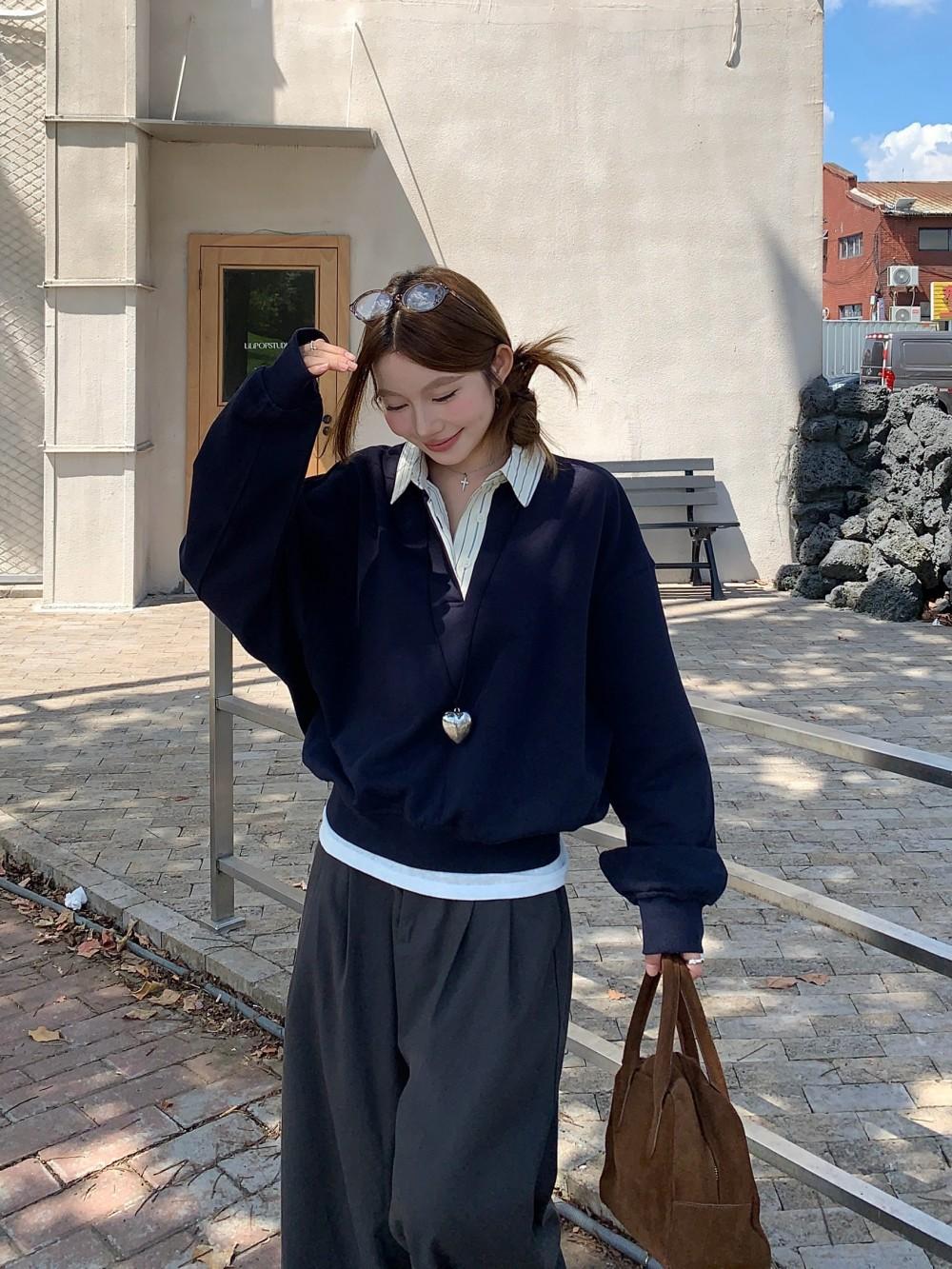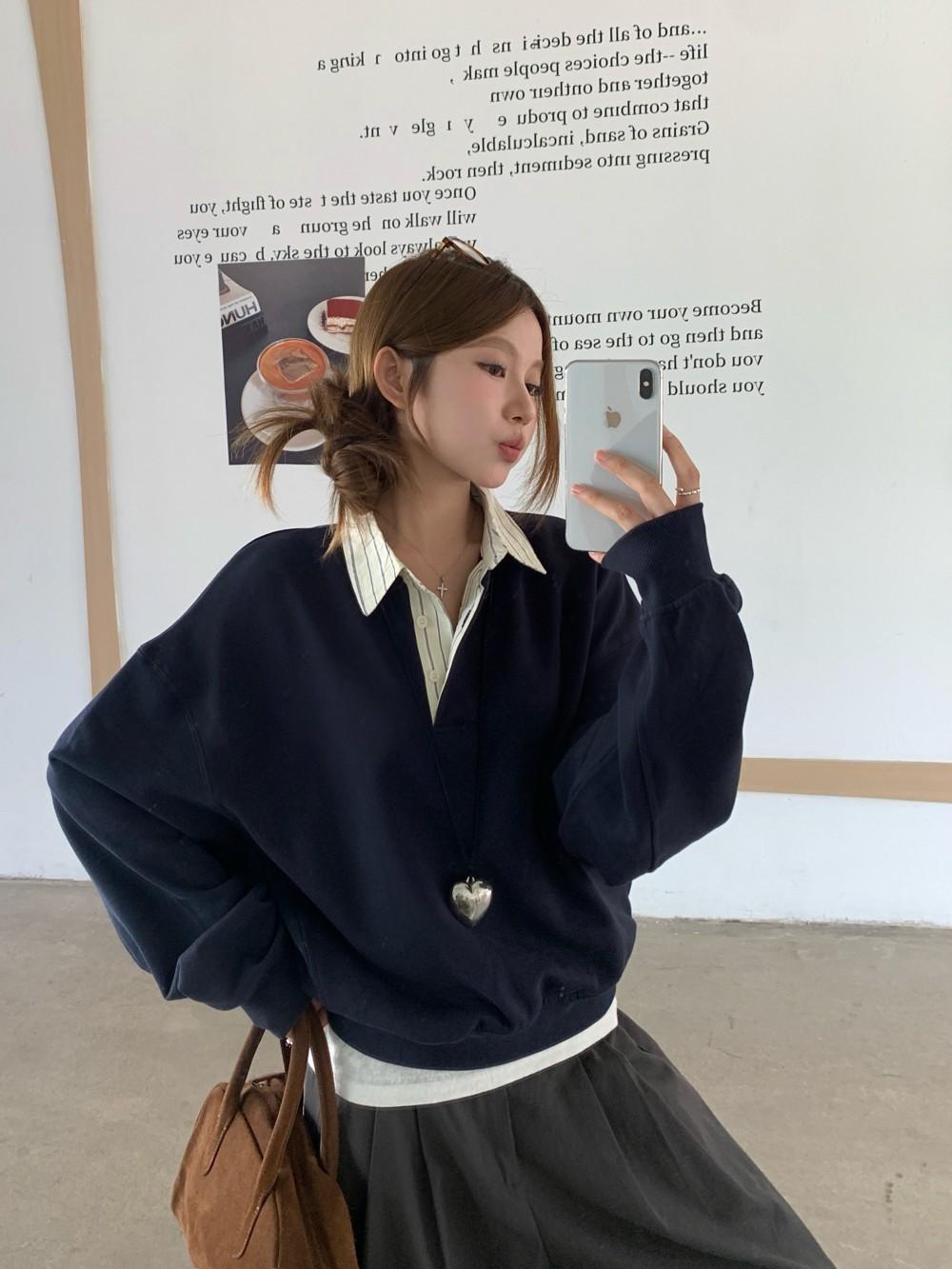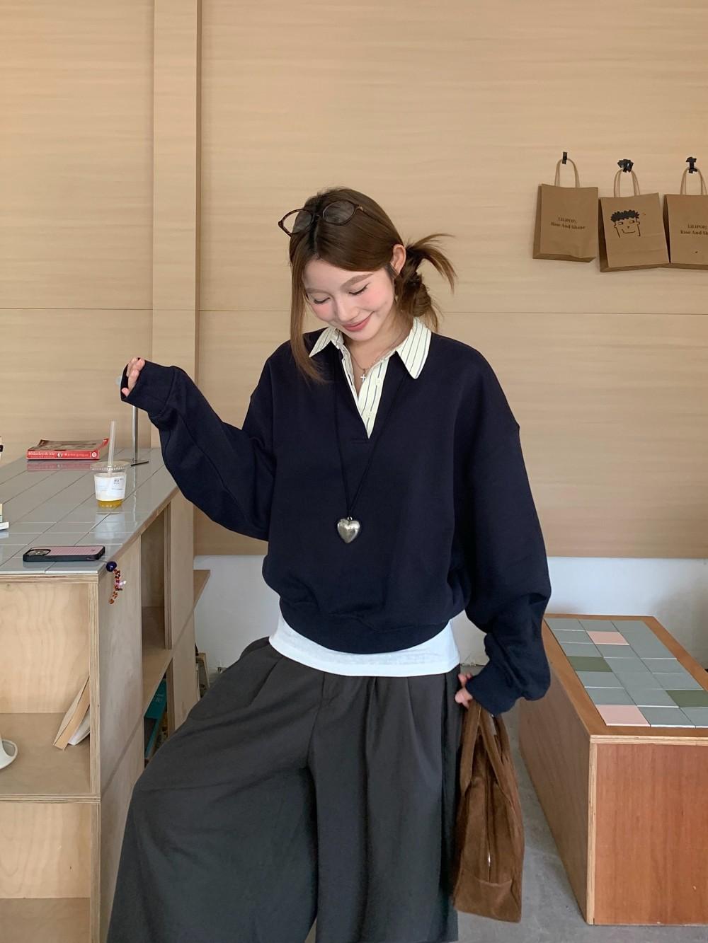 Foto Real Otoño 2025 Nuevo Dulce Estilo Preppy Falso Dos Piezas Cuello Camisero Suéter Holgado Mujer 89138