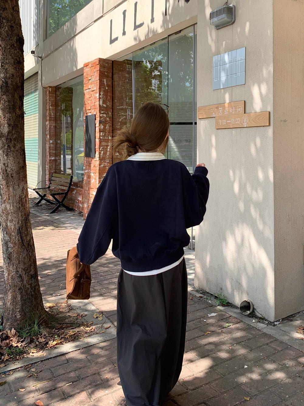 Navy striped collar sweatshirt