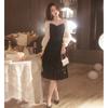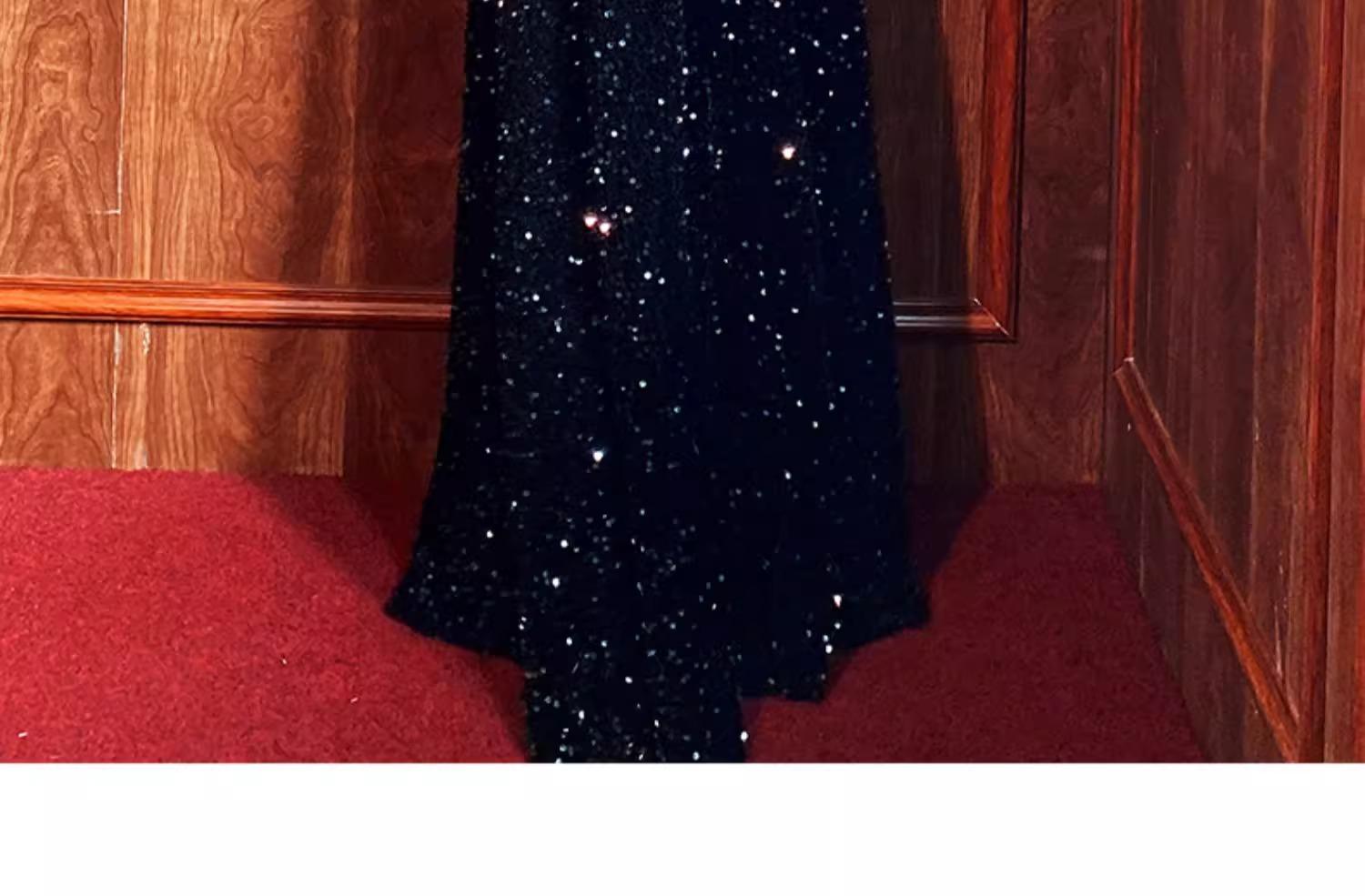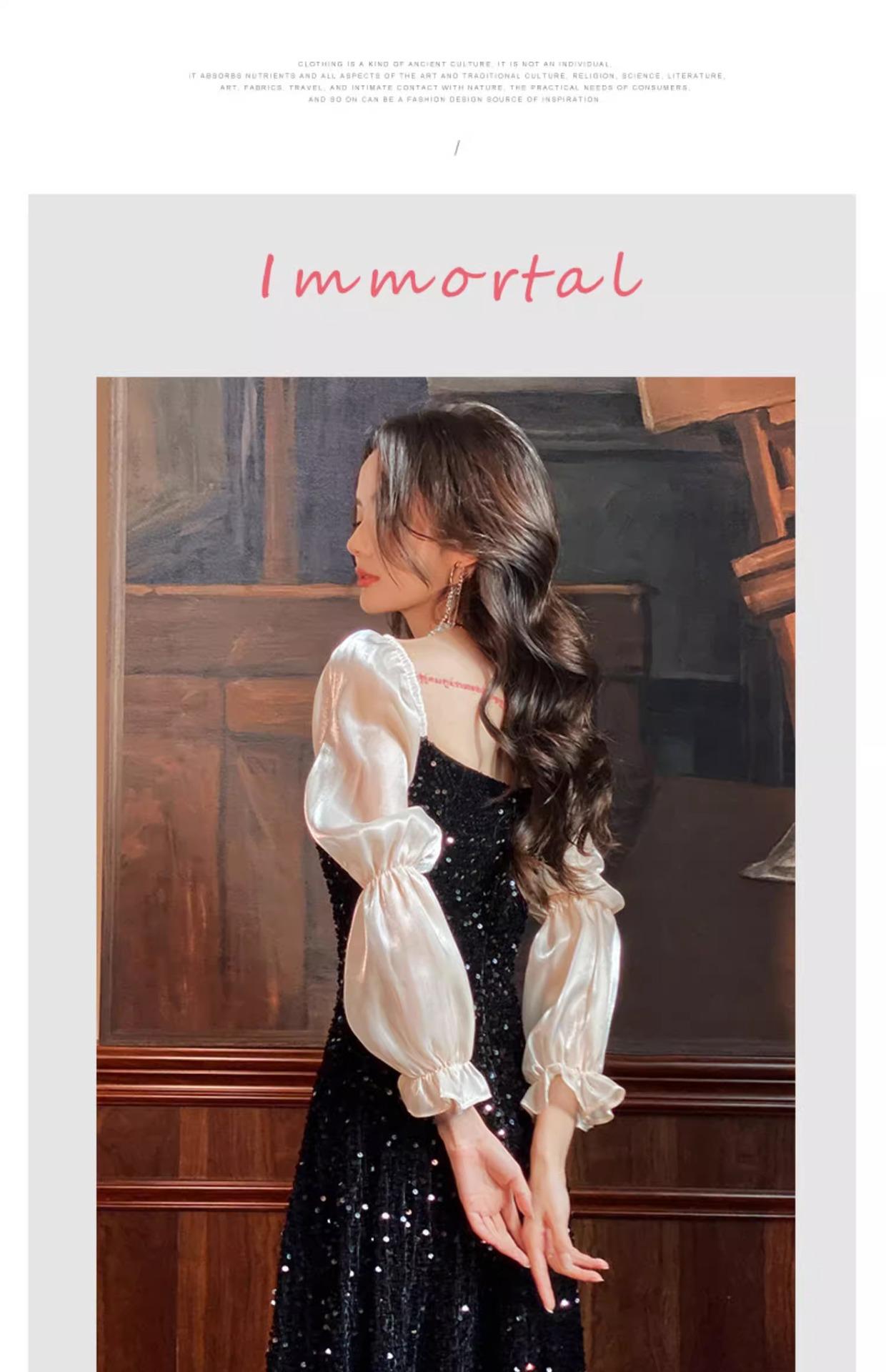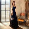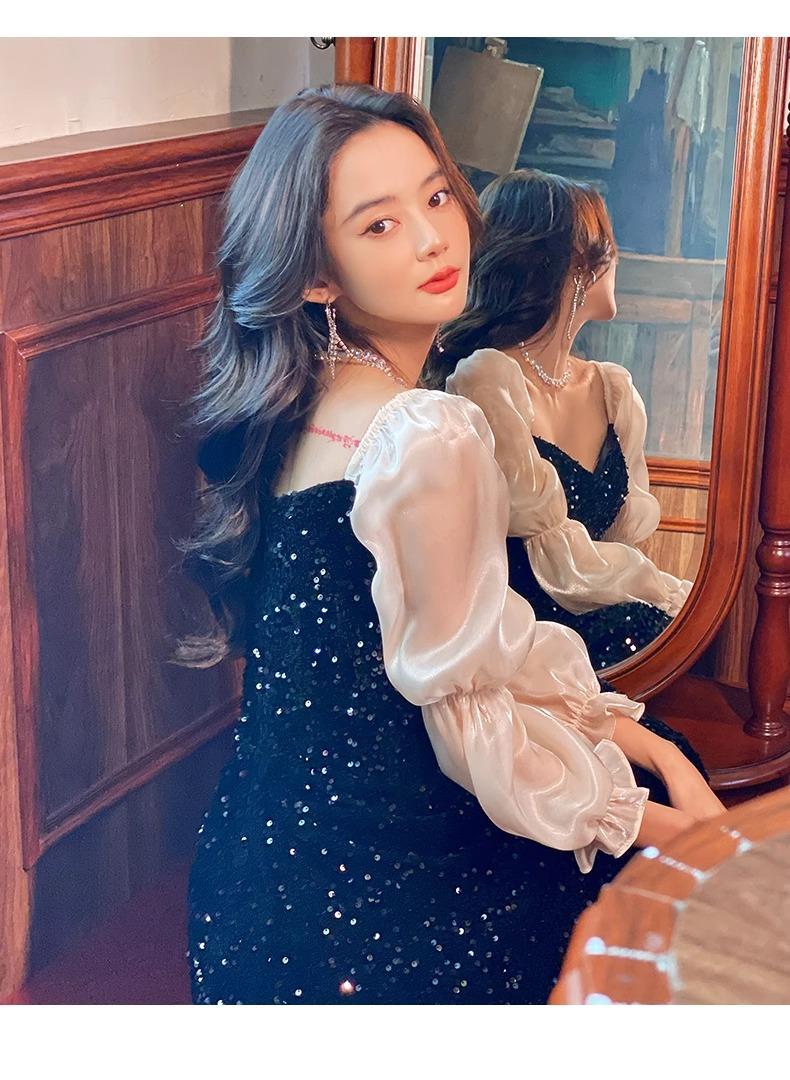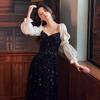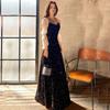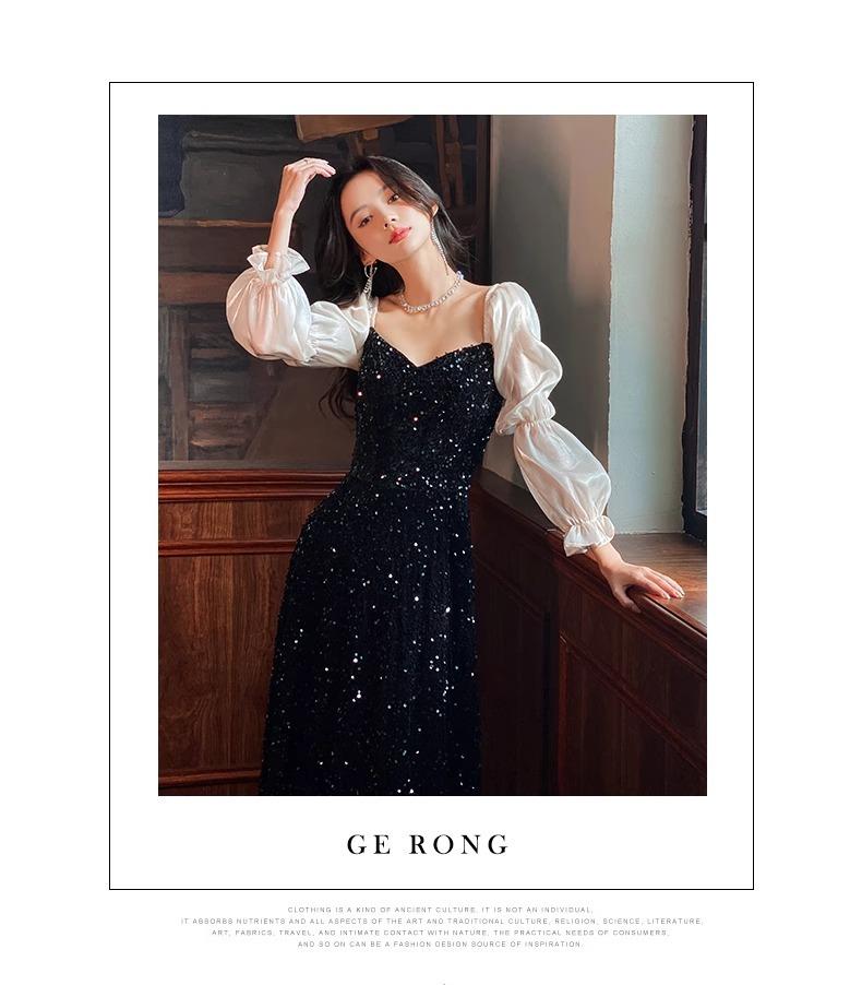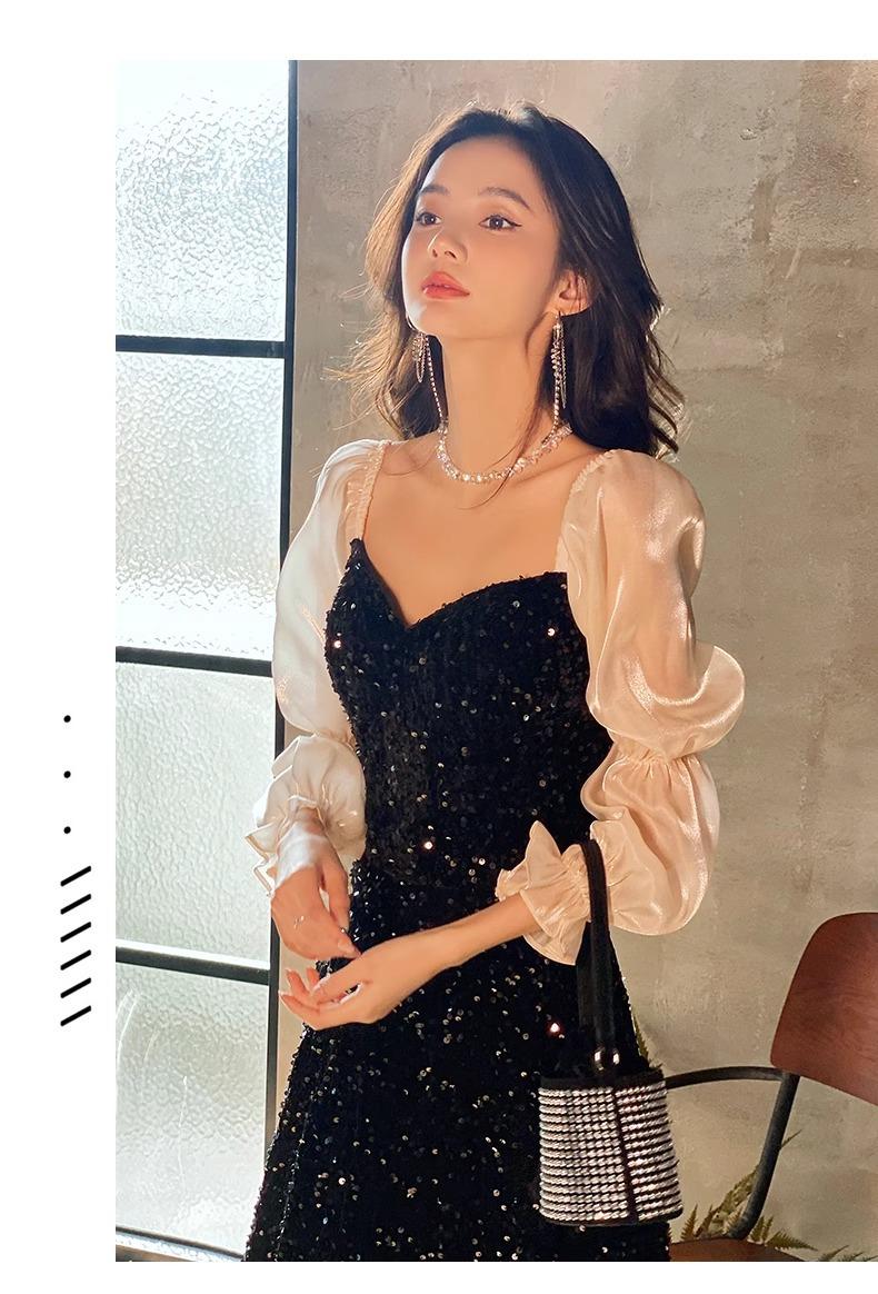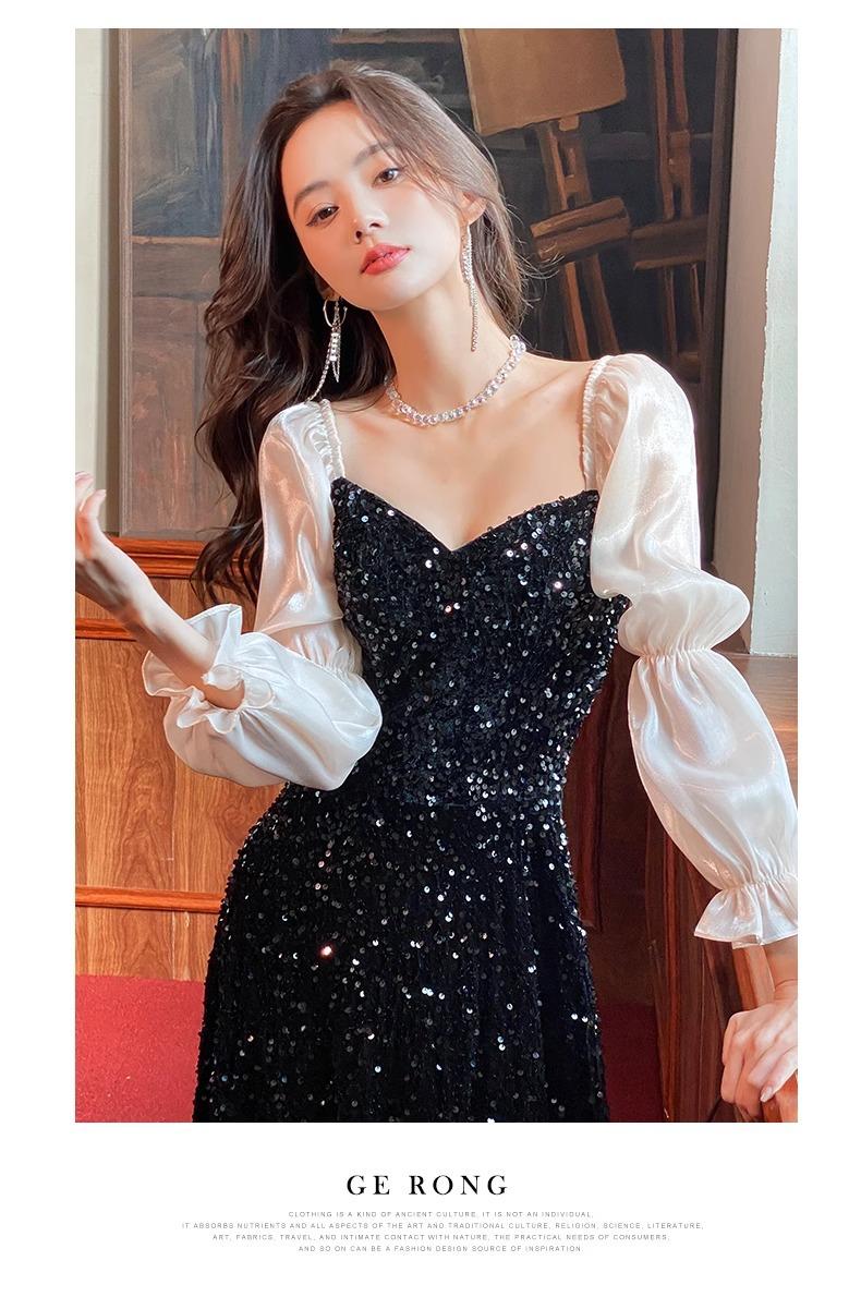 Vestido de Noche Negro para Reunión Anual para Mujer 2025 Nuevo Elegante con Clase Anfitrión Textura con Clase Manga Larga Examen de Arte Noble