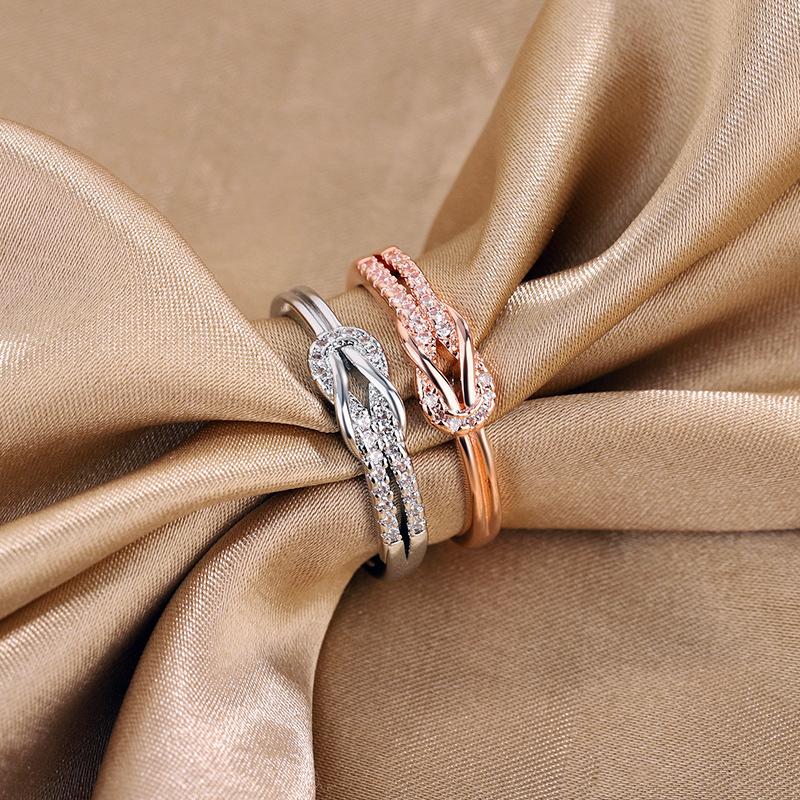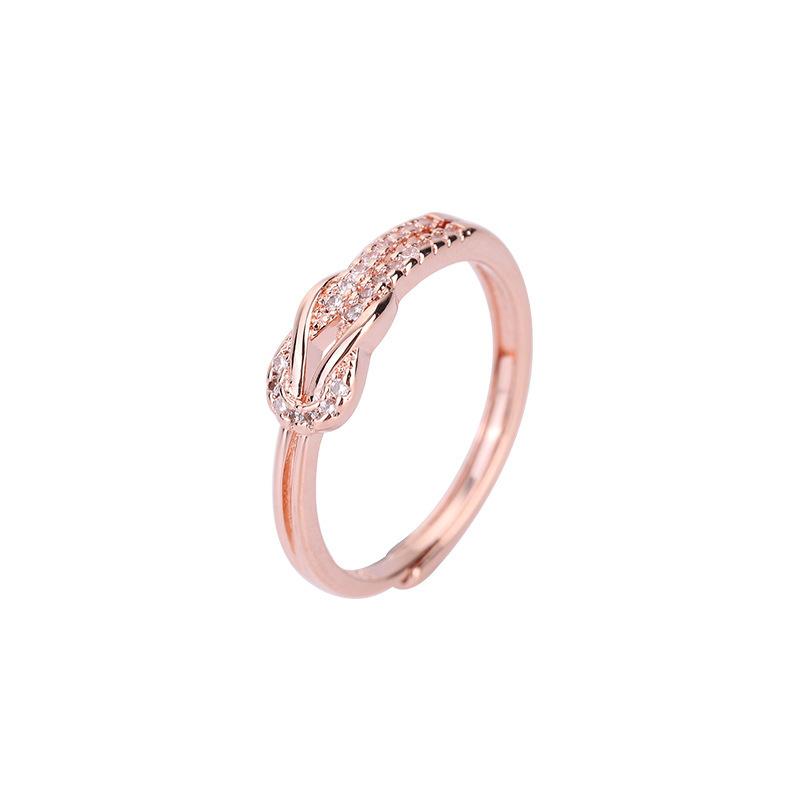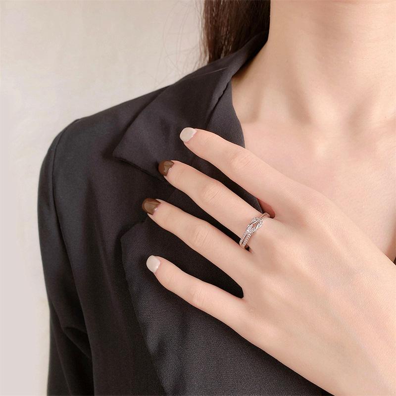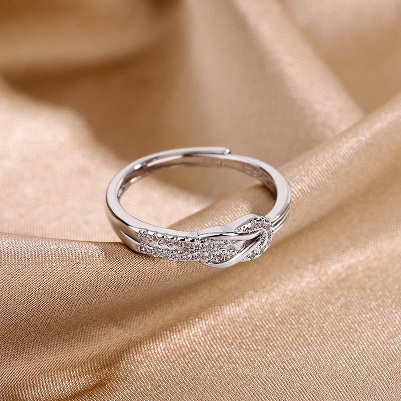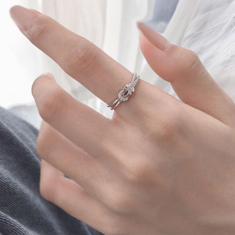 Anillo de diamantes de lujo de moda versión coreana diseño nicho temperamento personalidad anillo de nudo suministro al por mayor