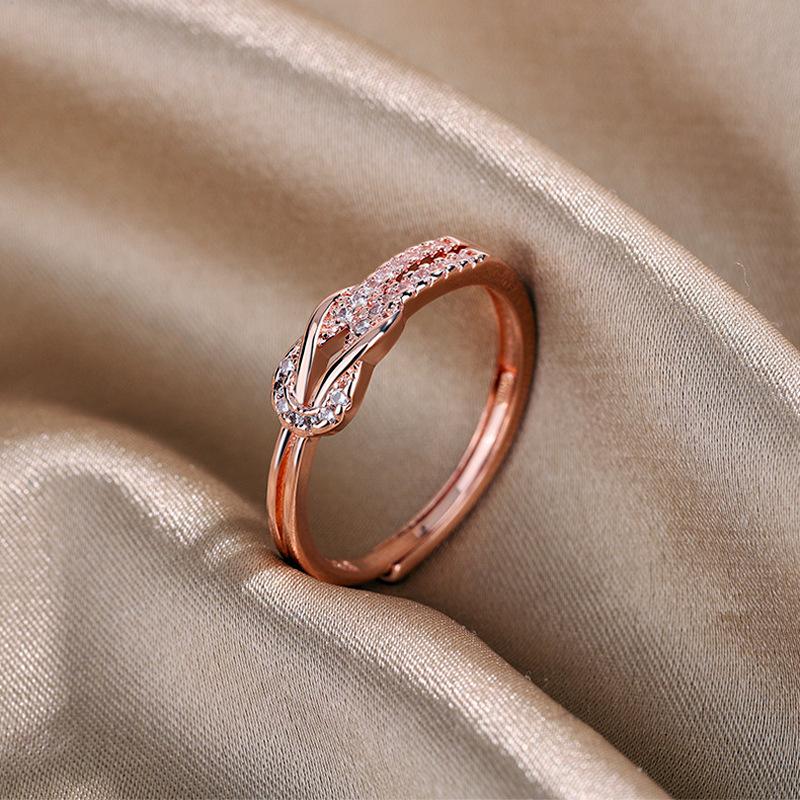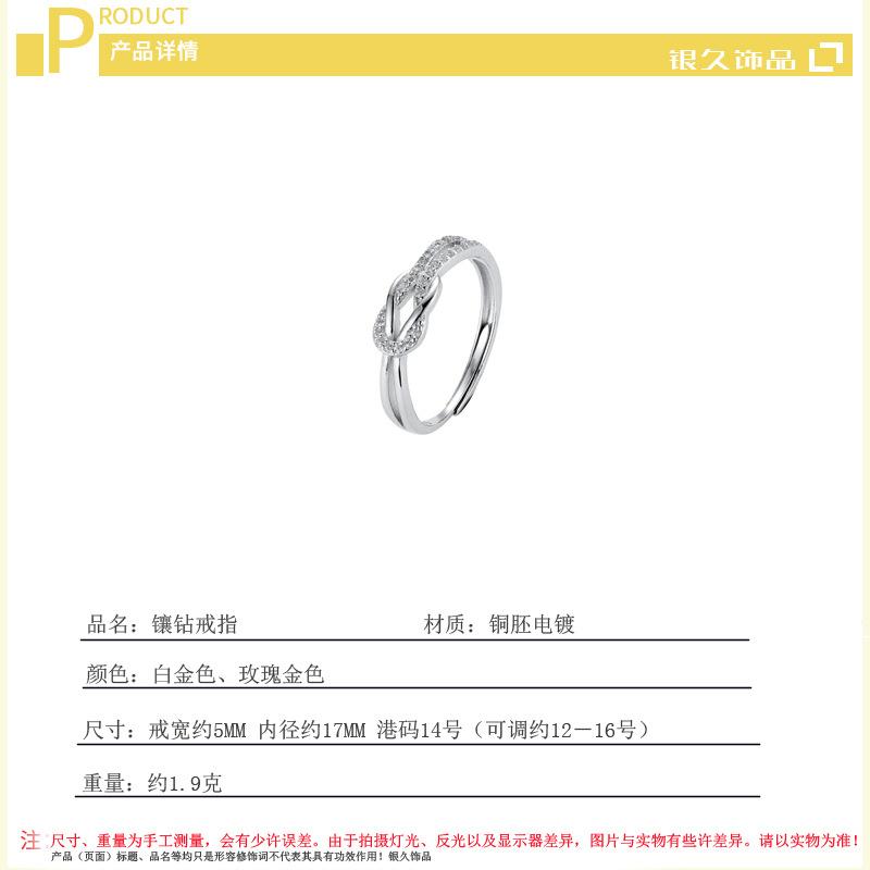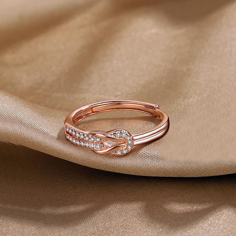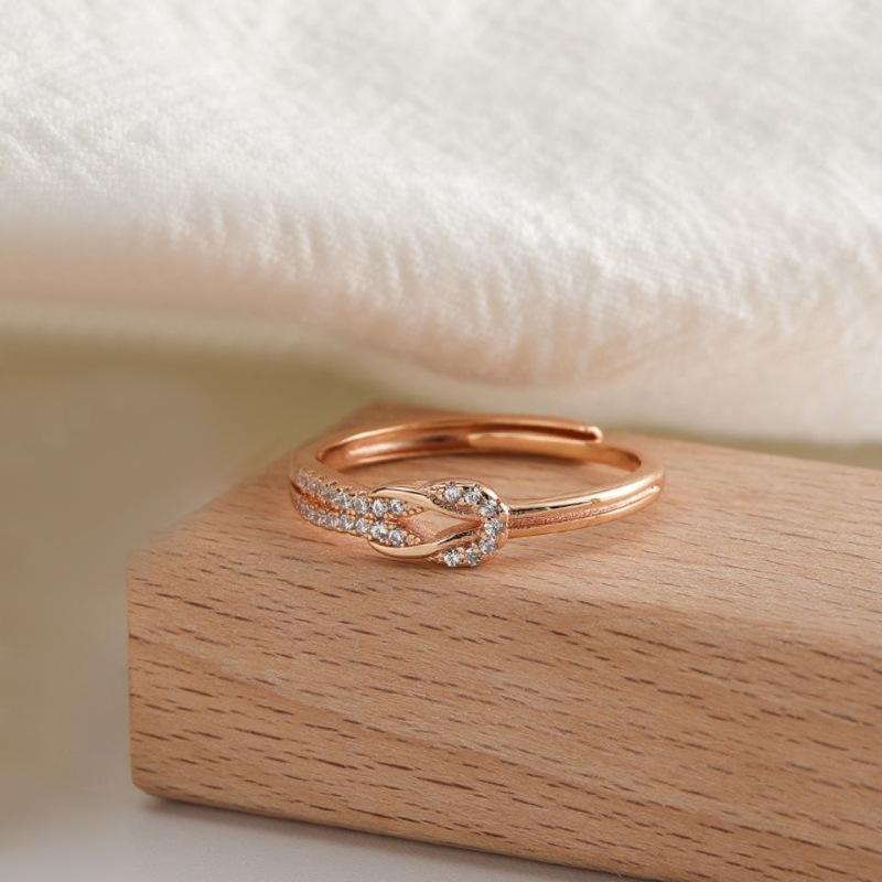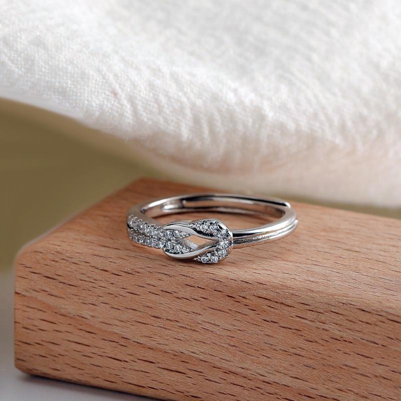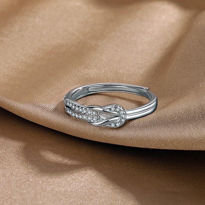 Anillo de diamantes de lujo de moda versión coreana diseño nicho temperamento personalidad anillo de nudo suministro al por mayor