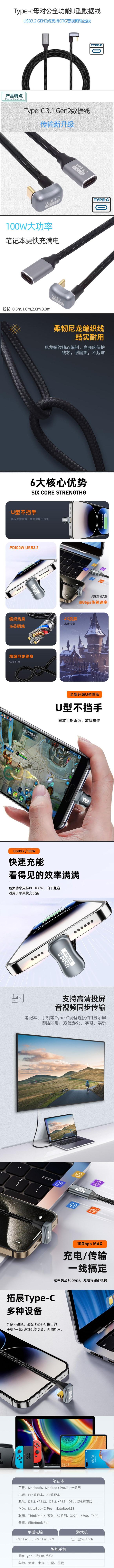 Cable de datos de extensión Tipo-C macho a hembra en forma de U línea USB-C GEN2 línea de salida de audio y video OTG 10Gbps