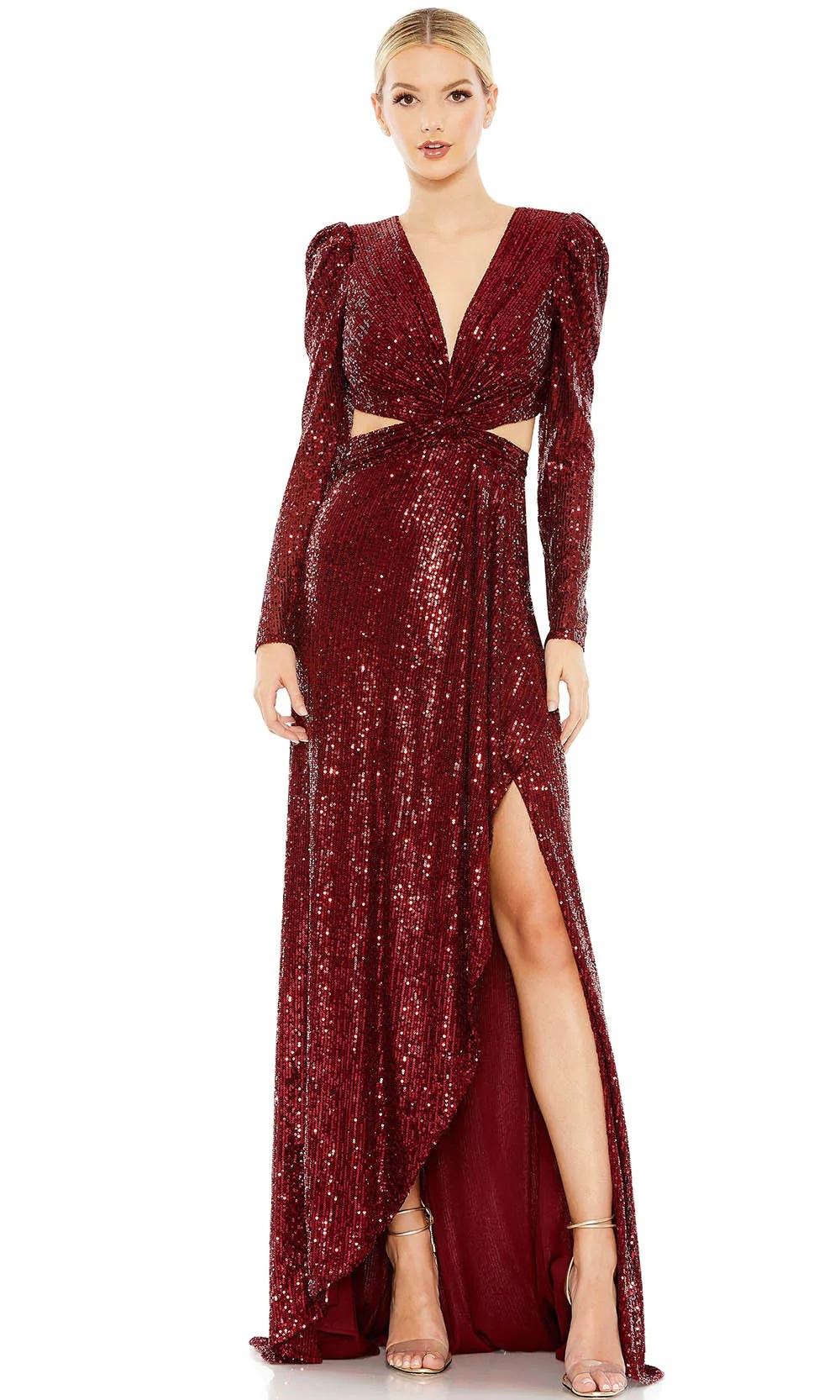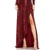 Nuevo Vestido de Noche de Banquete para Mujer de Lentejuelas de Color Sólido con Cordones Europeo y Americano con Cuello en V y Manga Media Amazon Hip