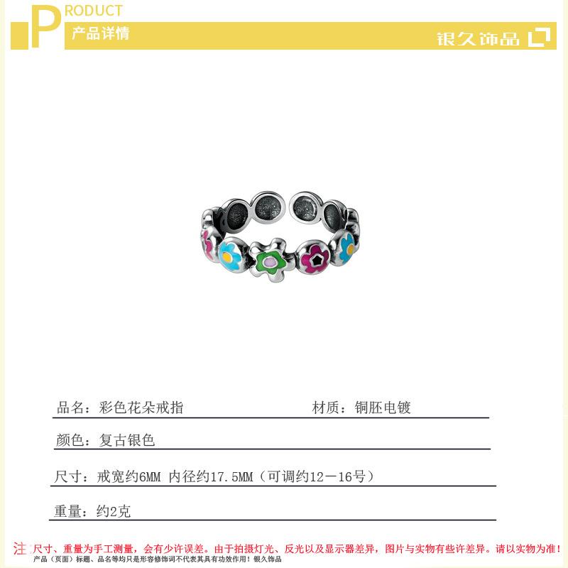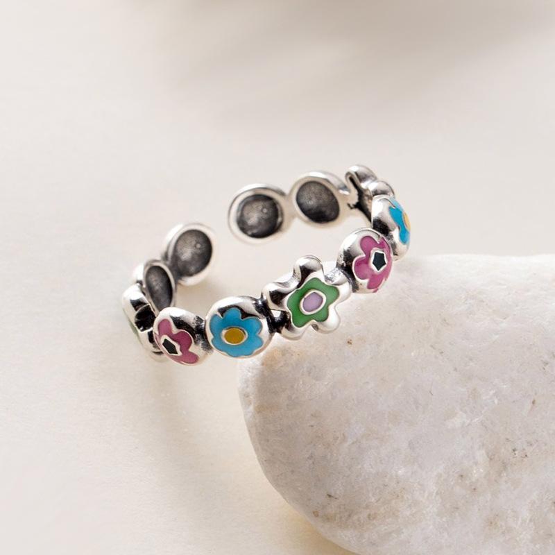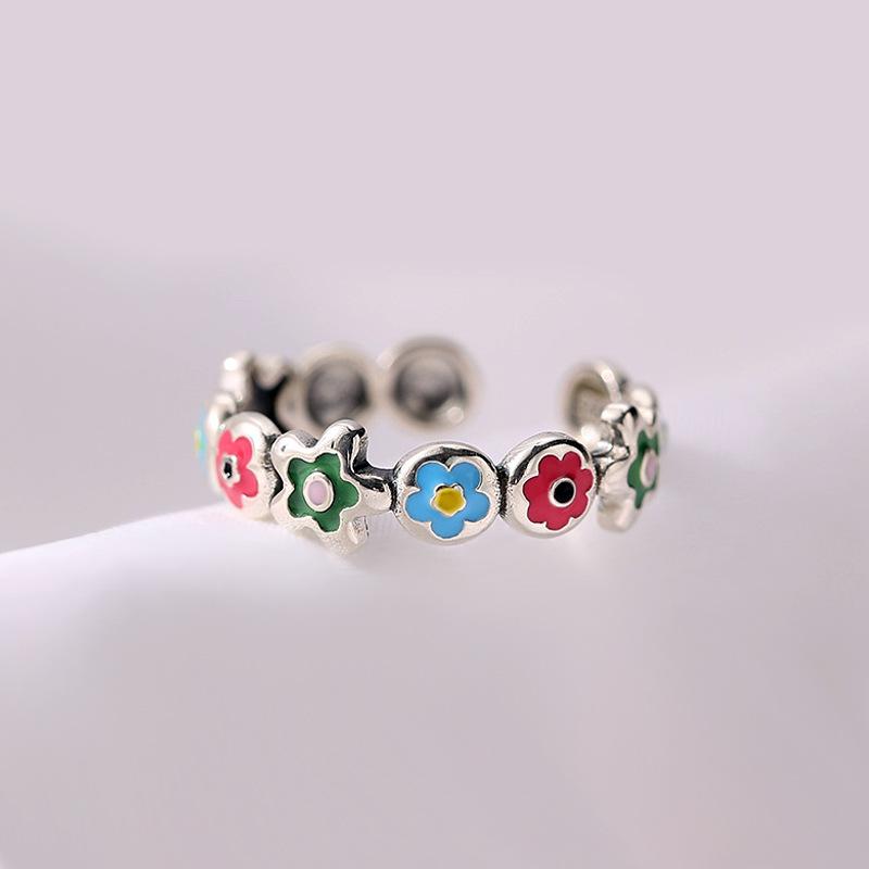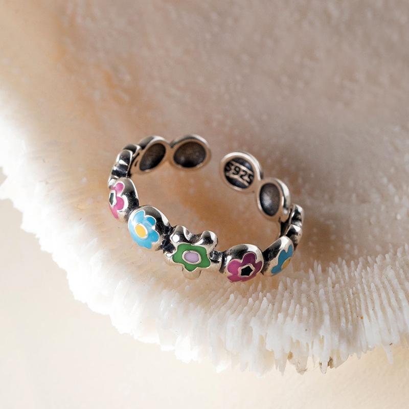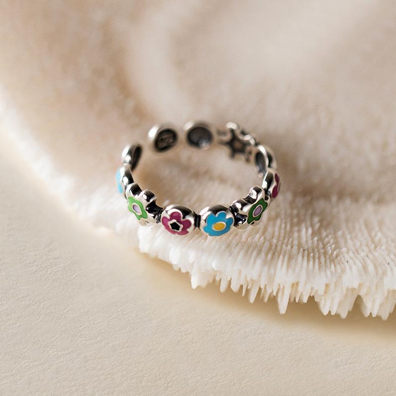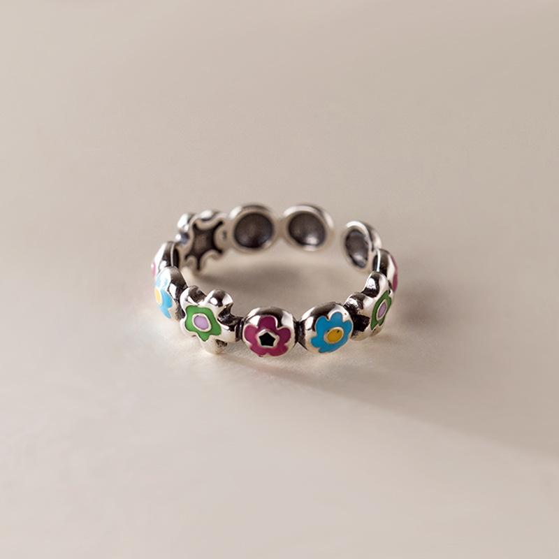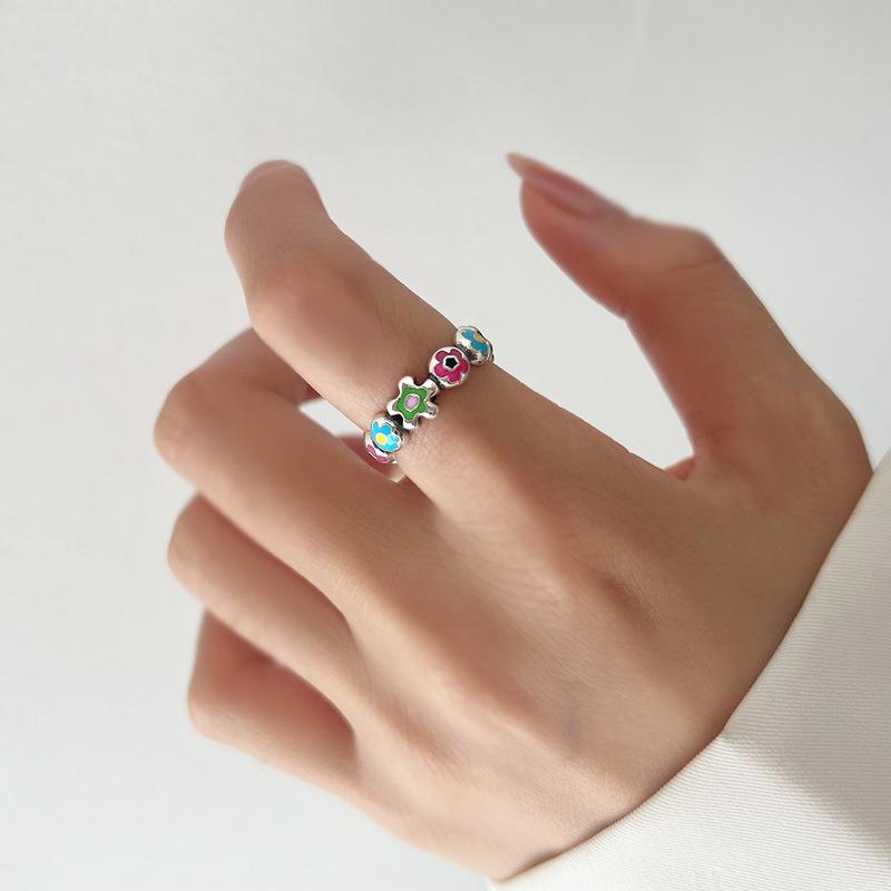 Anillo de flores colorido estilo ins otoño e invierno Nuevo diseño nicho versátil elegante dulce anillo de flor pequeña de epoxi