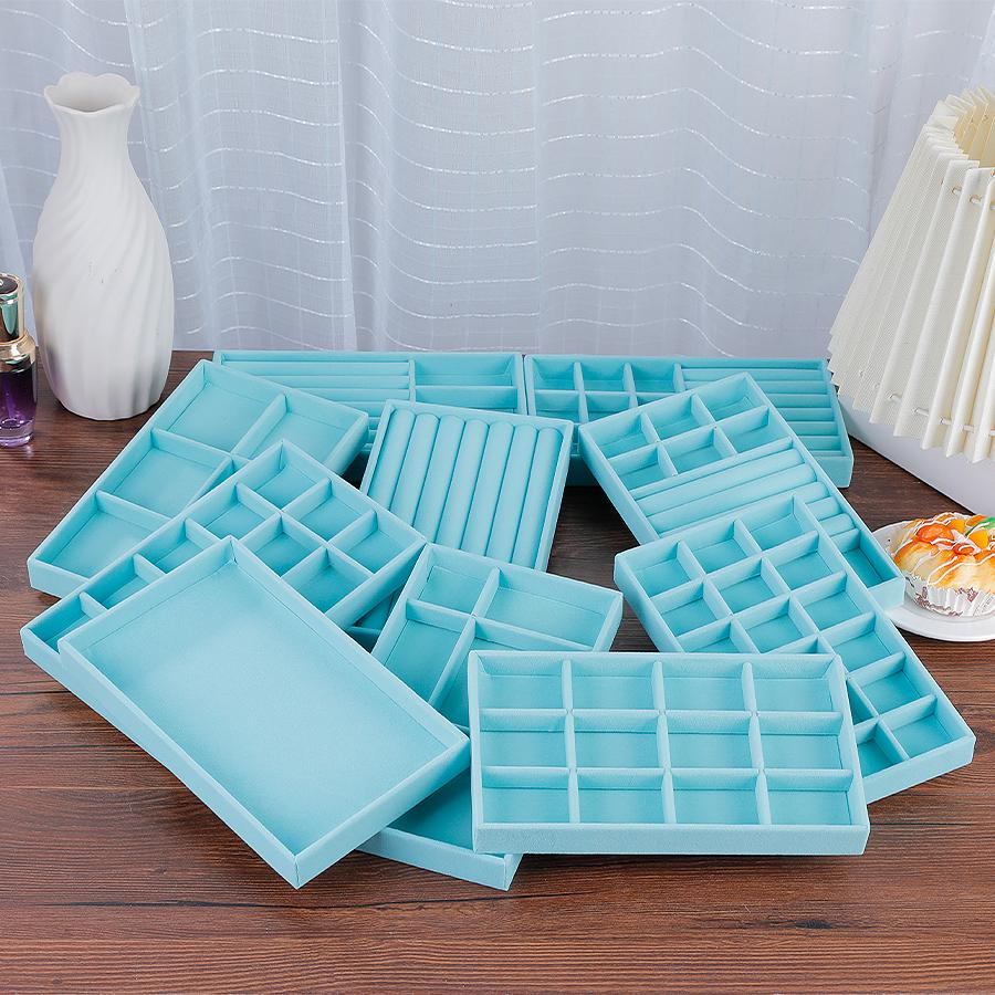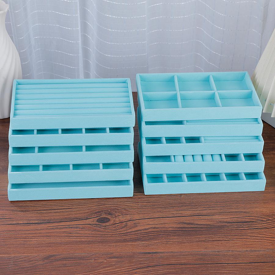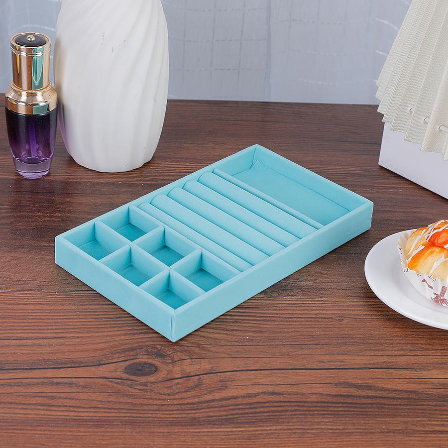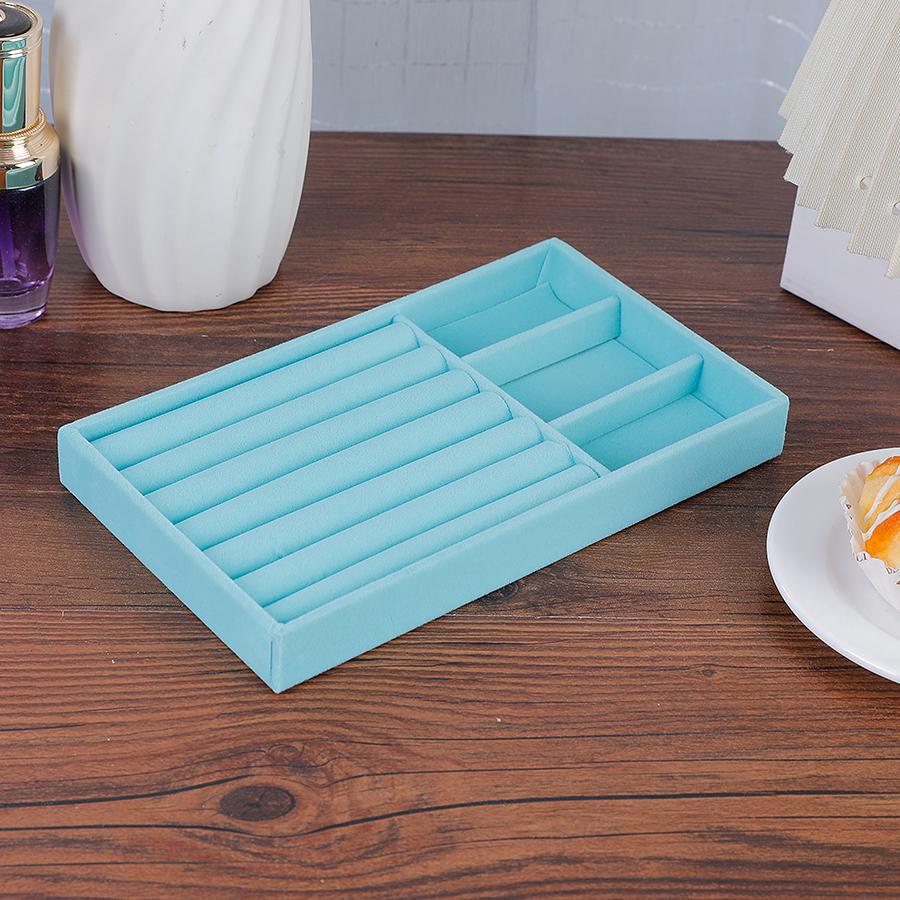 Bandeja pequeña de terciopelo azul multiespecificación, caja organizadora de joyas con cajón, collar, anillo, bandeja divisoria para exhibición de tocador