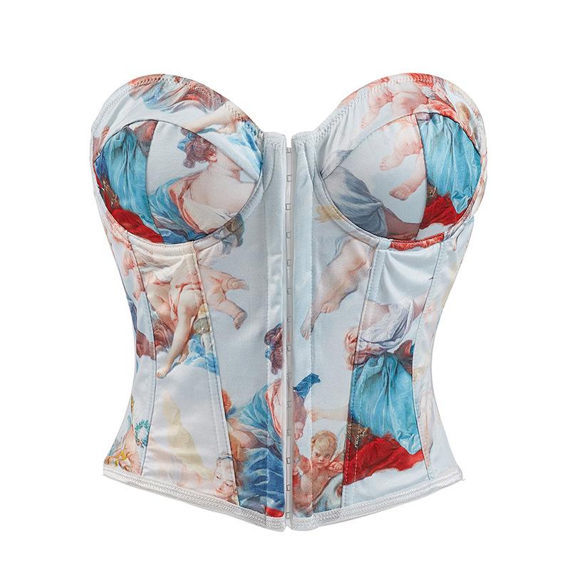 Comercio Exterior Transfronterizo Sexy Chica Caliente Corte Bajo Espalda Descubierta Hebilla Delantera Vintage Floral Bandeau Diamante Ballena Corsé Chaleco Tubo Top
