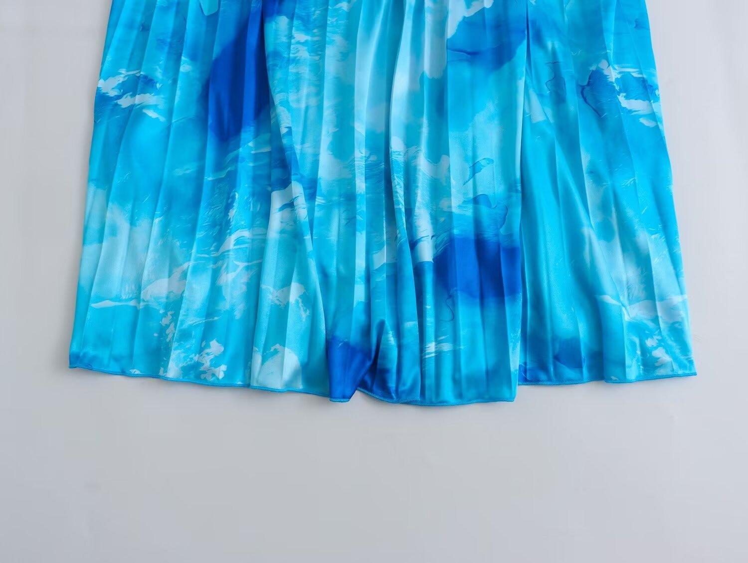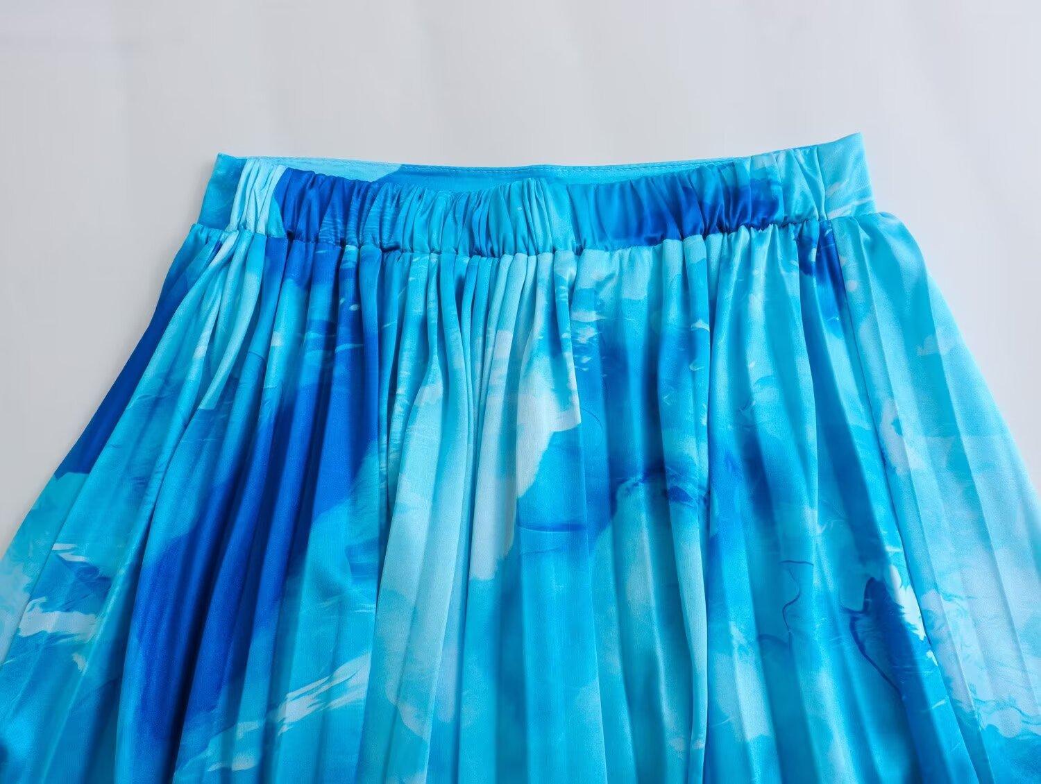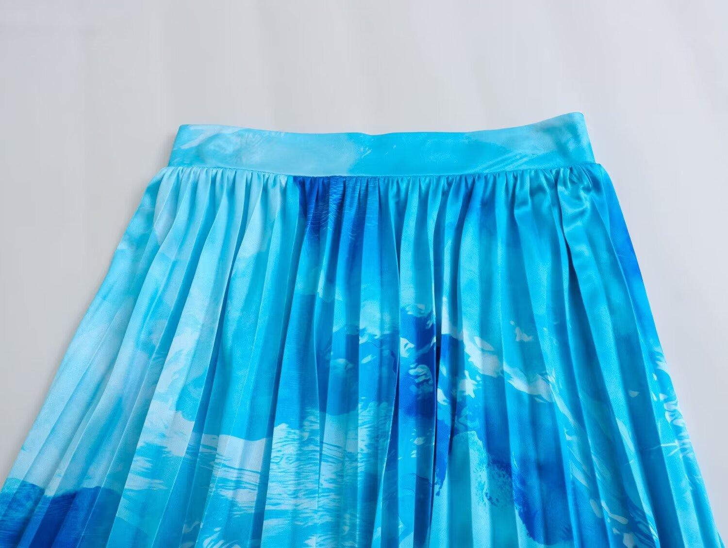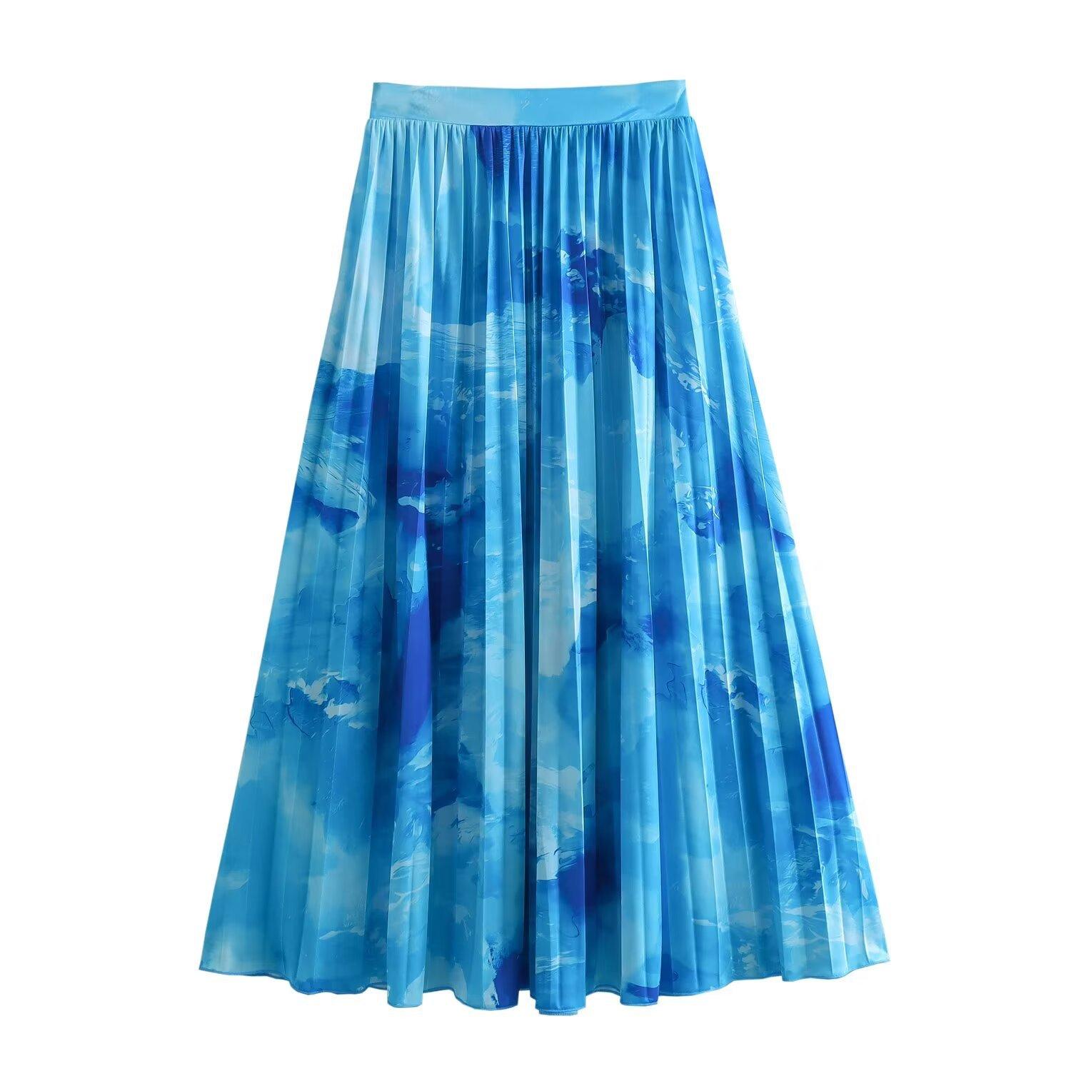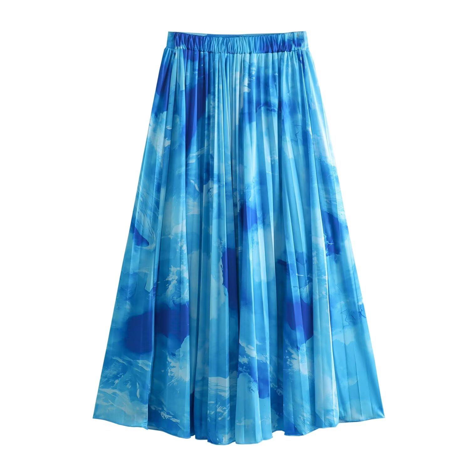 Falda midi plisada estampada de media longitud para mujer, nuevo estilo europeo y americano 2024 al por mayor