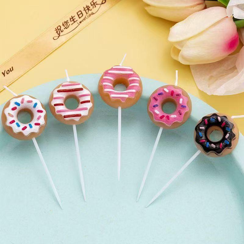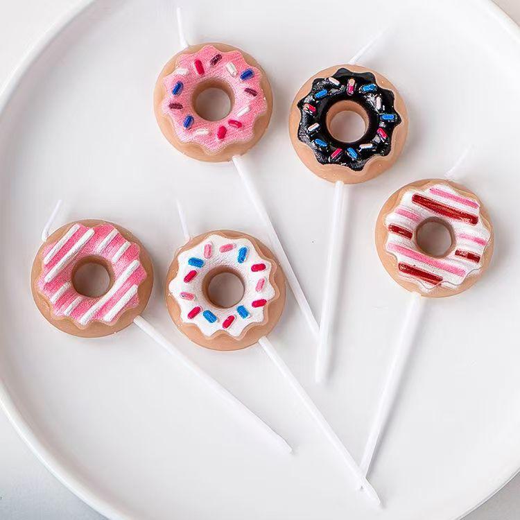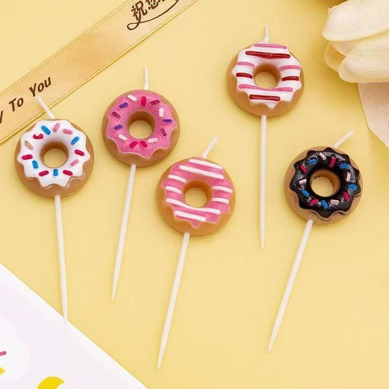 Linda Vela de Donut Fiesta Estilo Surcoreano Accesorios para Fotos Decoración de Pastel para Hornear Vela de Cumpleaños