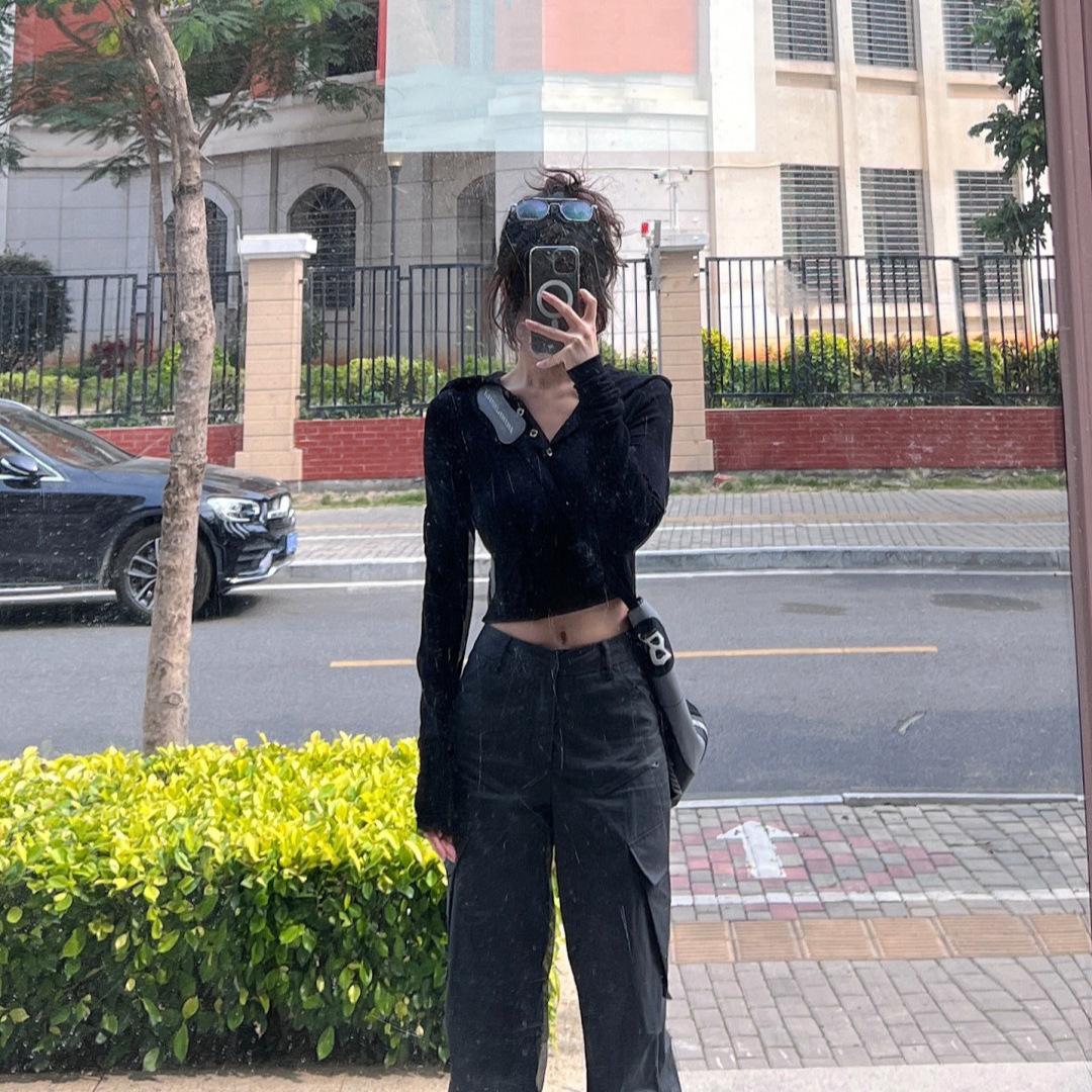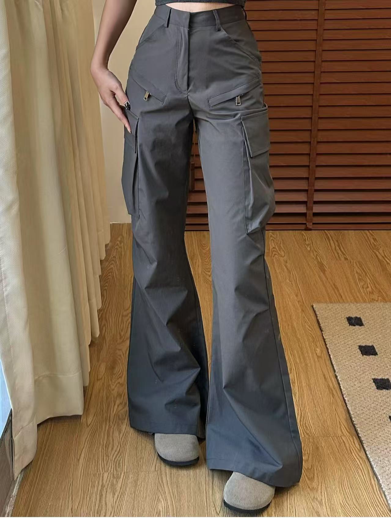 Pantalones Cargo Gris Oscuro de Cintura Alta Nuevos 2025 Estilo Americano Dulce Cool Pierna Recta Pantalones Casuales Adelgazantes para Mujeres Altas Pantalones Acampanados