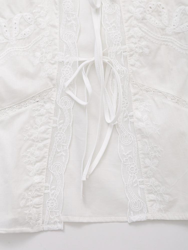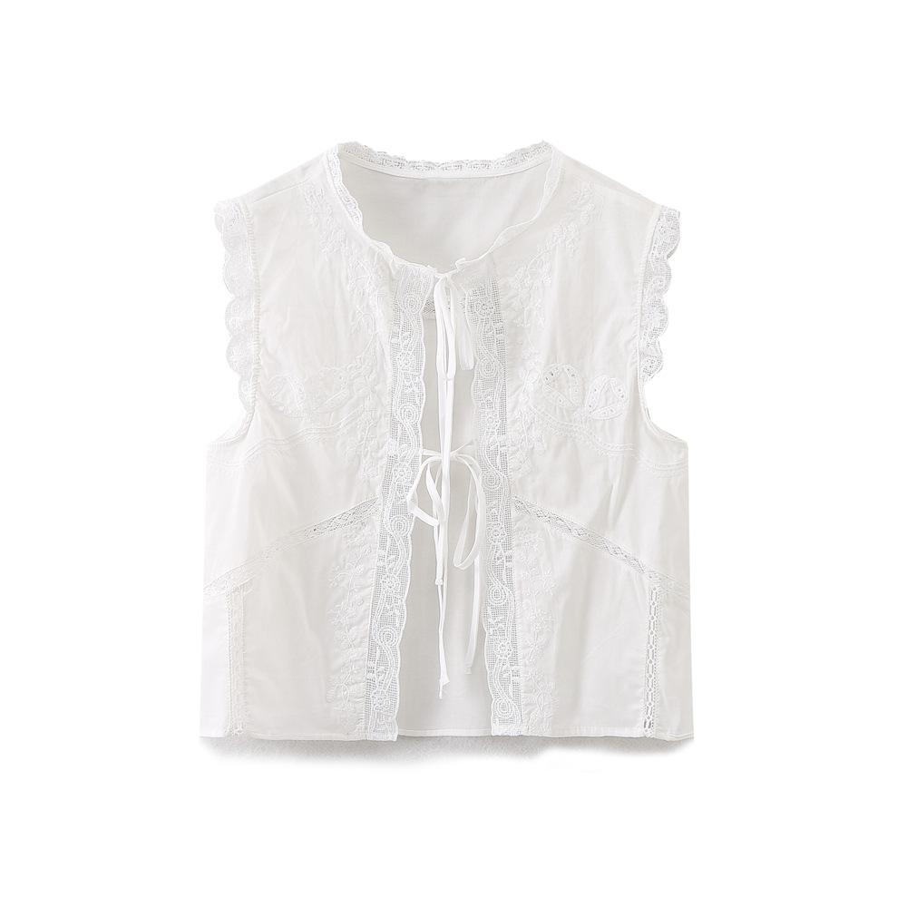 Venta al por mayor 2024 Primavera Nuevo Estilo Europeo Americano Top de Mujer Bordado con Lazo