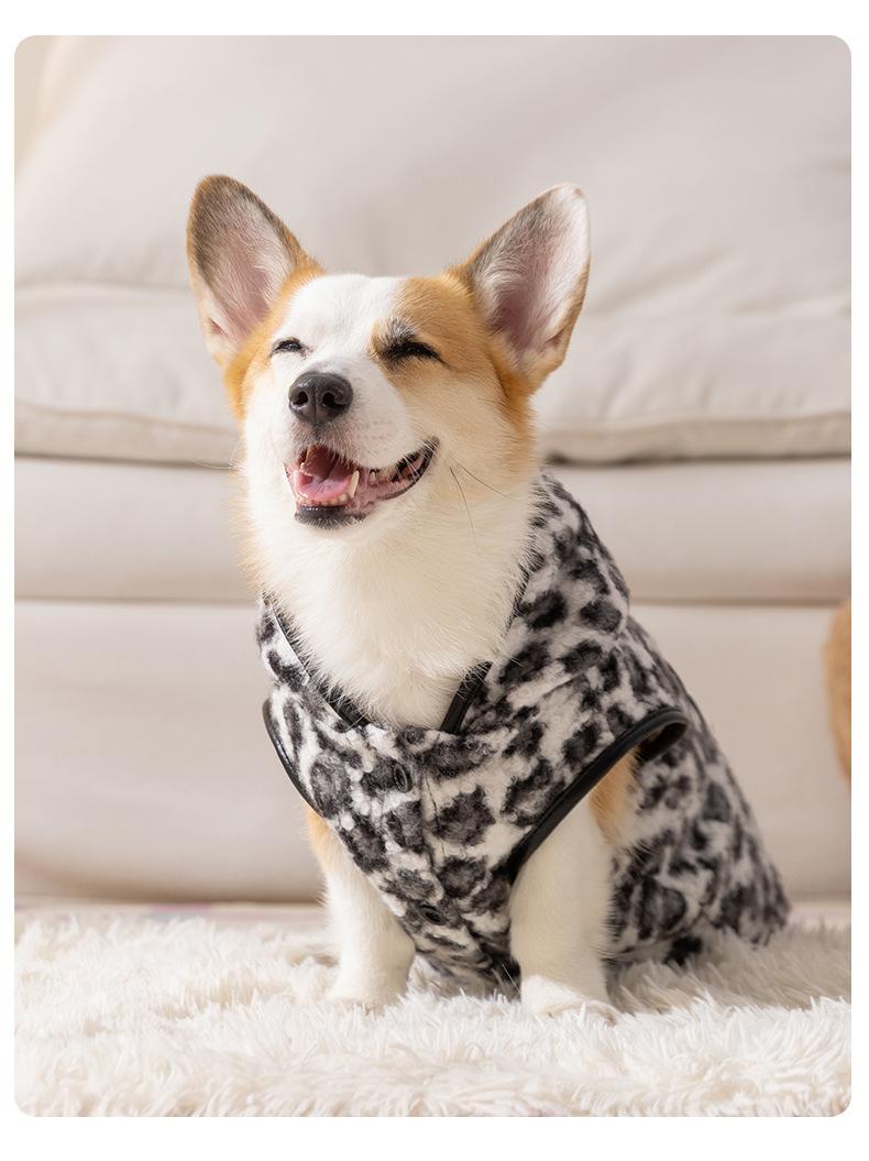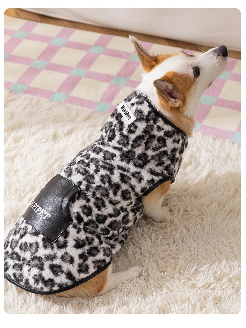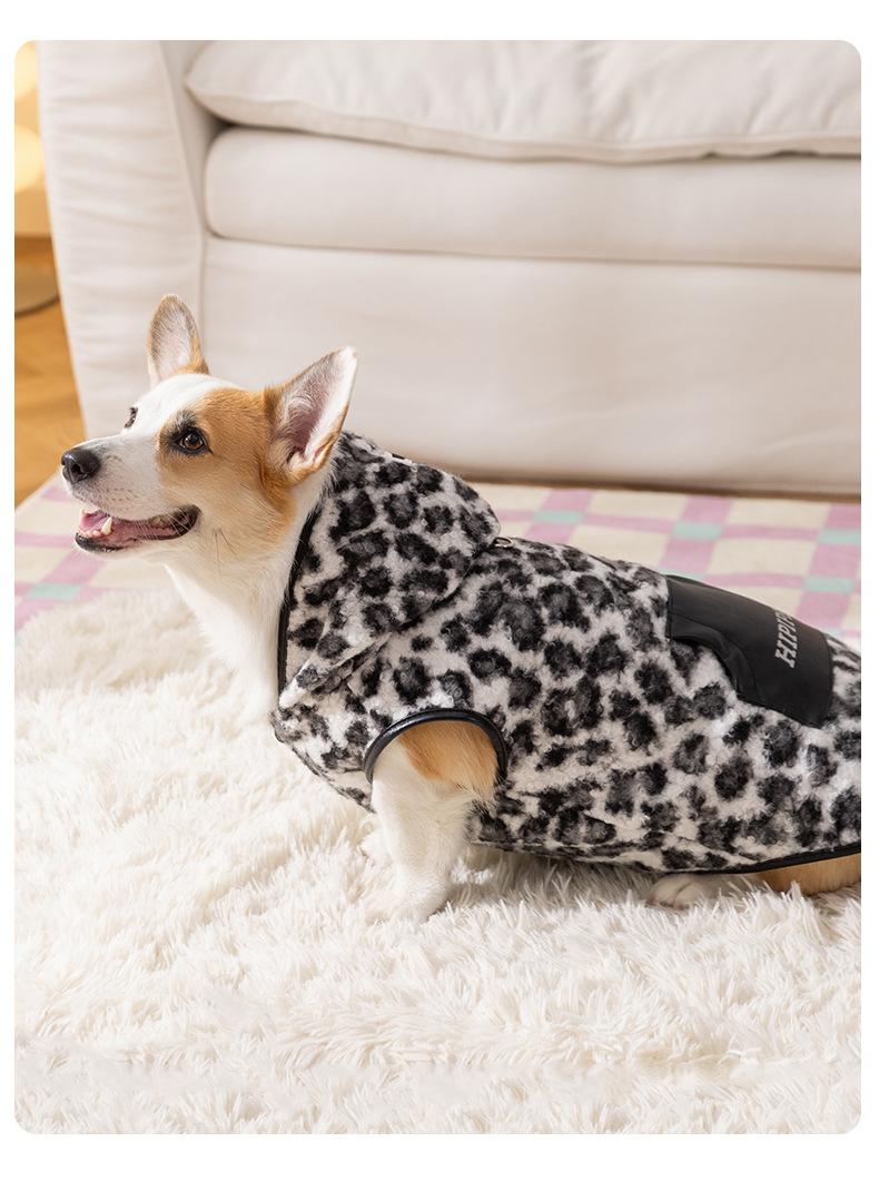 Ropa para Corgi Chaleco Polar con Capucha Estampado Leopardo Retro Pug Bulldog Francés Perro Mediano Ropa para Perro Ropa para Mascota