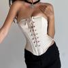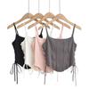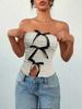 Top Corsé de Crochet Decorado con Cinta Negra sin Tirantes de Verano para Mujer - Lazo Atado