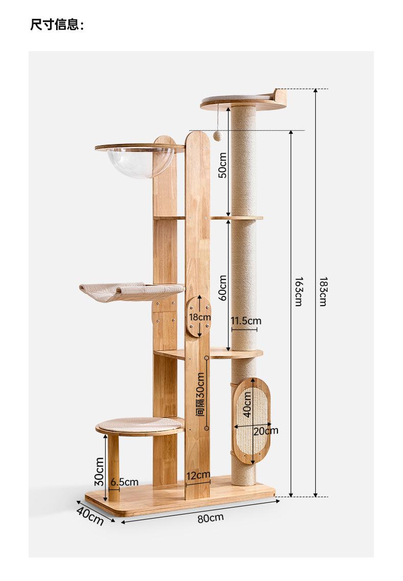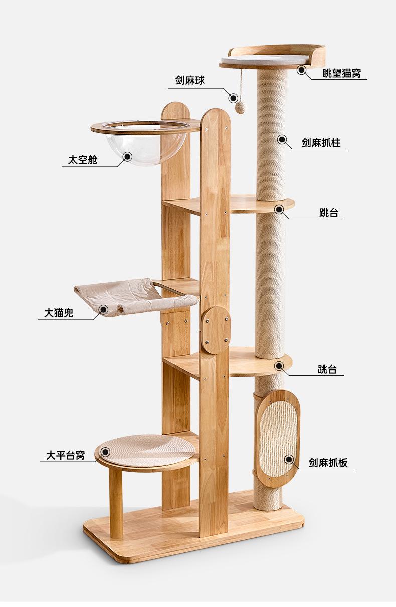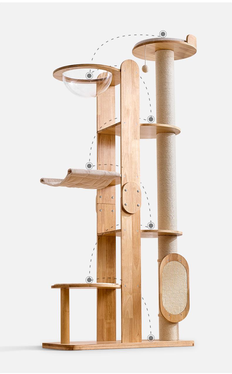 Marco para Gatos de Madera Maciza Cama para Gatos Integrada Resistente al Desgaste No Desprende Pelo Árbol para Gatos Poste Rascador de Sisal Juguete para Gatos Poste para Trepar para Gatitos