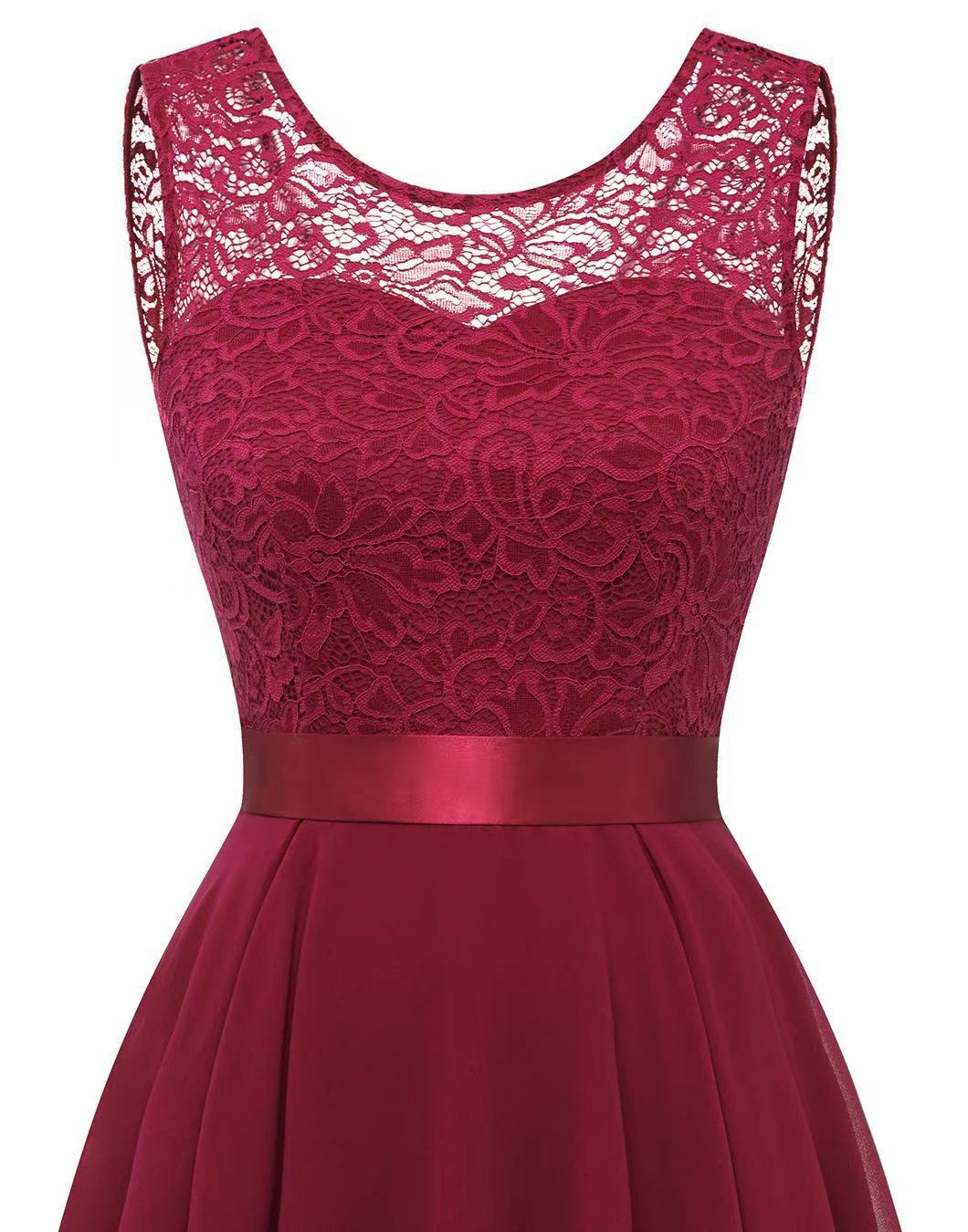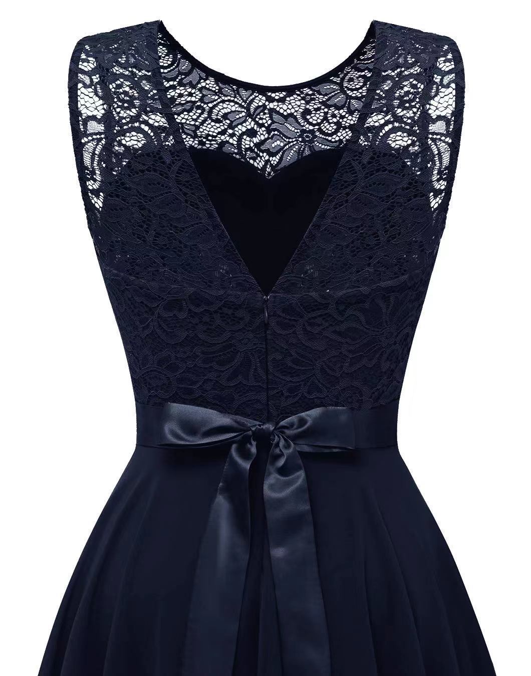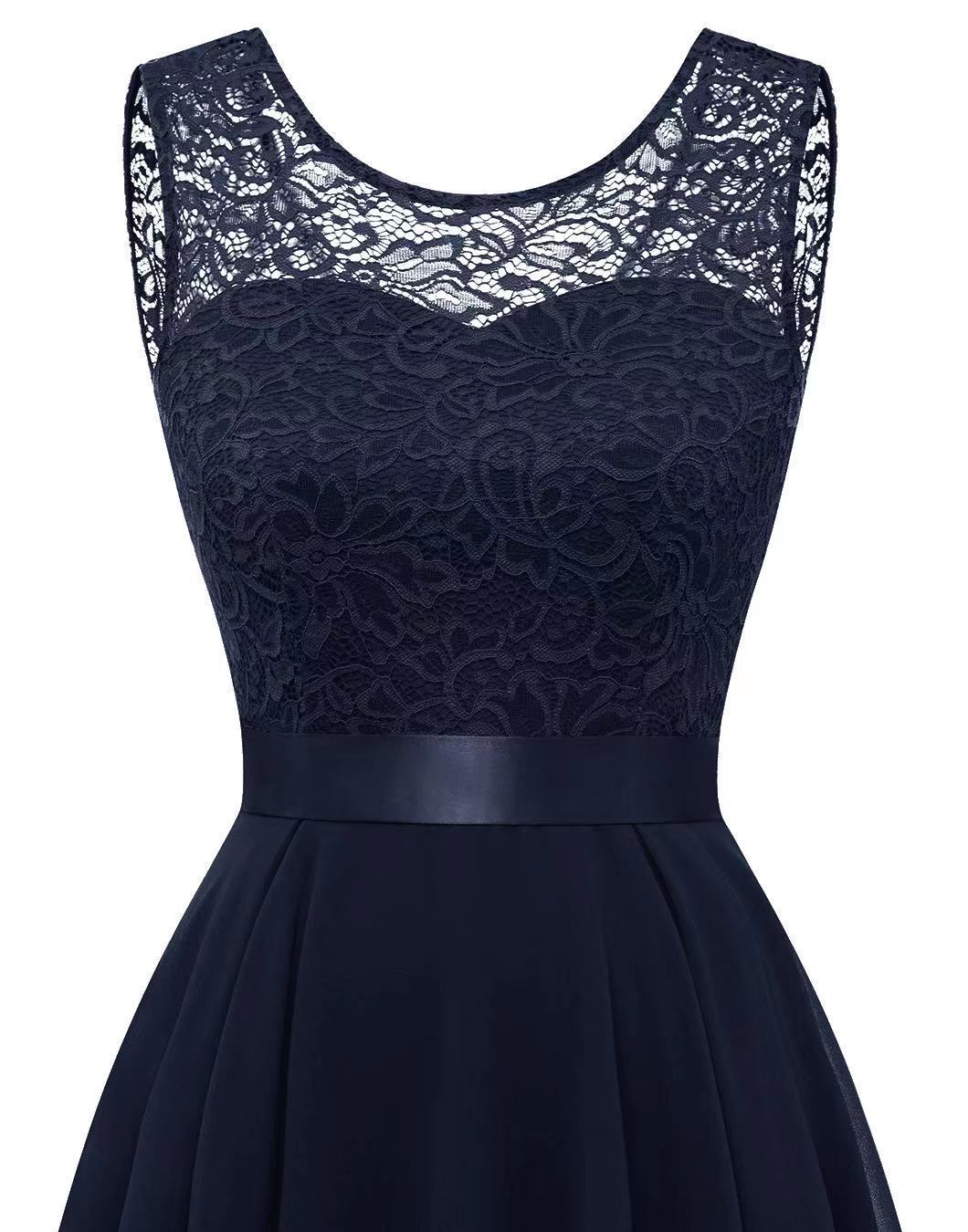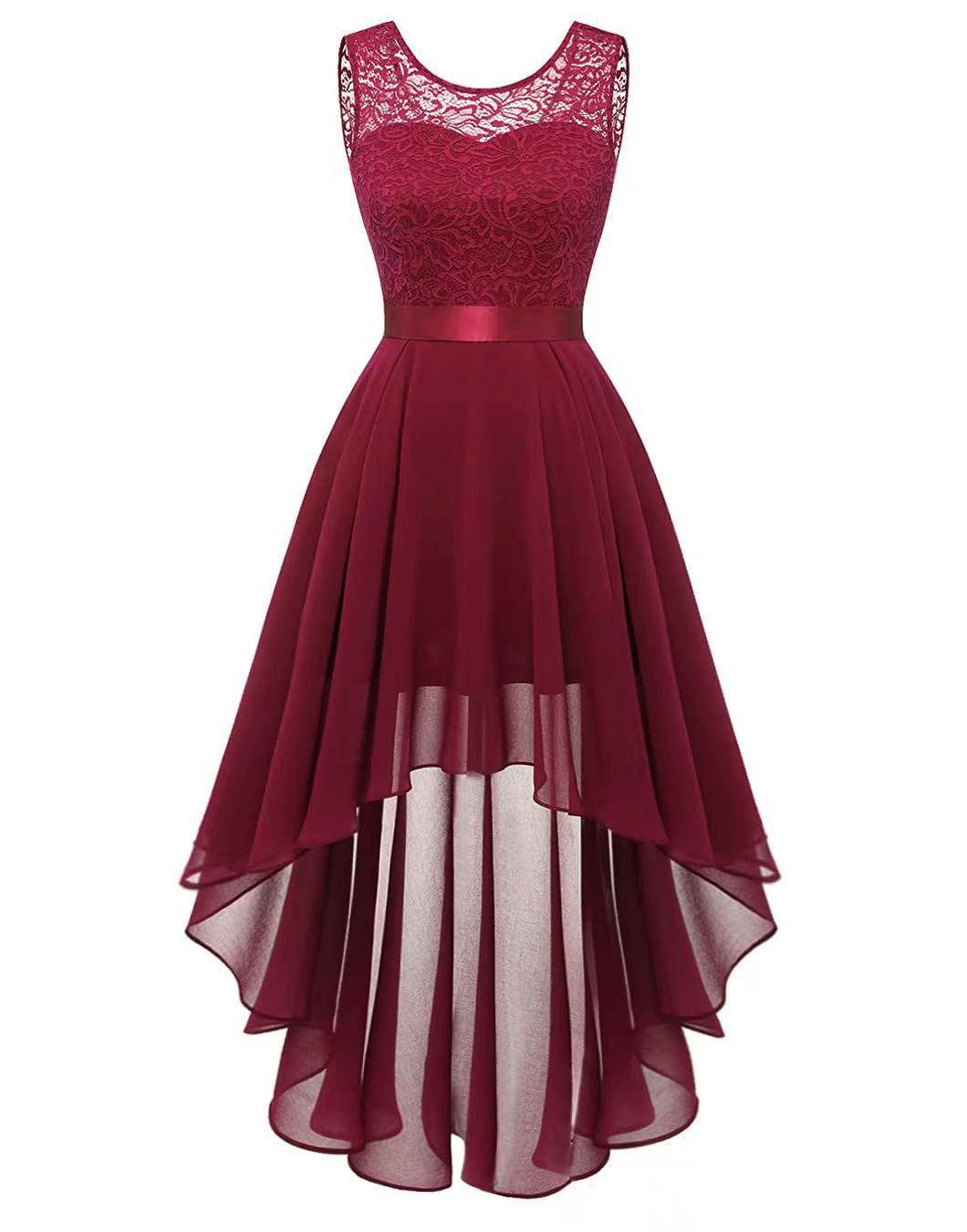 Amazon AliExpress Nuevo Vestido Sexy de Encaje con Costuras y Vuelo Amplio de Chifón Vestido Vestido de Cena
