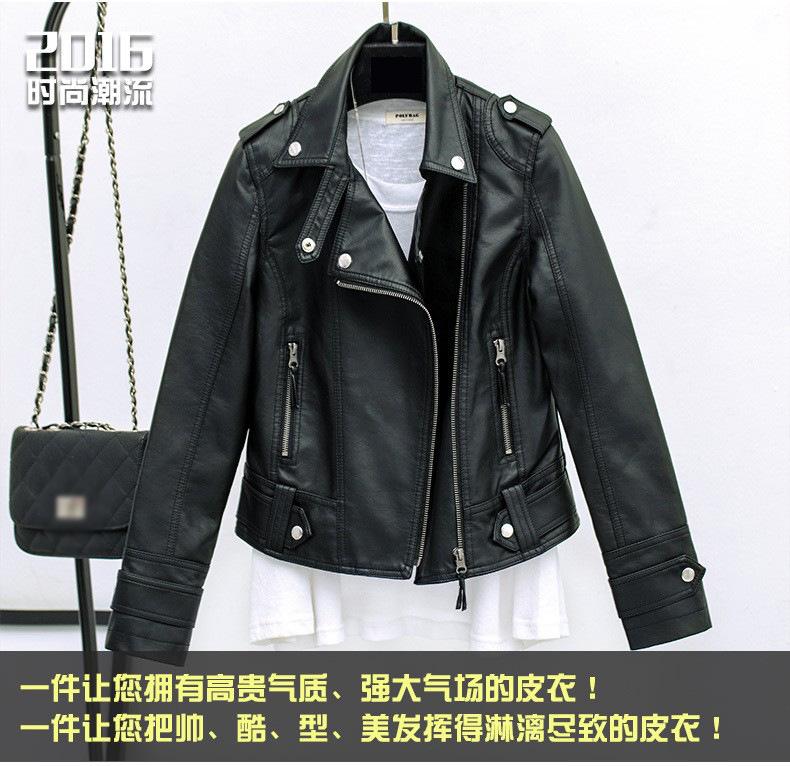 Chaqueta de Cuero Haining Nueva Primavera y Otoño Slim Solapa Chaqueta Corta para Mujer Chaqueta de PU para Mujer Ropa de Motociclista Ropa de Mujer