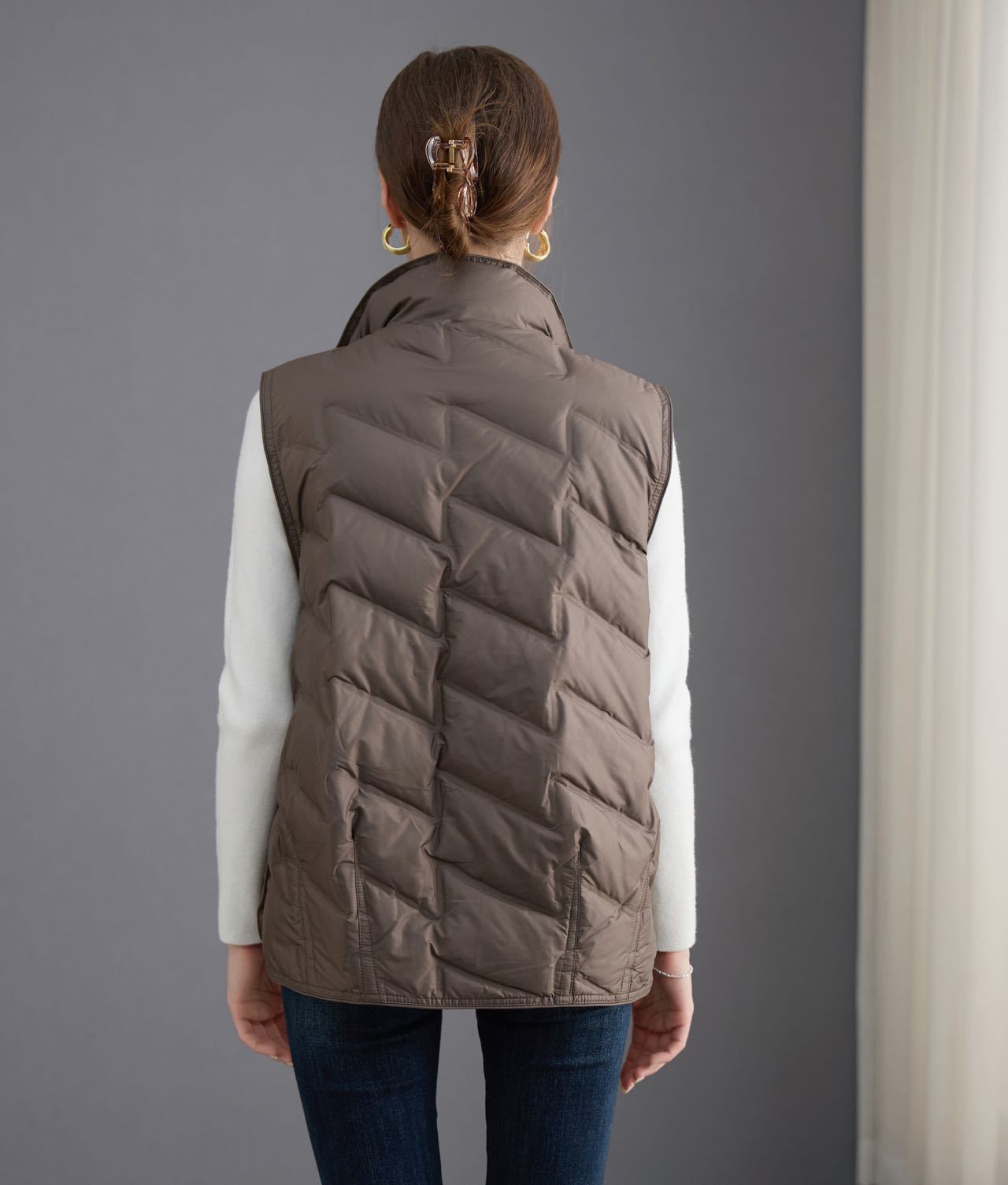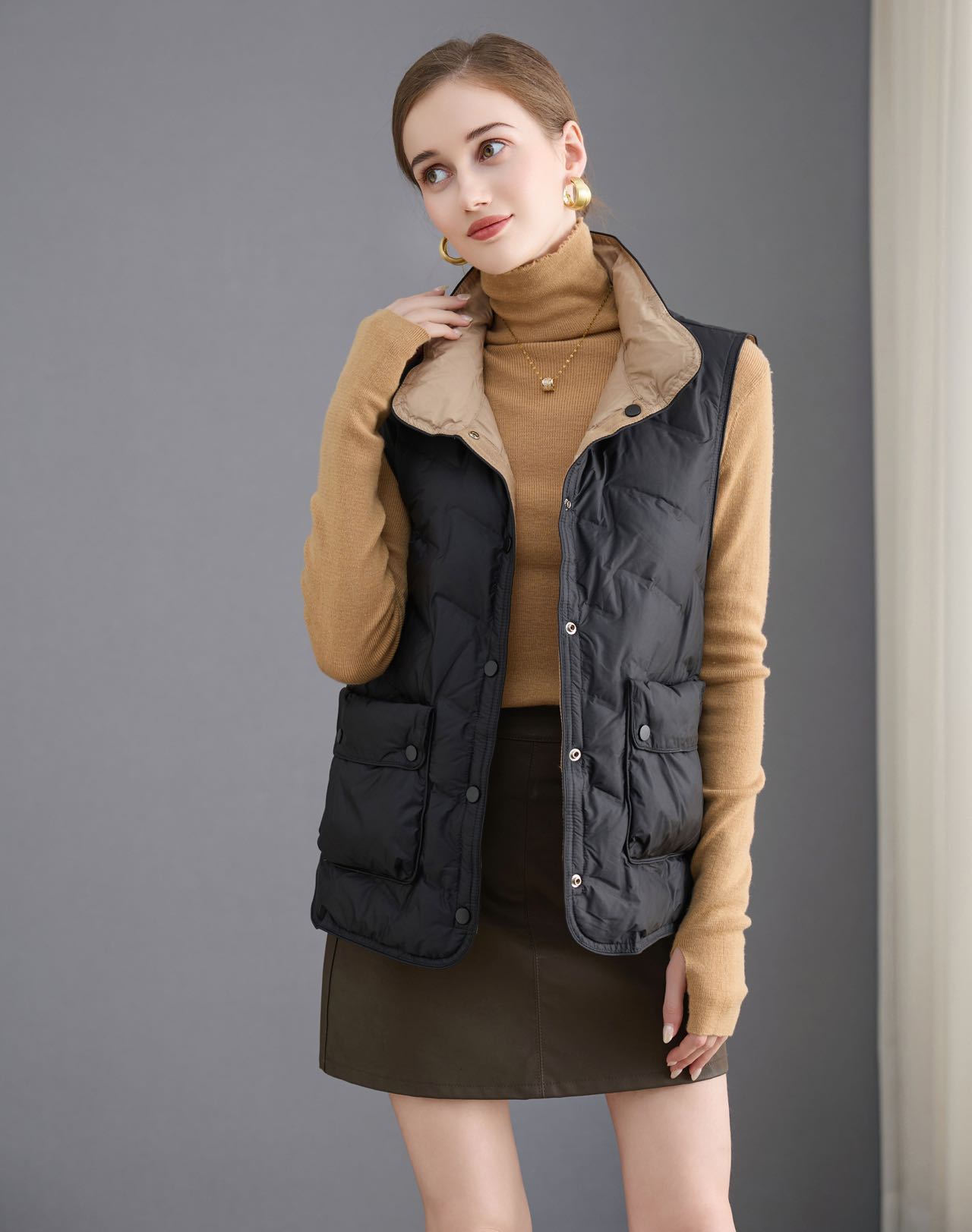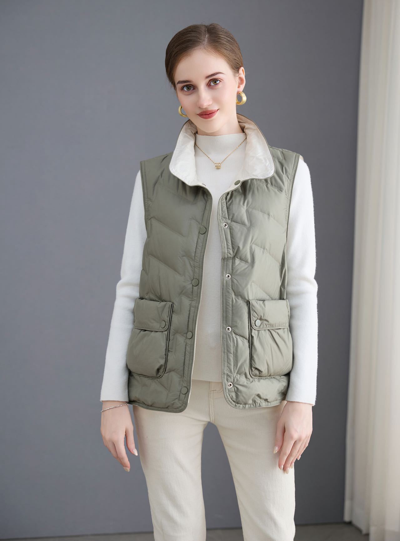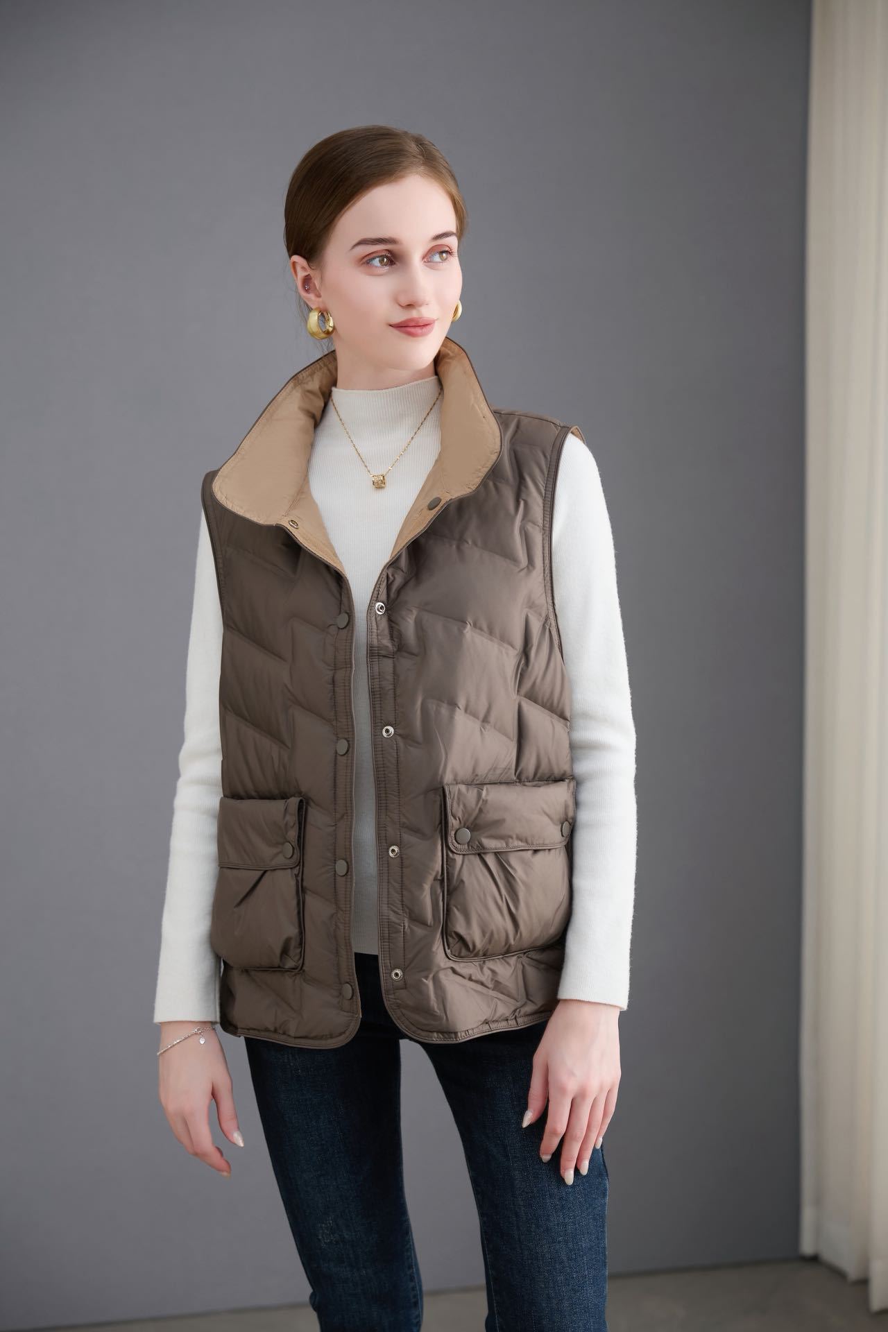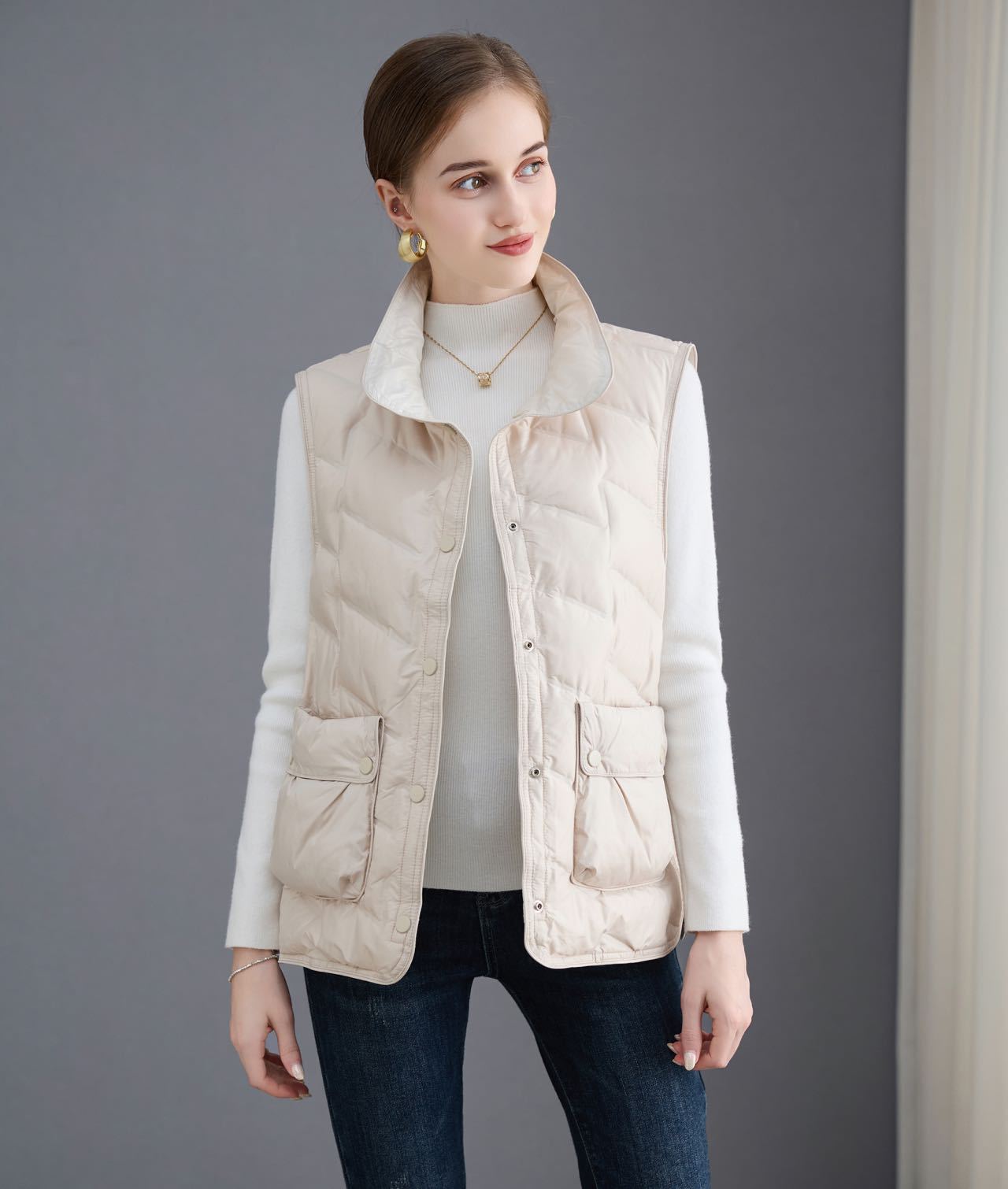 Chaleco de Plumas Ligero de Doble Vista con Cuello Alto para Mujer, Corto, Holgado, Casual, Cálido, de Plumón de Pato Blanco, Sin Mangas