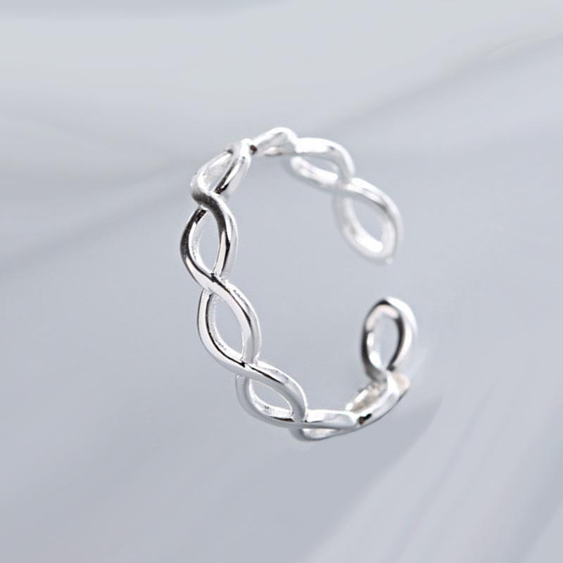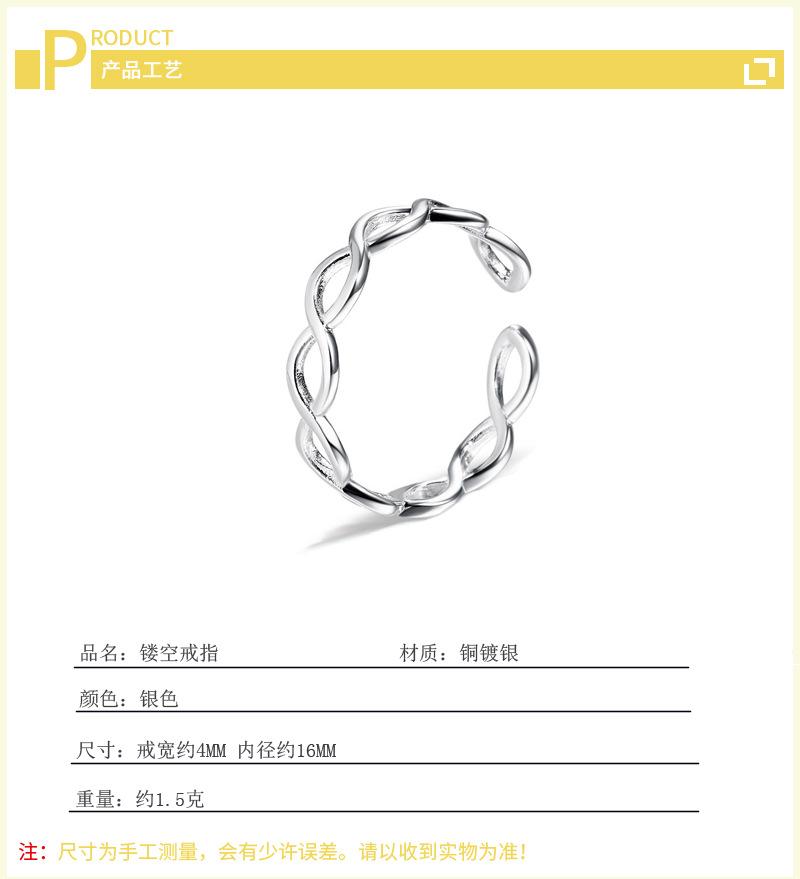 Anillo hueco personalidad estudiante diseño simple sensación pequeño fresco plateado ins apertura anillo ajustable suministro de comercio electrónico