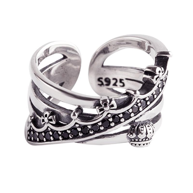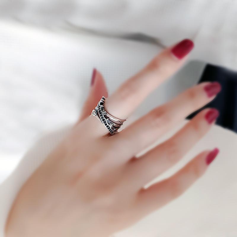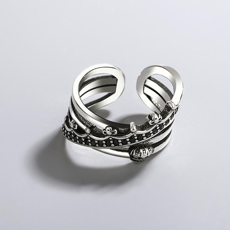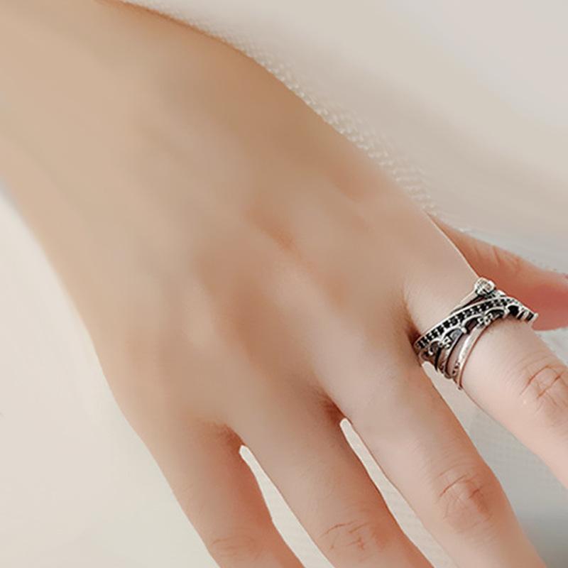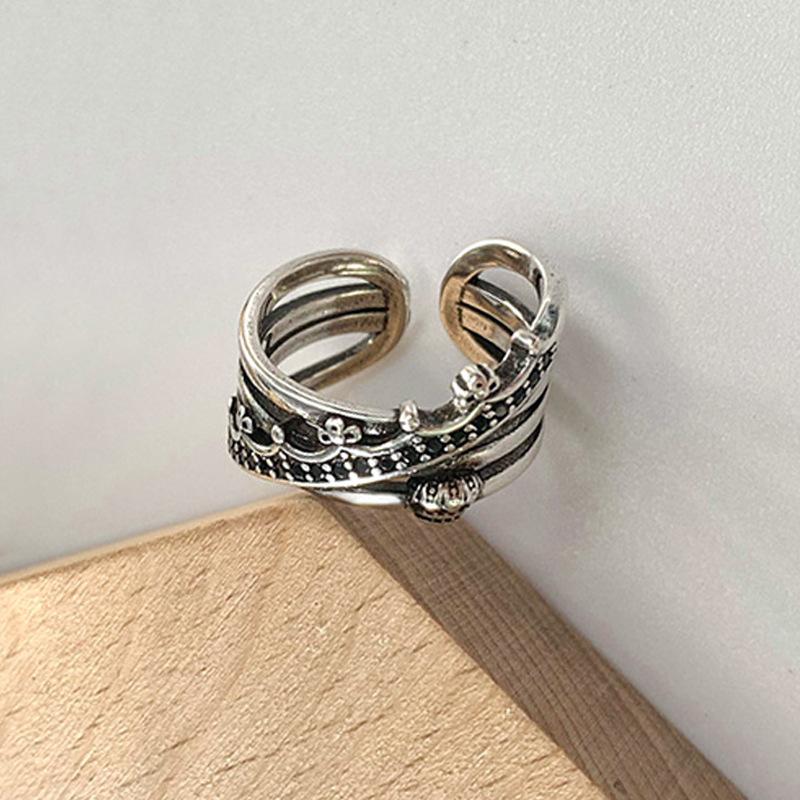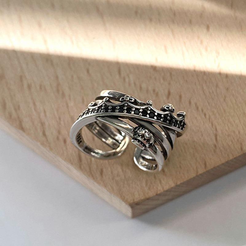 Anillo de Dedo Corona Plateado Vintage Ins Tie-hop Hip-hop Viento Frío Ola Multicapa Corona de Flores Anillo Abierto