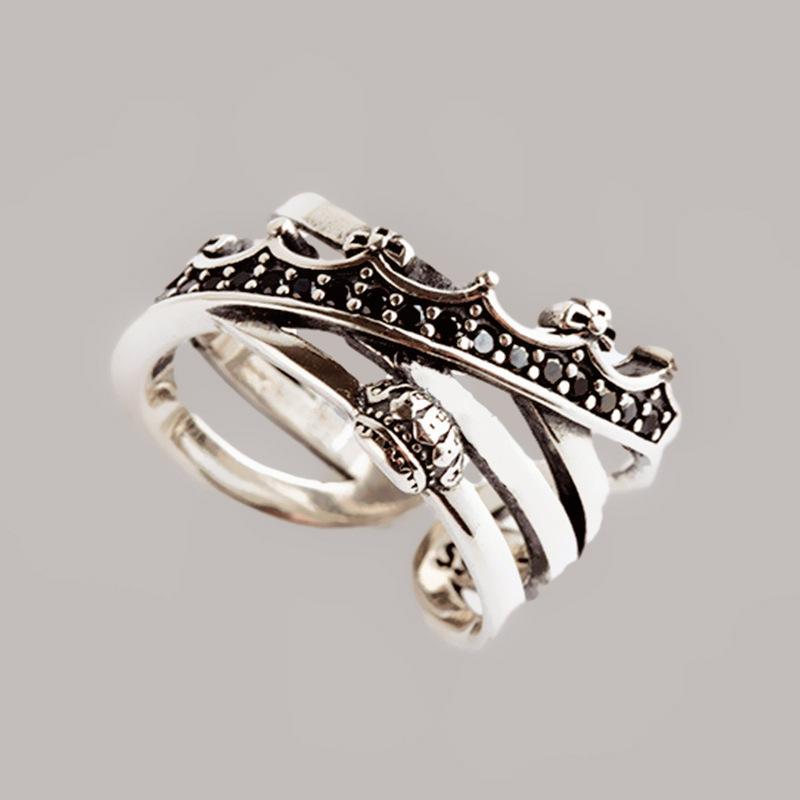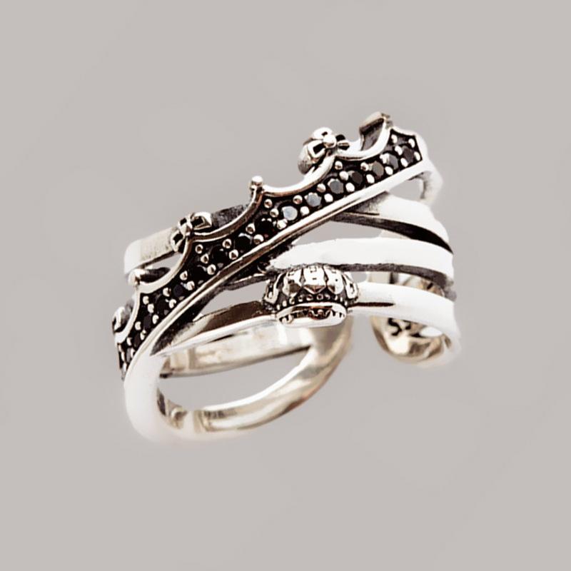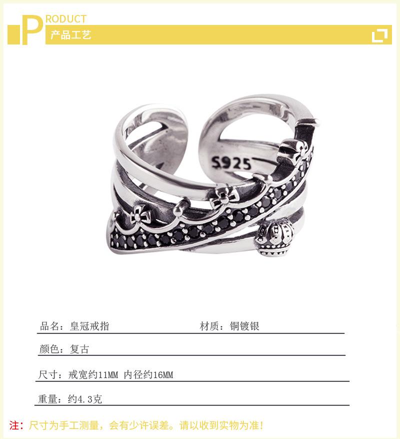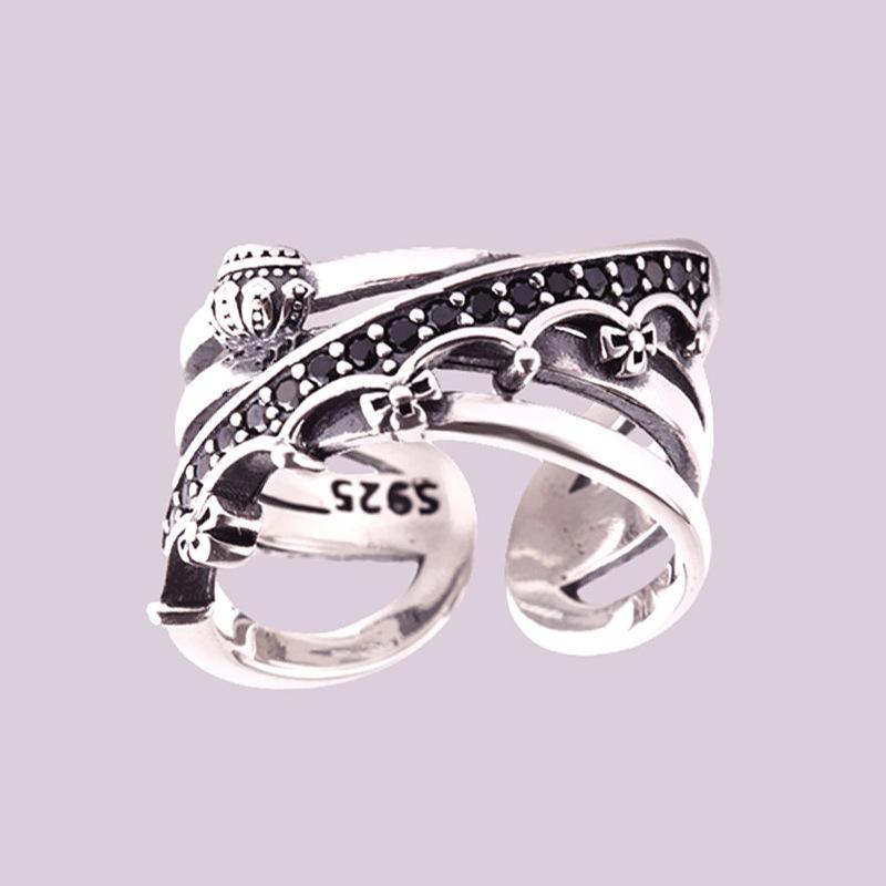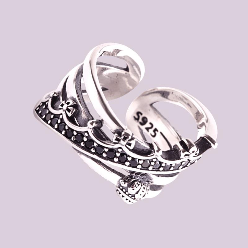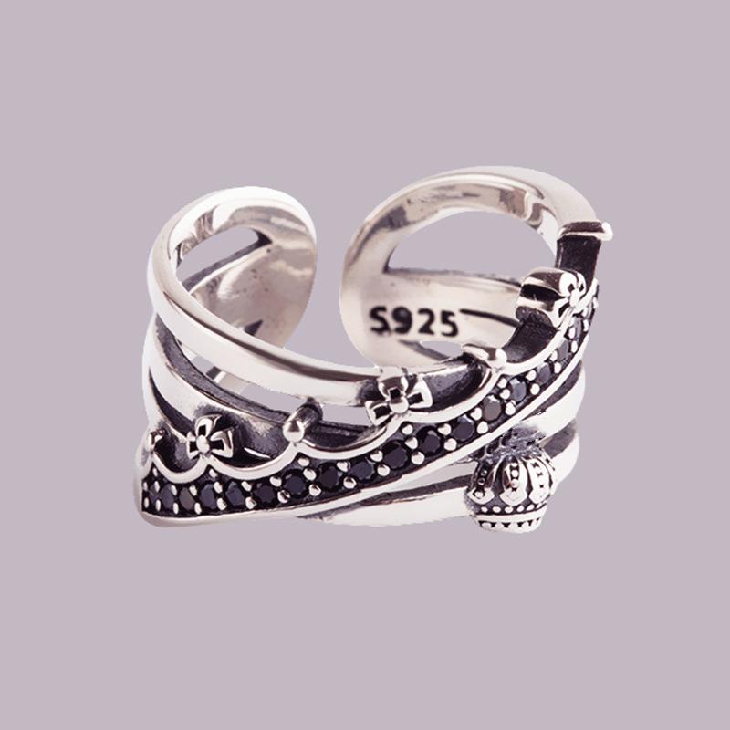 Anillo de Dedo Corona Plateado Vintage Ins Tie-hop Hip-hop Viento Frío Ola Multicapa Corona de Flores Anillo Abierto