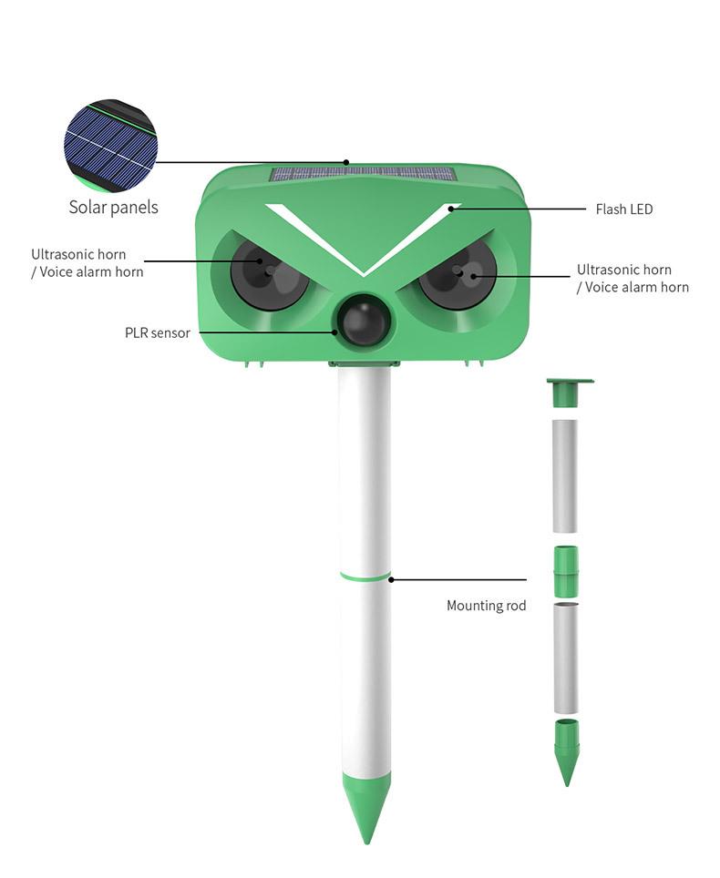 Repelente ultrasónico de frecuencia variable para ratones de gran venta transfronteriza, alarma de inducción infrarroja, repelente de aves, repelente de animales multifuncional