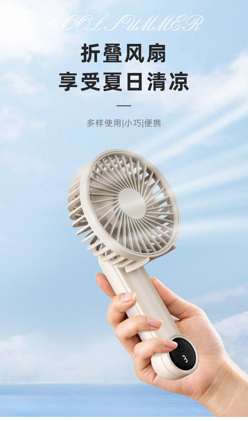Nuevo Ventilador Plegable Portátil Mini con Pantalla Digital de Mano Transfronterizo de Tres Velocidades Ventilador de Escritorio Silencioso para Enfriamiento