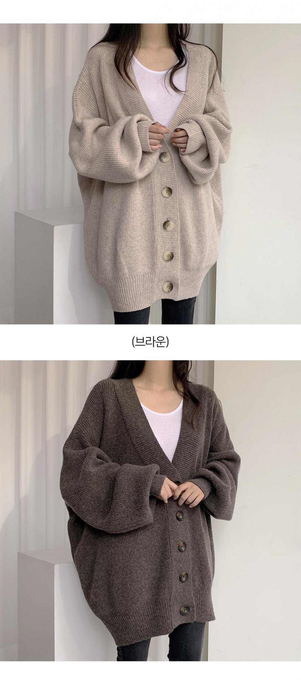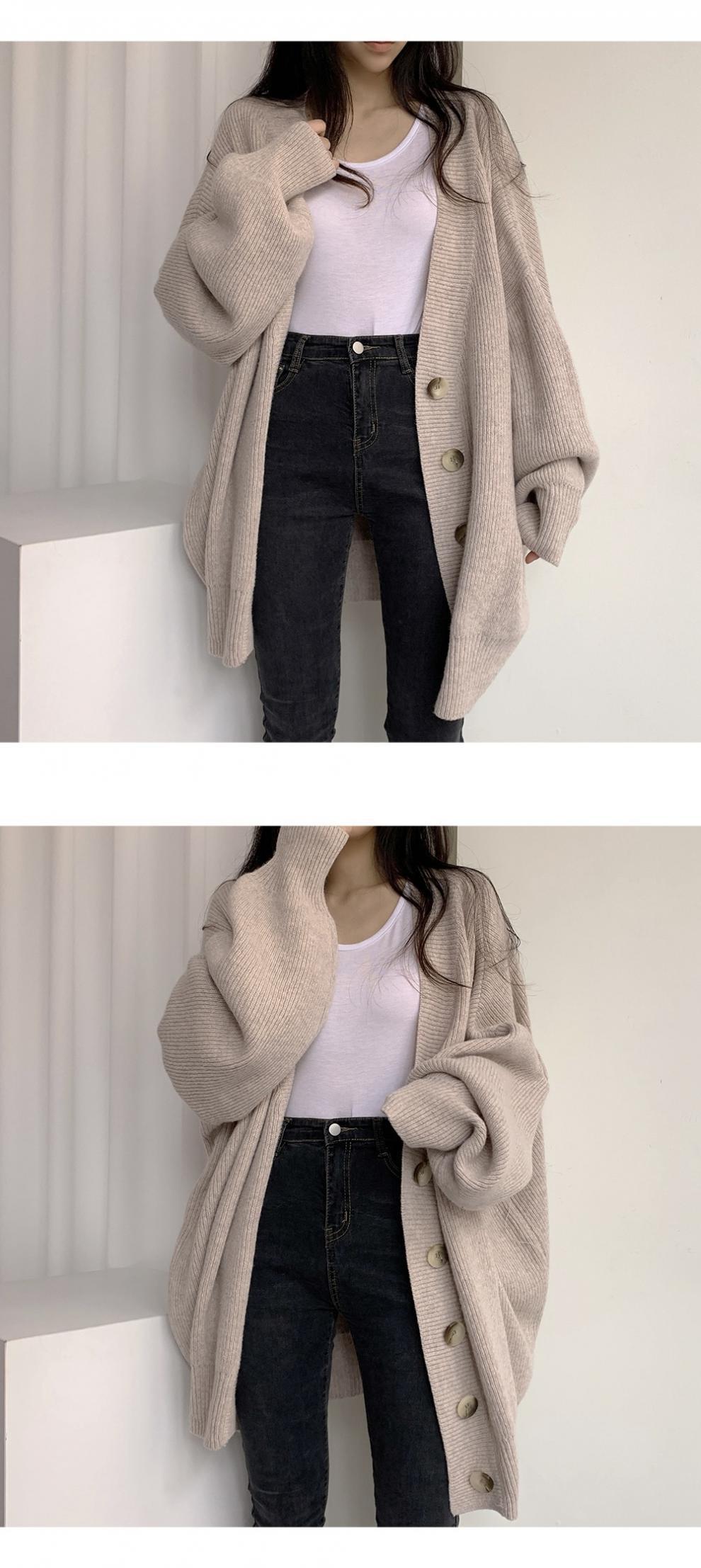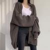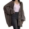 Cárdigan suéter tejido de estilo casual perezoso coreano de otoño e invierno con cuello, botonadura sencilla, manga farol suelta para mujer