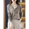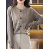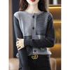 Cárdigan de punto de cuello redondo para mujer, nuevo de principios de primavera 2025, suéter corto a rayas, tejido suelto, abrigo grueso