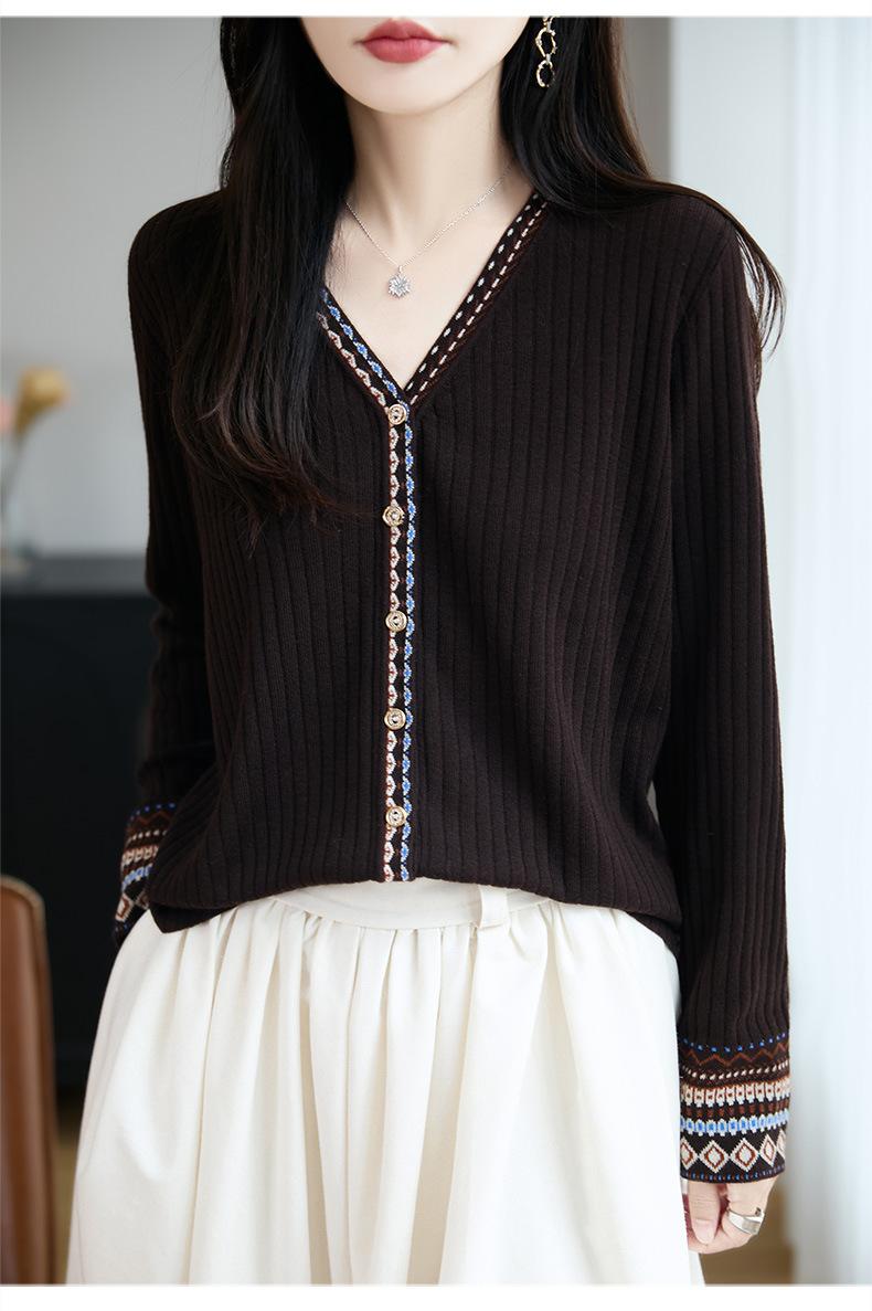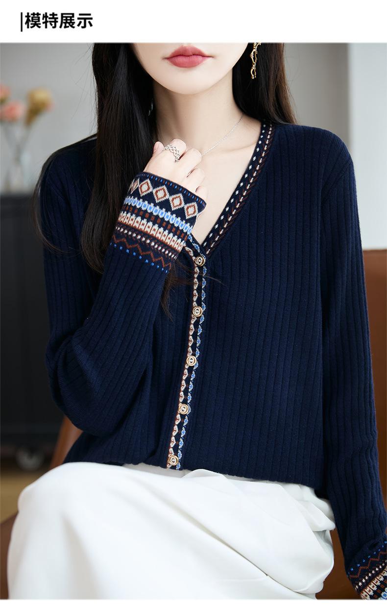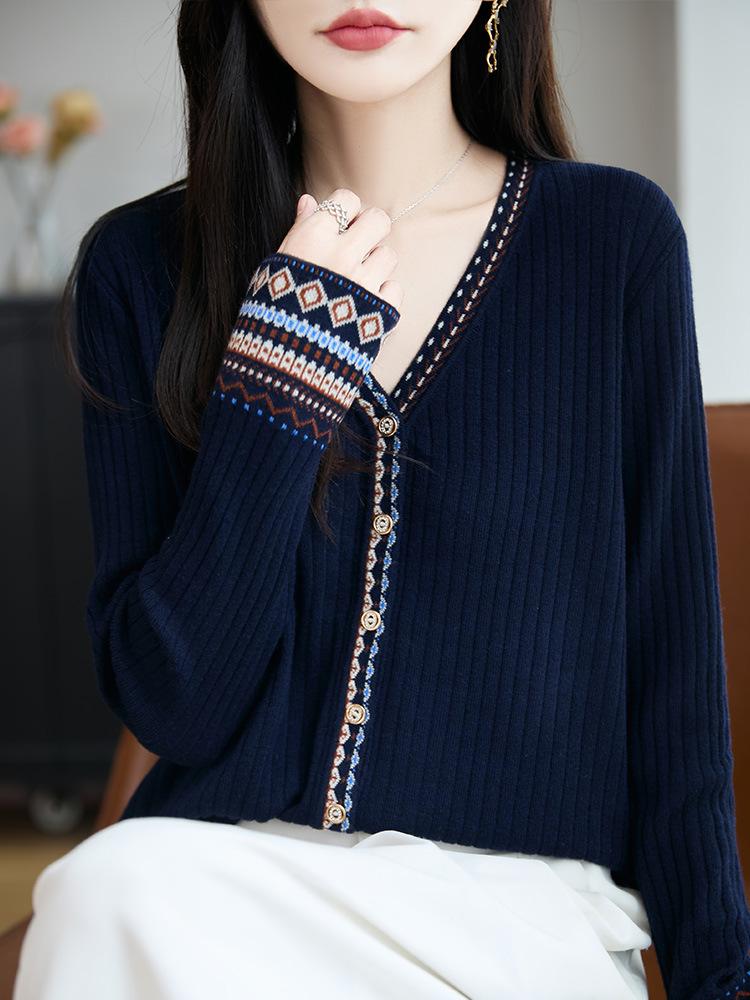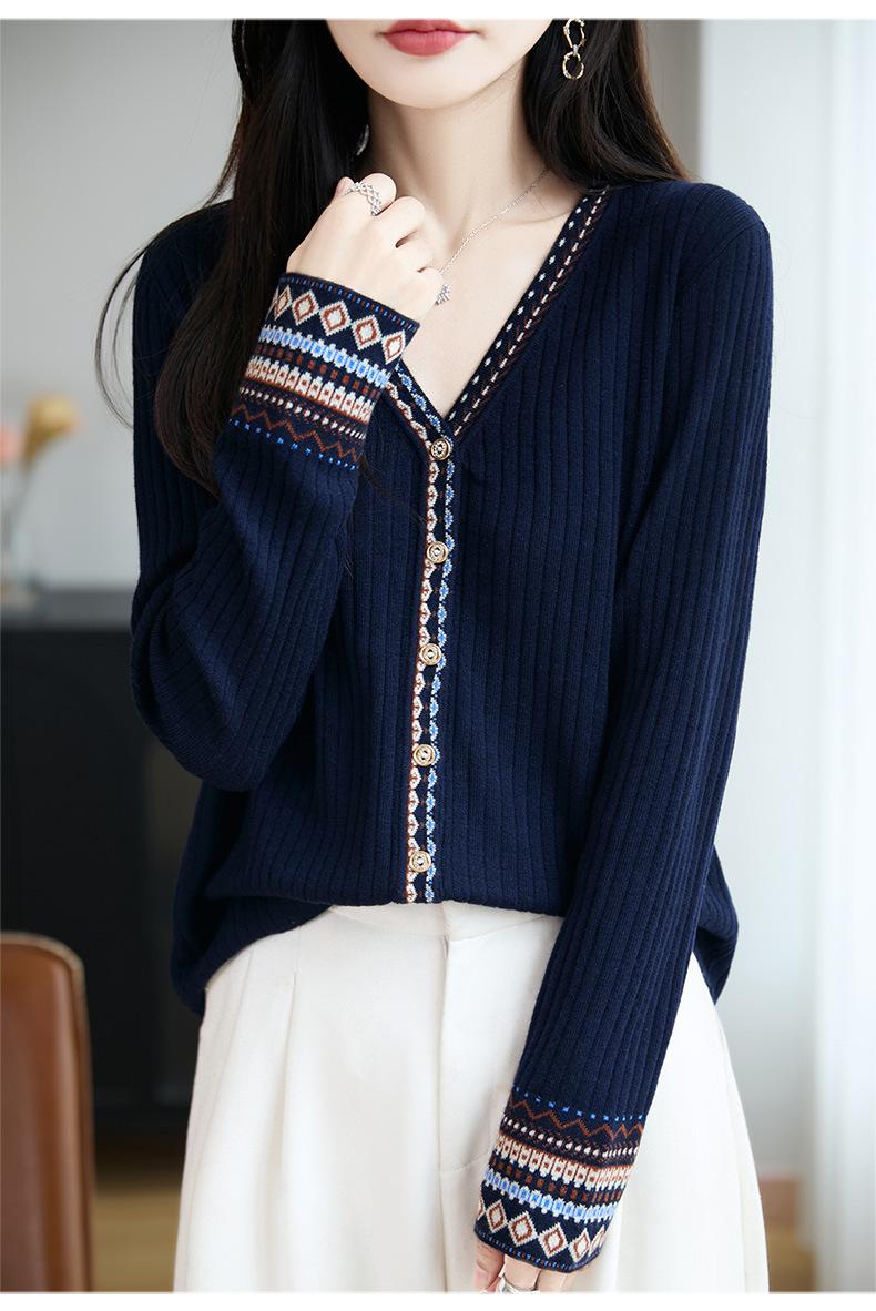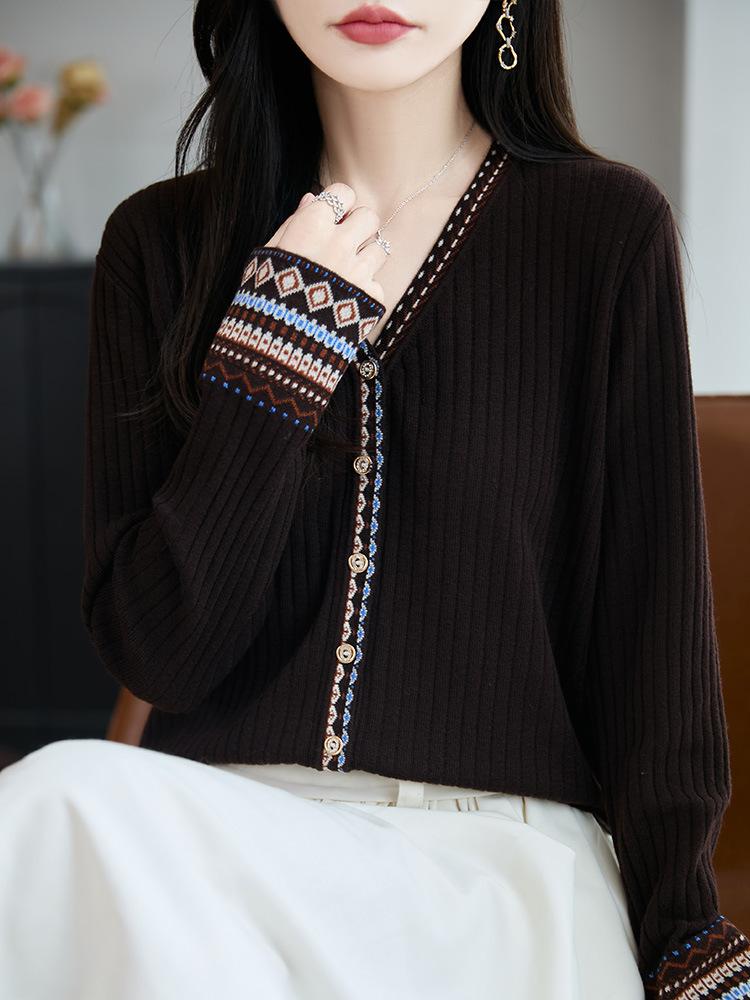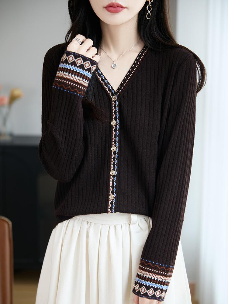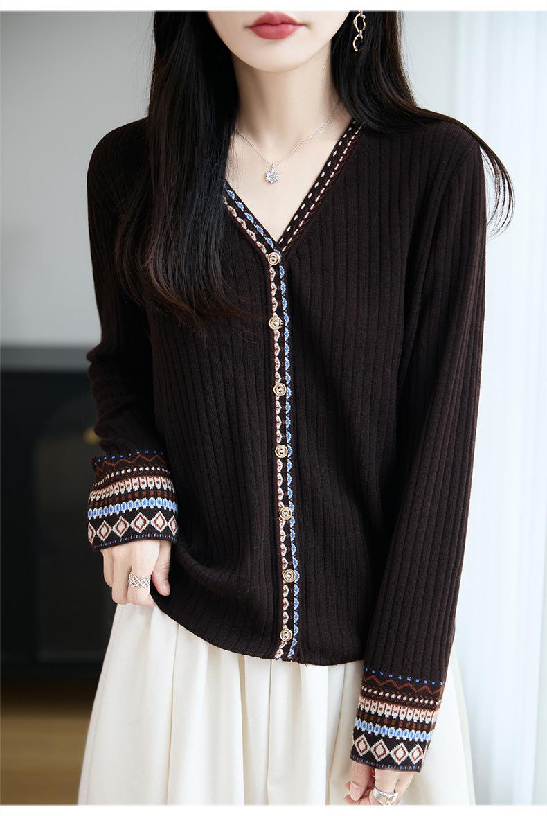 Cárdigan de Punto Jacquard Estilo Étnico Retro para Mujer 2025 Nuevo Diseño Sentido Otoño/Invierno Temperamento de Socialité Suéter Abrigo Mujer