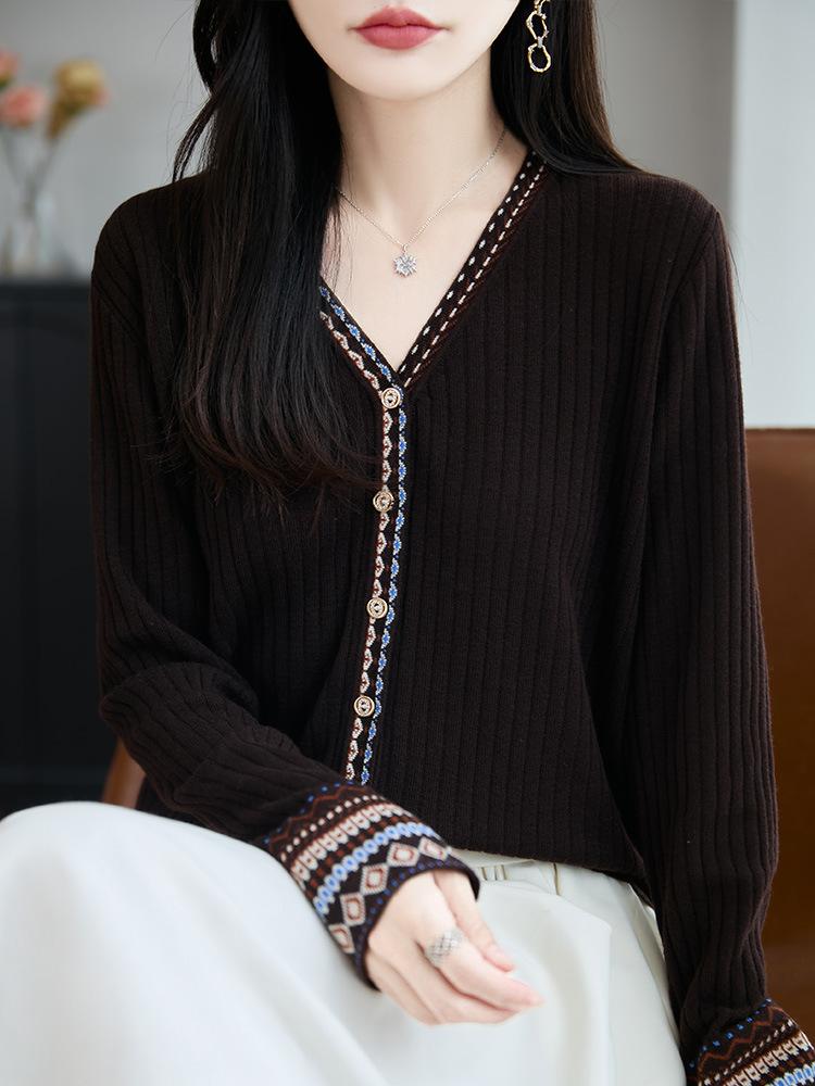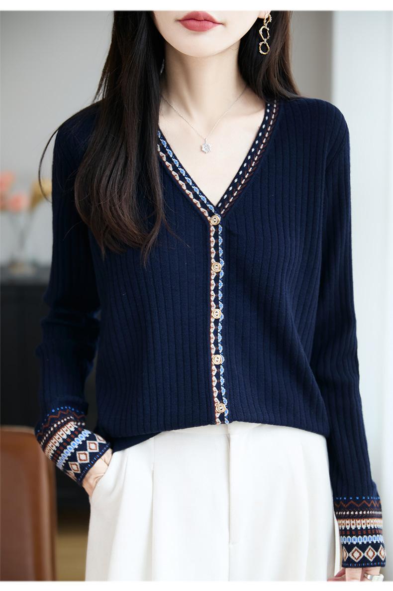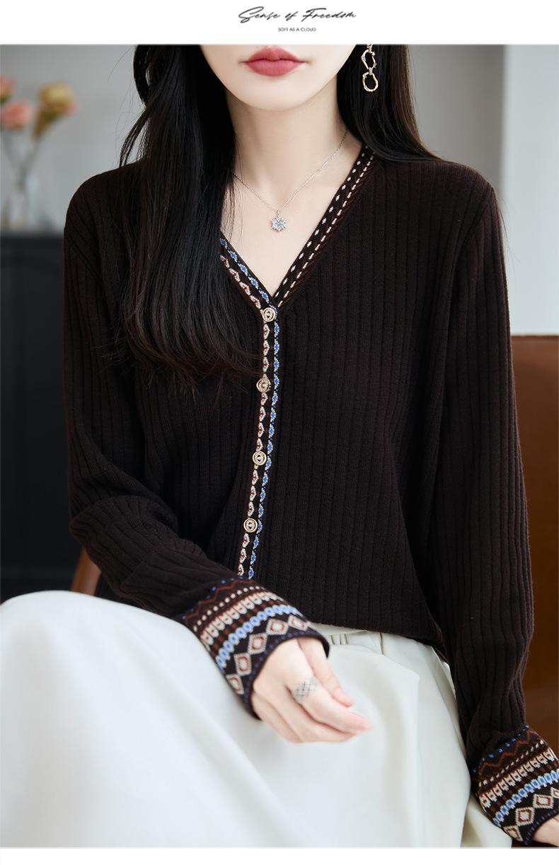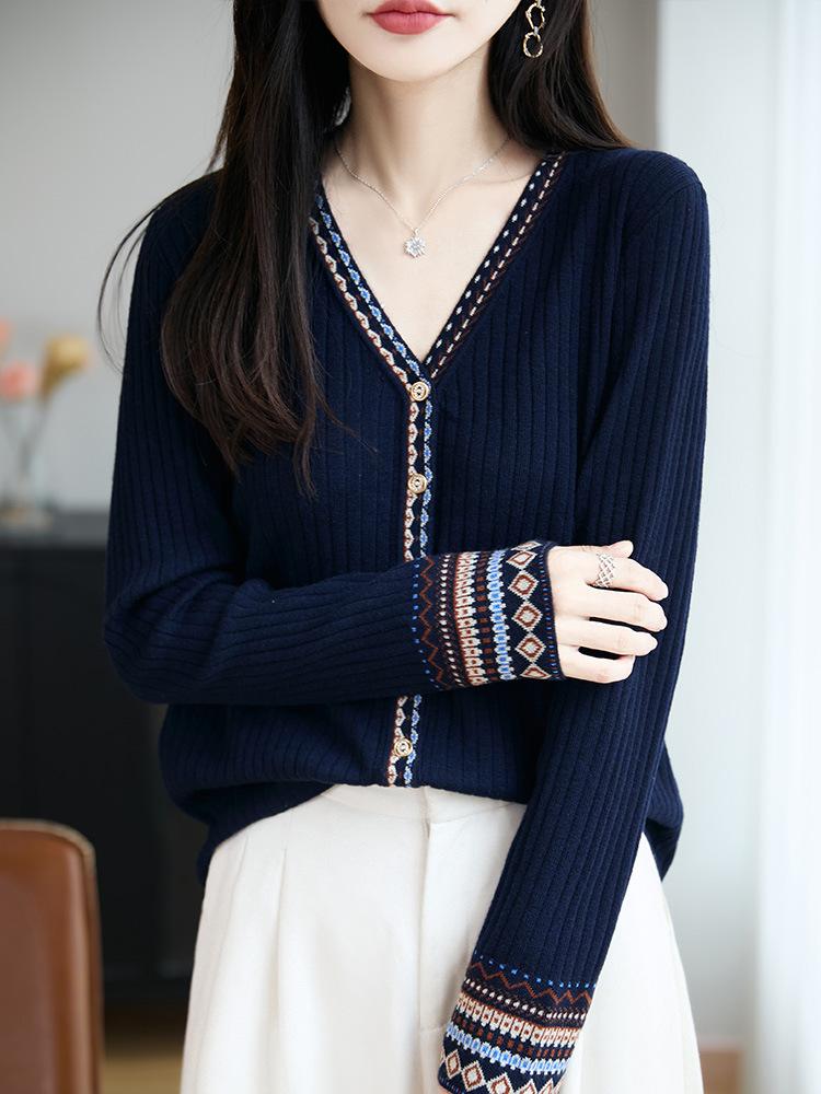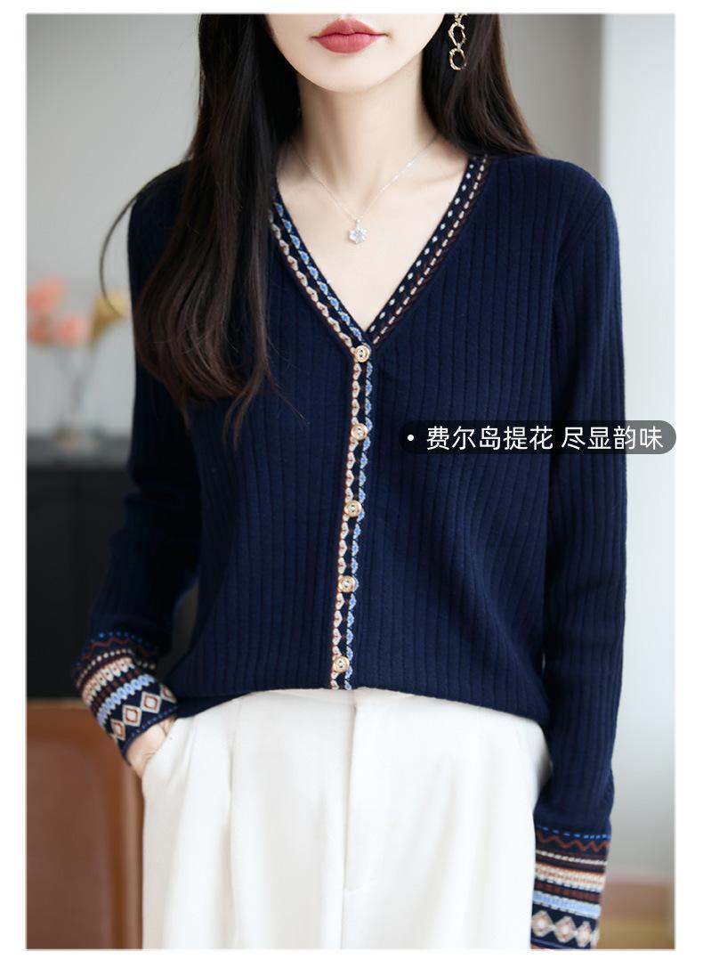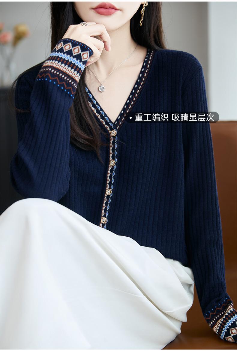 Cárdigan de Punto Jacquard Estilo Étnico Retro para Mujer 2025 Nuevo Diseño Sentido Otoño/Invierno Temperamento de Socialité Suéter Abrigo Mujer