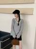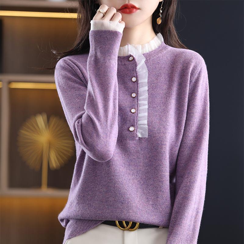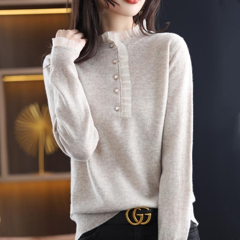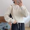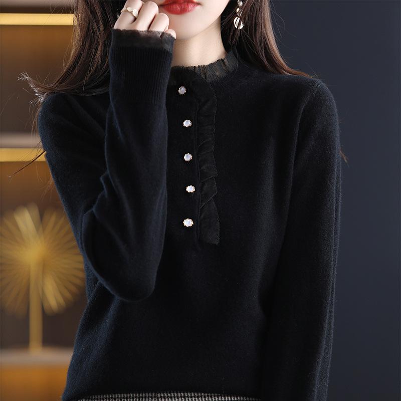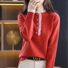 Cárdigan de punto para mujer con cuello de encaje y media botonadura, nuevo para otoño e invierno, color sólido, versátil, holgado y adelgazante
