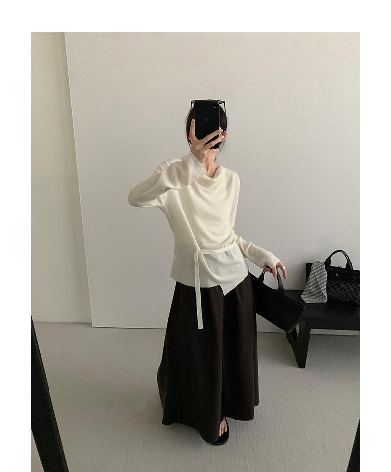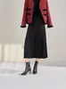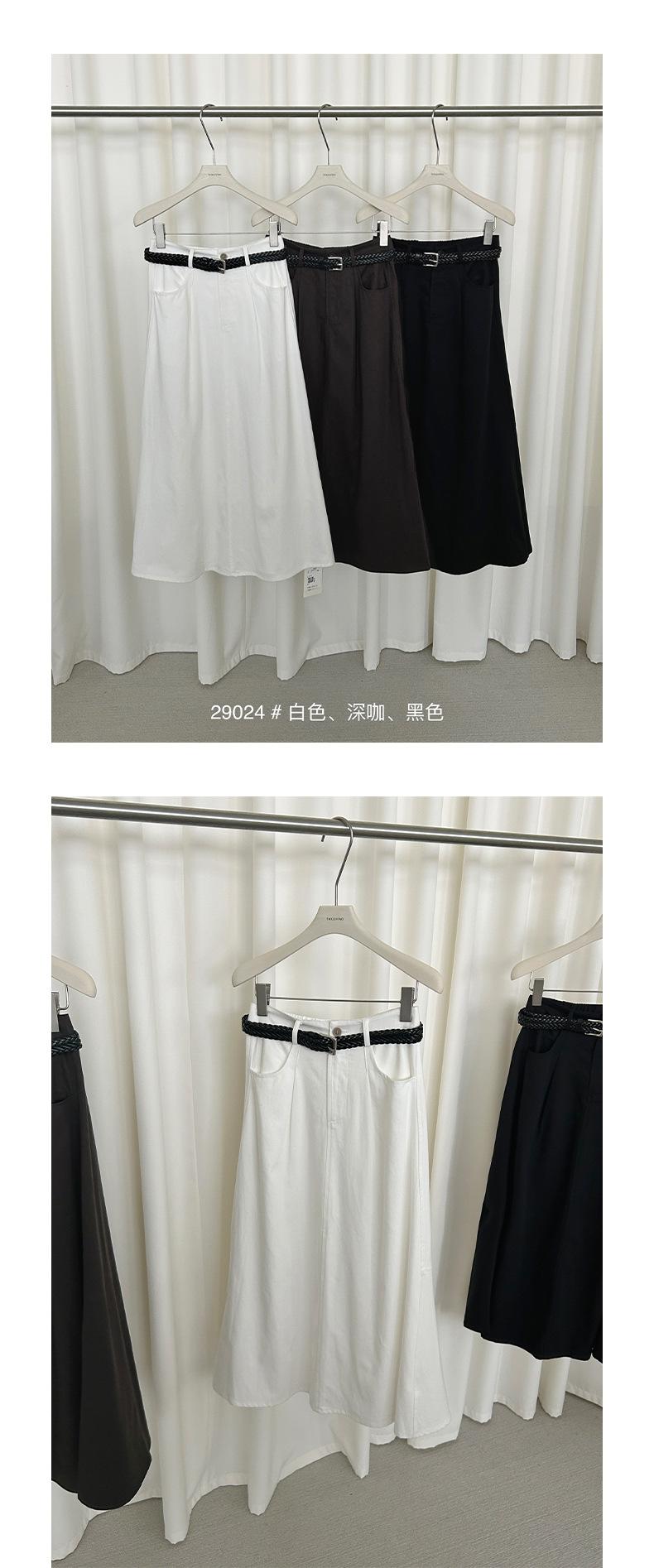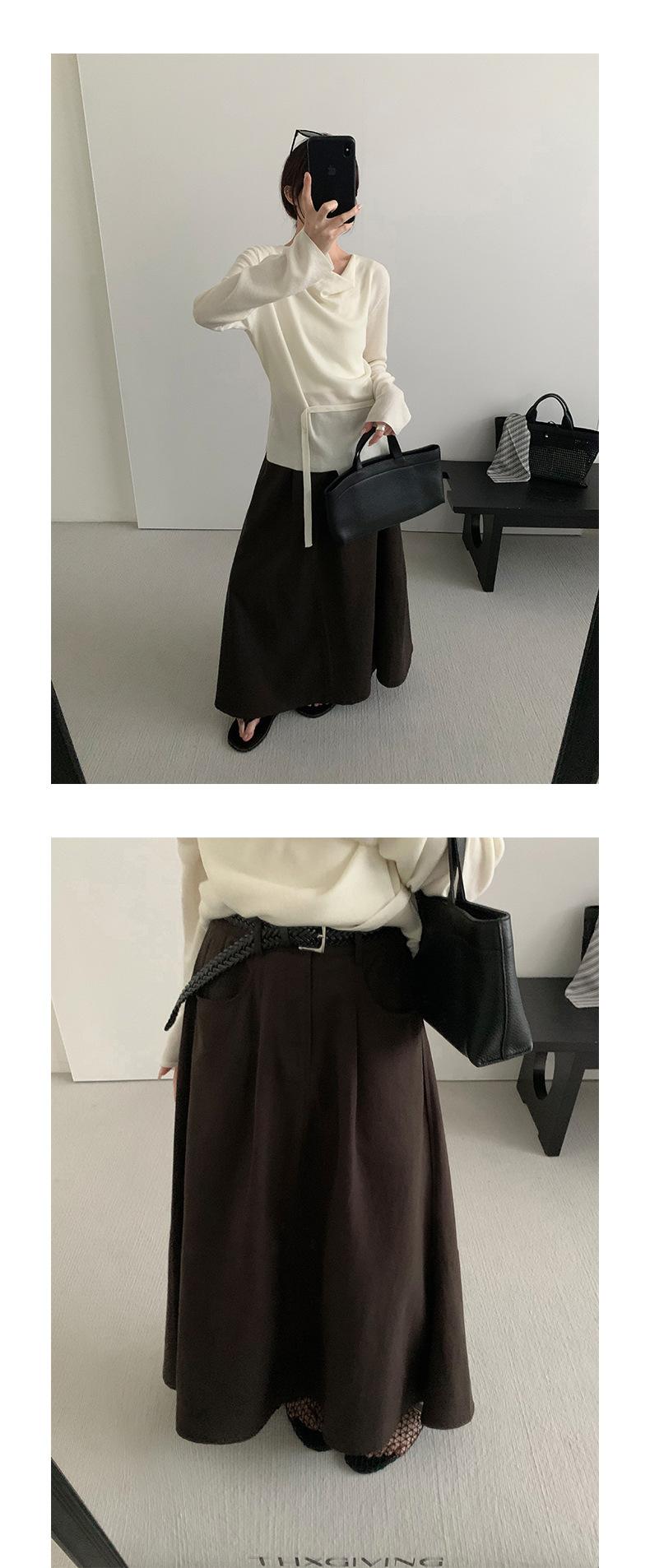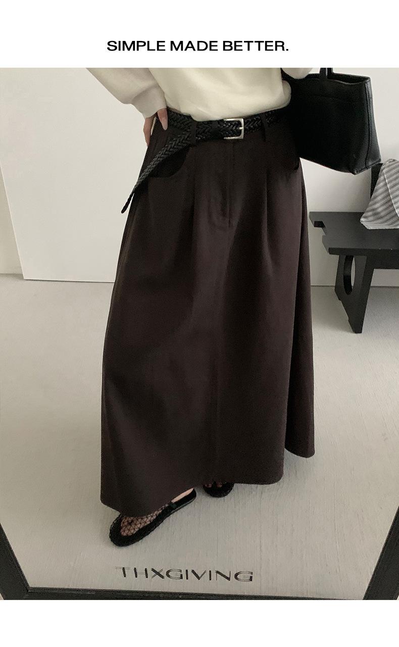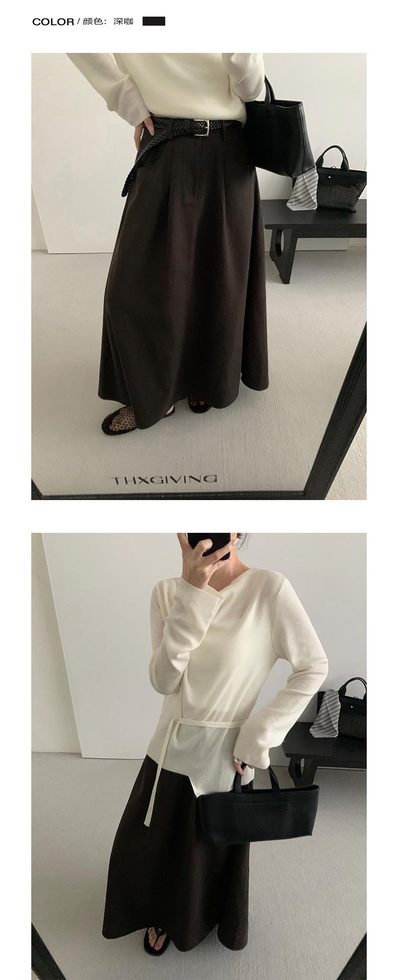 TG Falda Midi Lisa Acampanada Estilo Coreano de Moda con Cinturón de Punto Trenzado para Mujer Otoño 2025 Nueva Versátil Falda Larga 29024