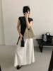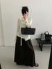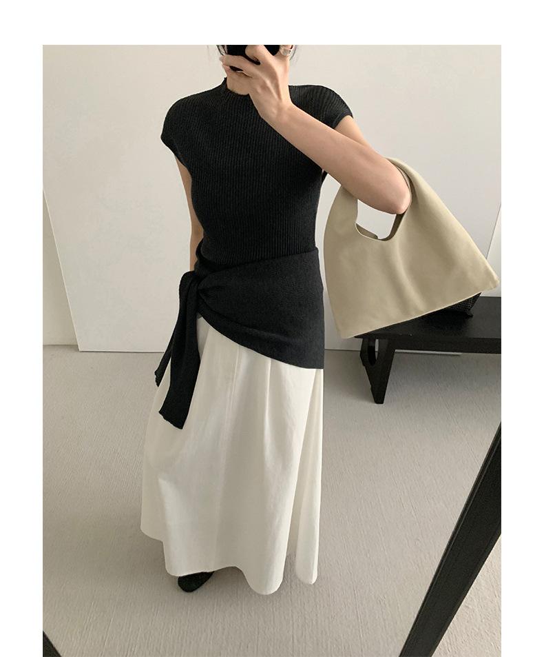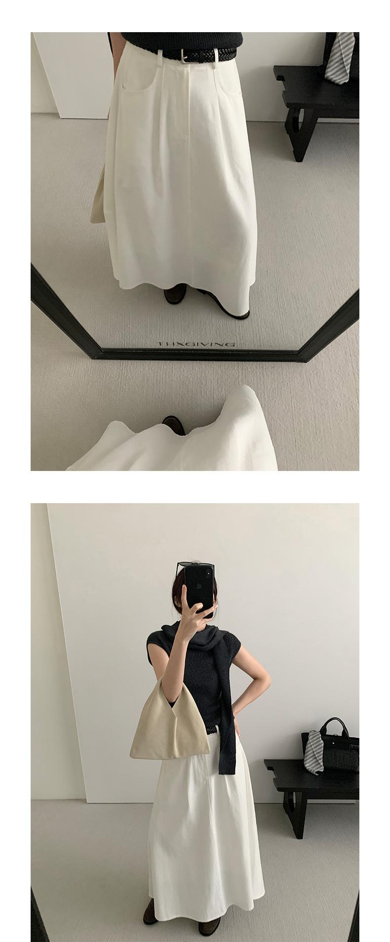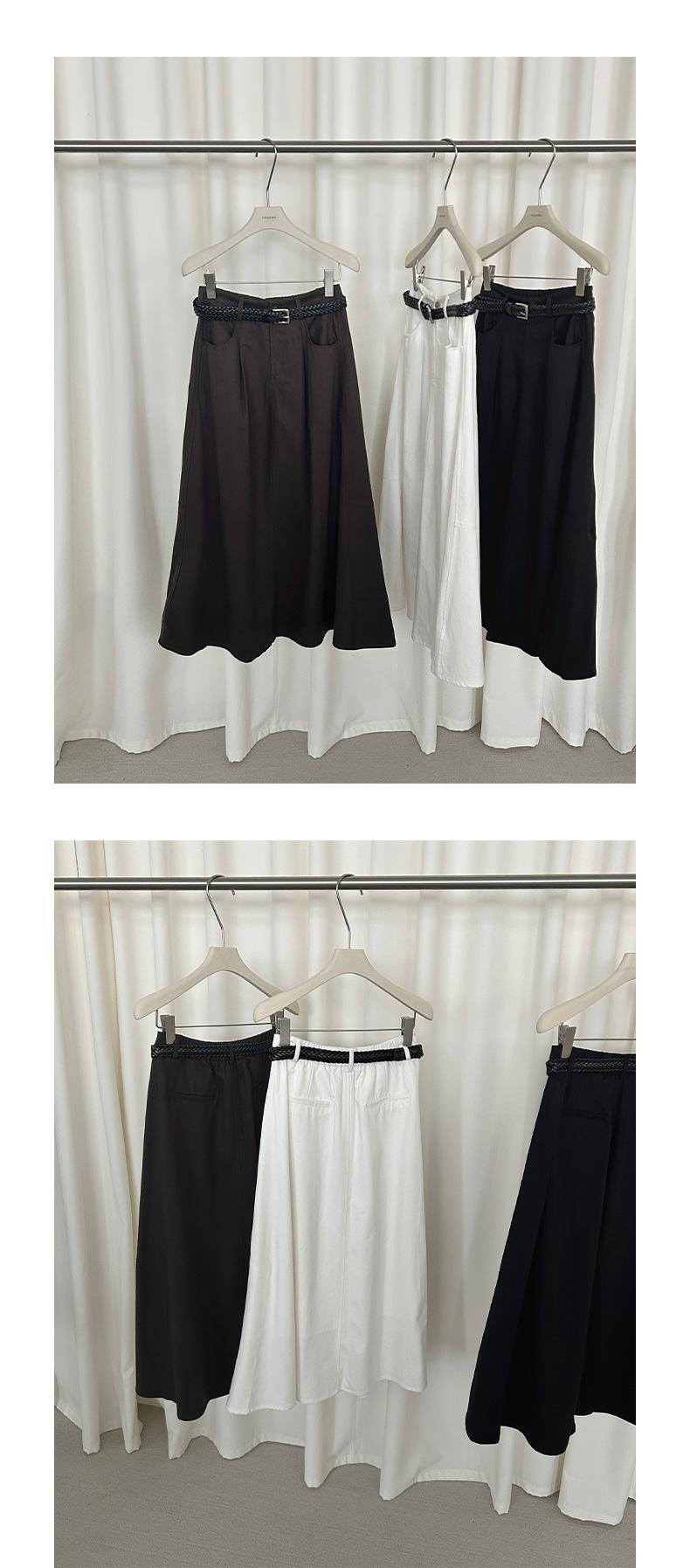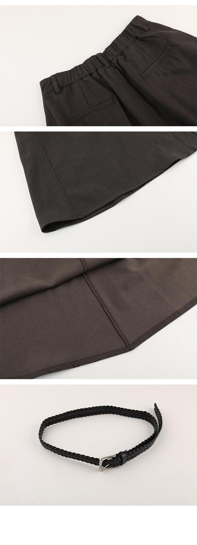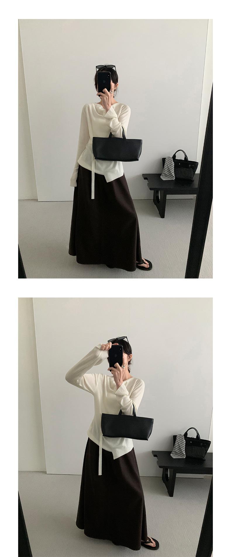 TG Falda Midi Lisa Acampanada Estilo Coreano de Moda con Cinturón de Punto Trenzado para Mujer Otoño 2025 Nueva Versátil Falda Larga 29024