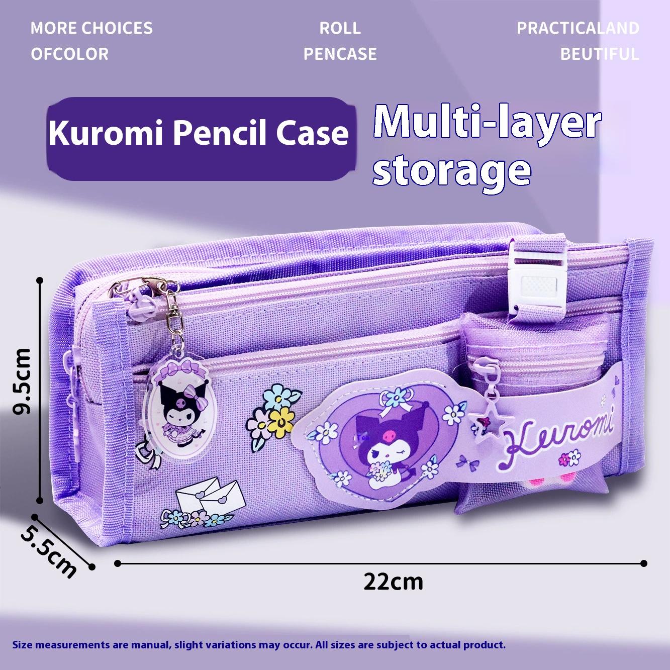 Estuche para lápices Kuromi de alta calidad, tres colores: morado, rosa y café, Cinco capas - Almacenamiento organizado todos los artículos de papelería caben en una bolsa, Tejido resistente de alta resistencia, Material lavable