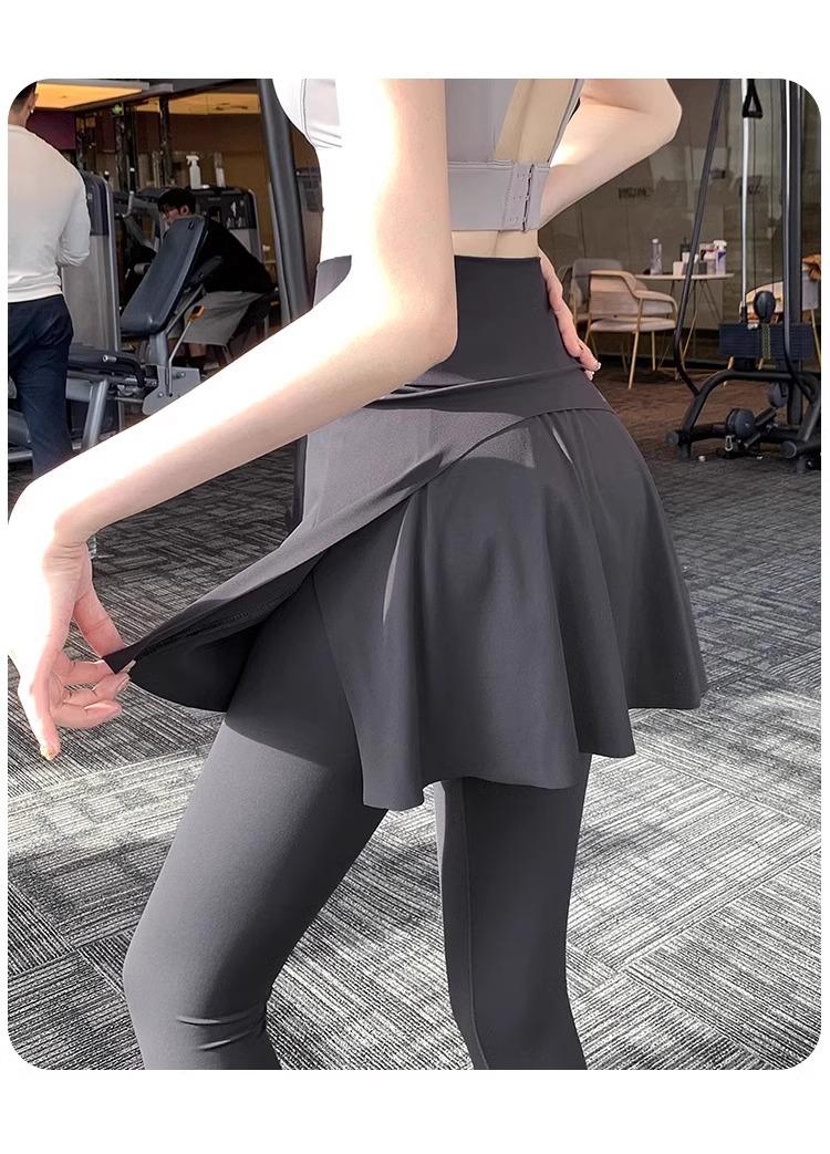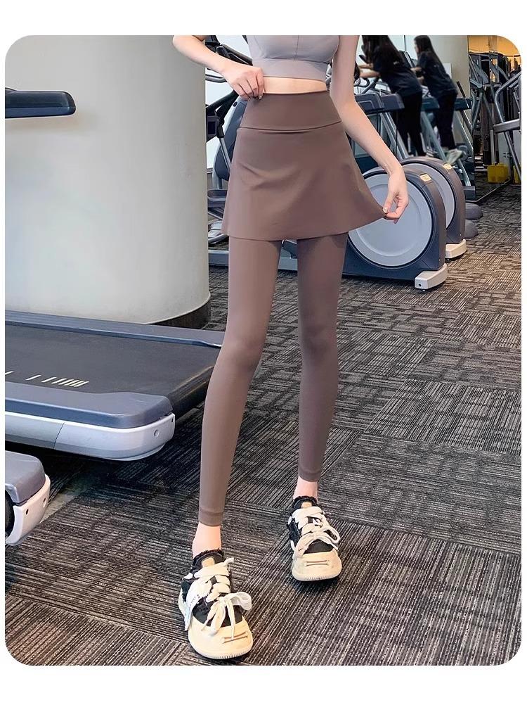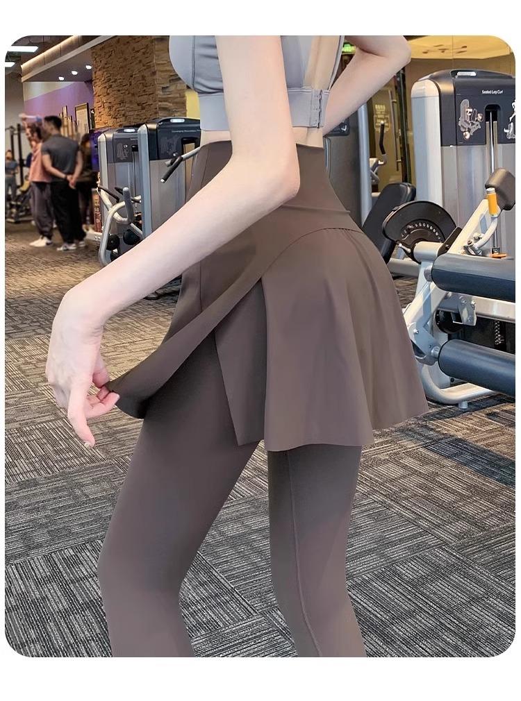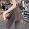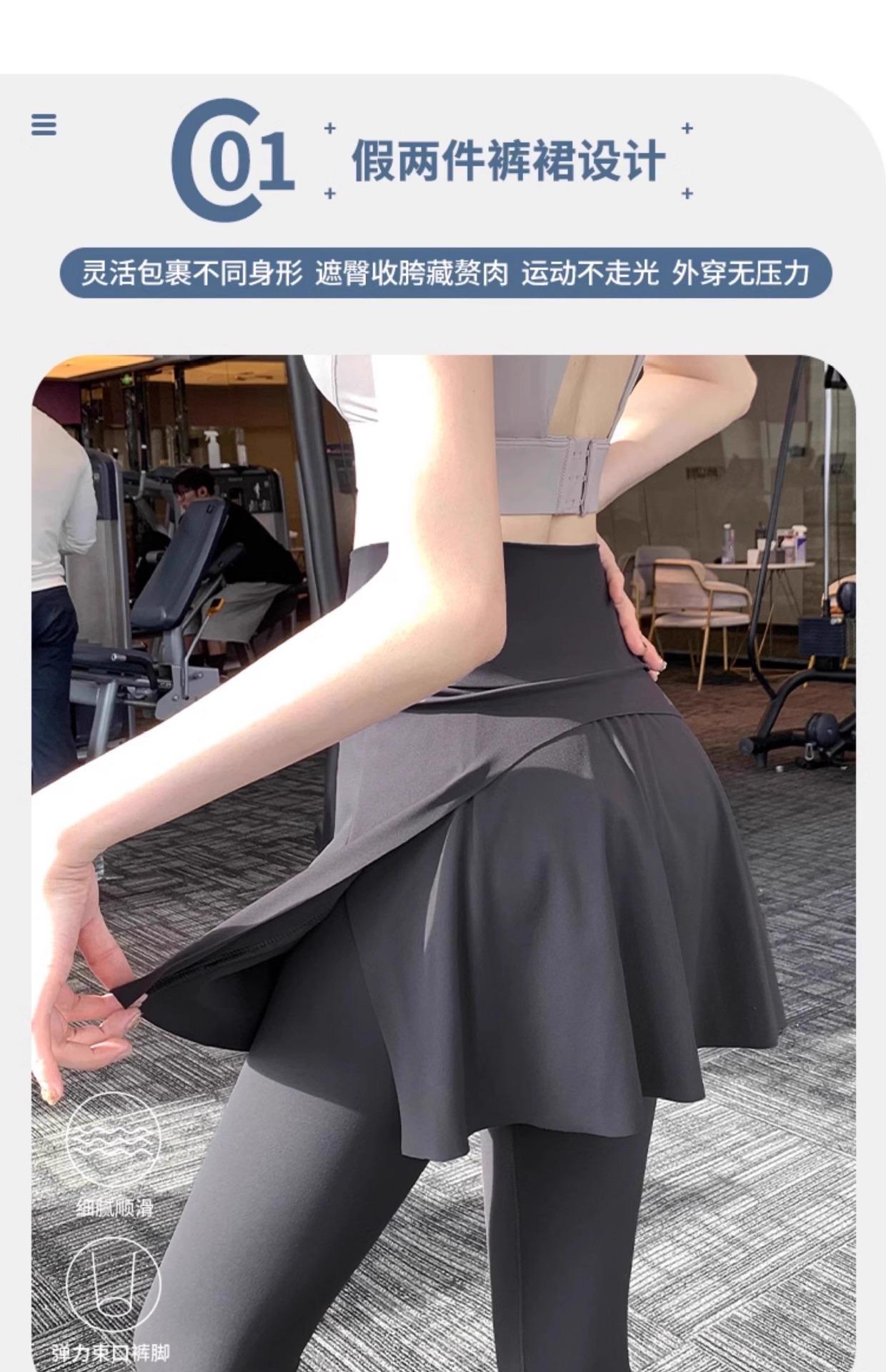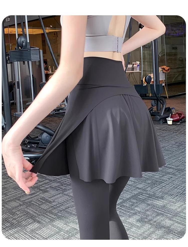 Pantalones de Yoga para Mujer Falso Dos Piezas Pantalón Falda Cintura Alta Levantamiento de Cadera Ajustado Antiexposición Pantalones Tiburón Pilates Talla Extra Pantalones de Fitness