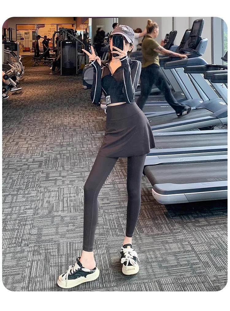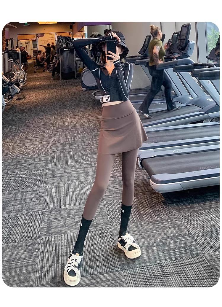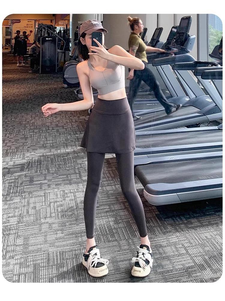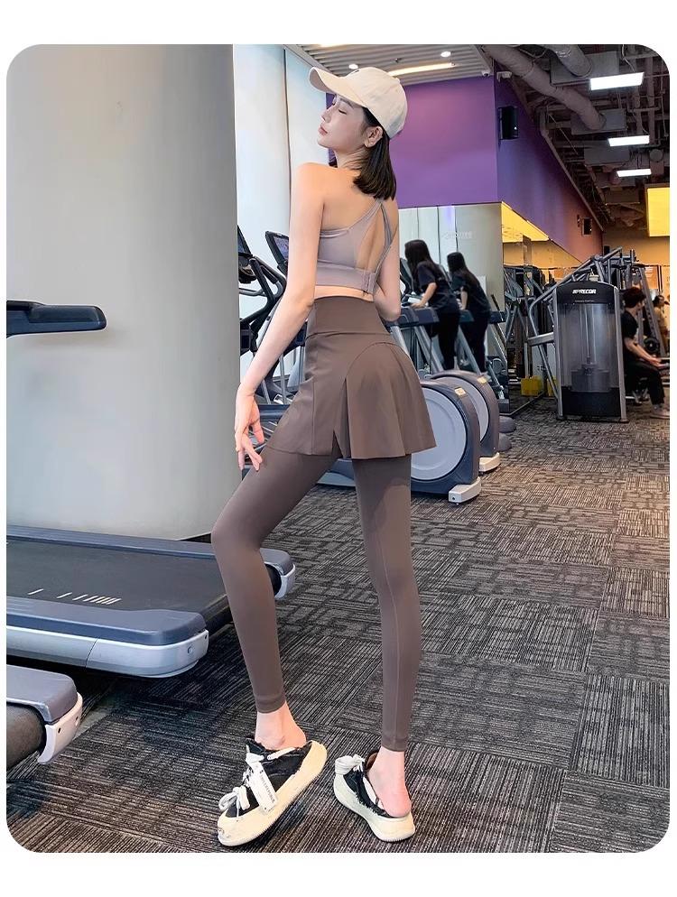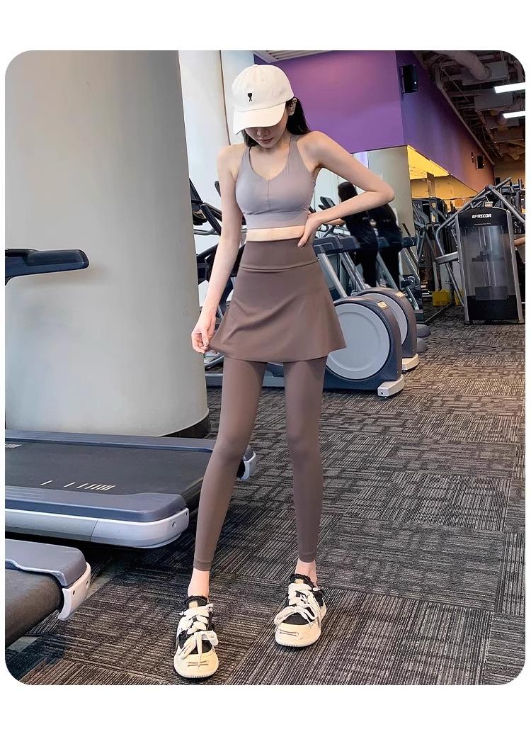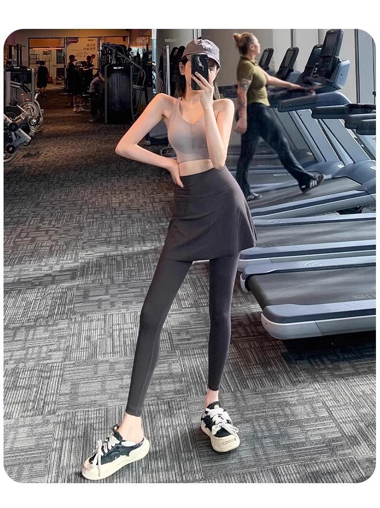 Pantalones de Yoga para Mujer Falso Dos Piezas Pantalón Falda Cintura Alta Levantamiento de Cadera Ajustado Antiexposición Pantalones Tiburón Pilates Talla Extra Pantalones de Fitness