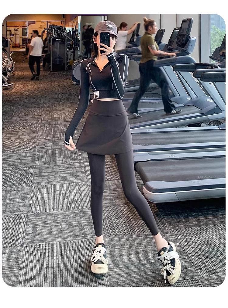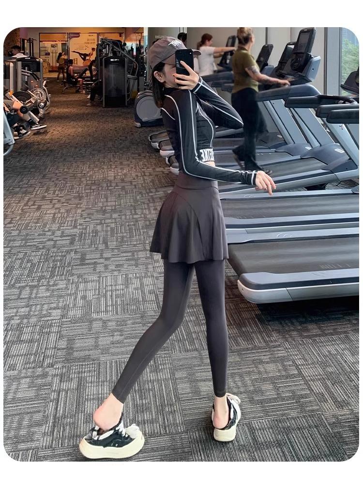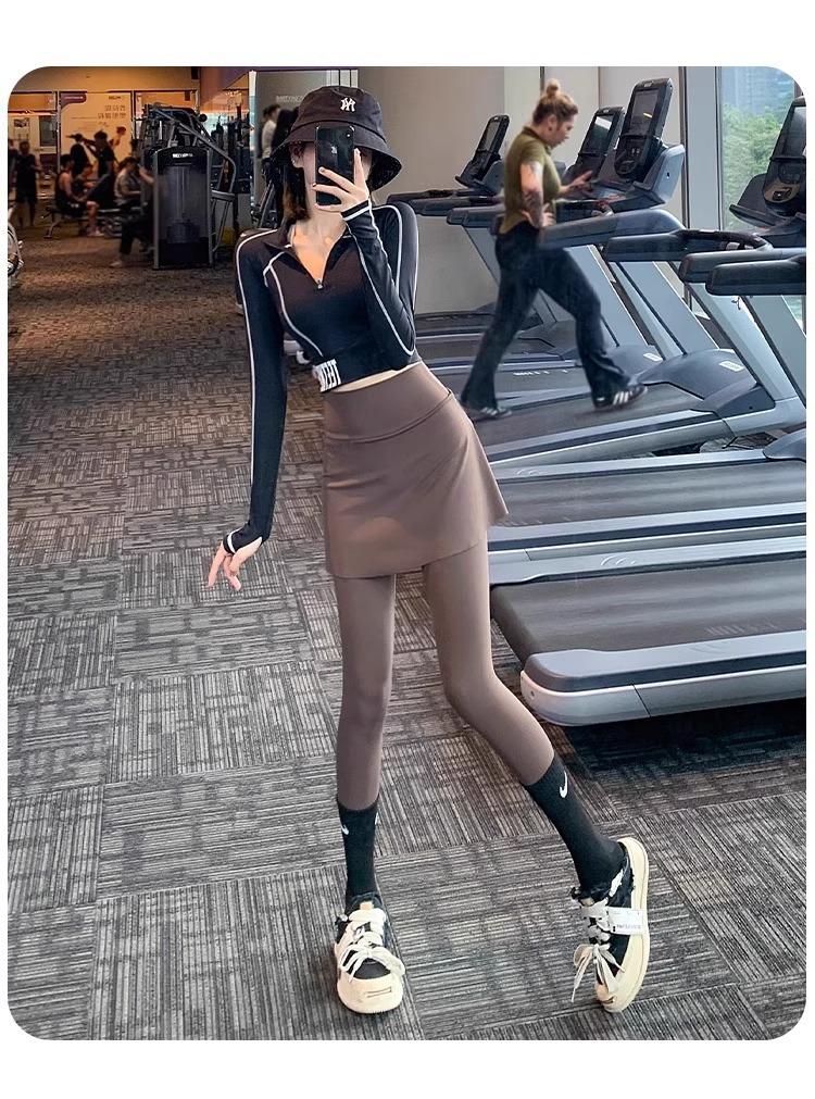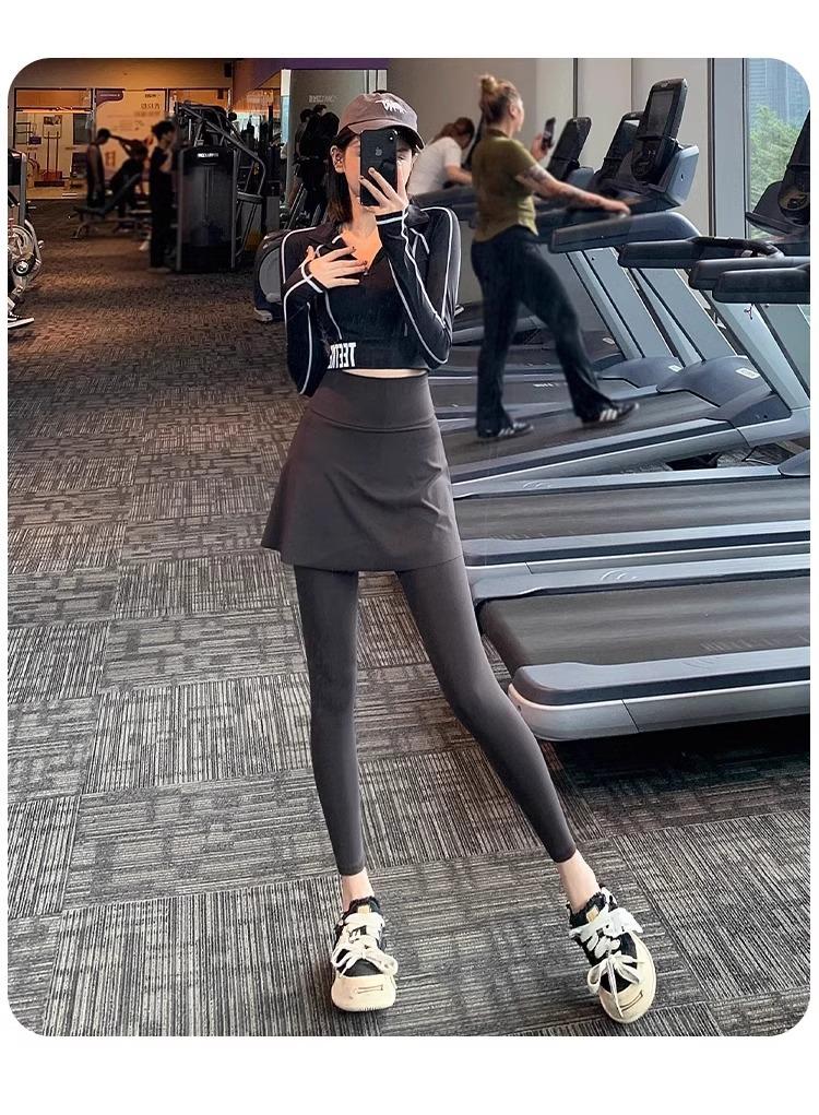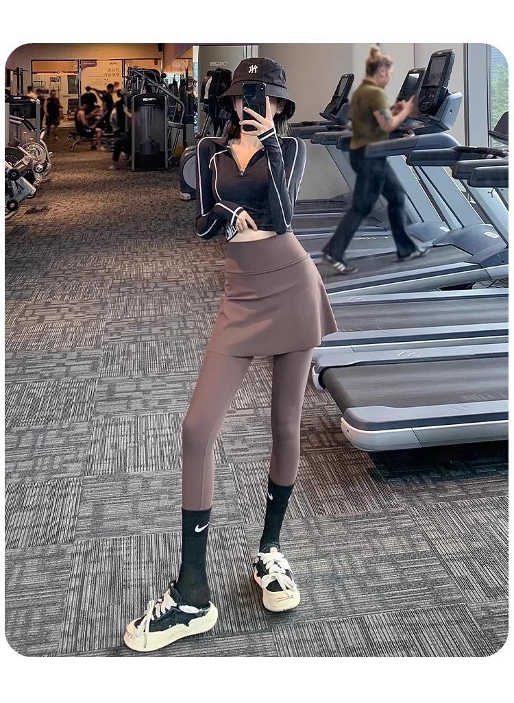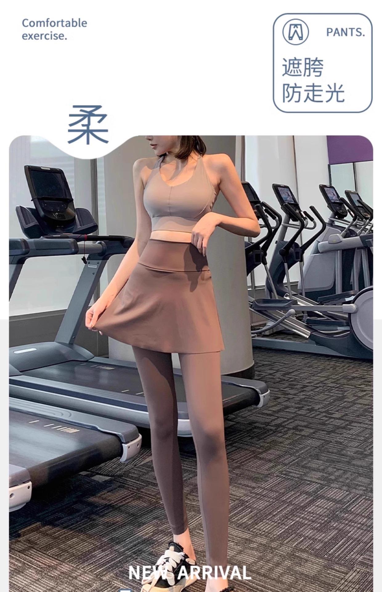 Pantalones de Yoga para Mujer Falso Dos Piezas Pantalón Falda Cintura Alta Levantamiento de Cadera Ajustado Antiexposición Pantalones Tiburón Pilates Talla Extra Pantalones de Fitness