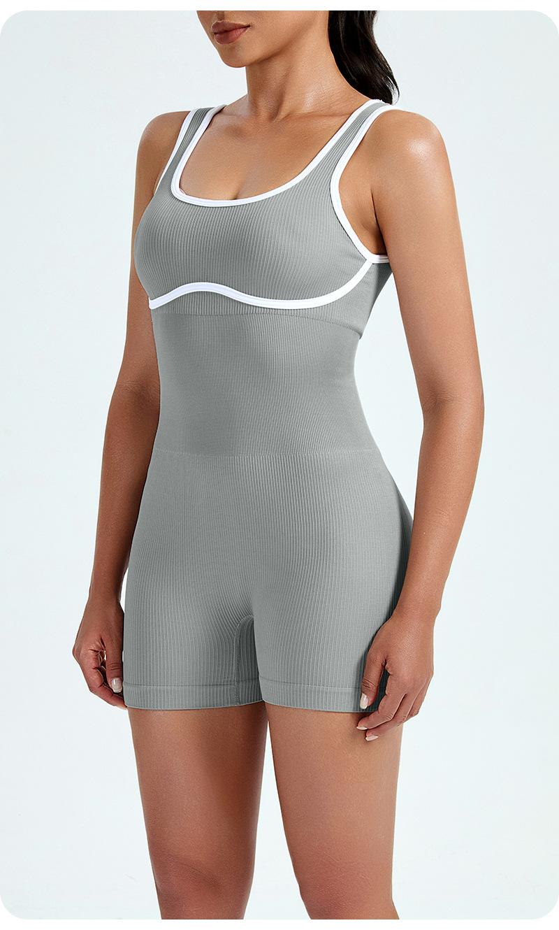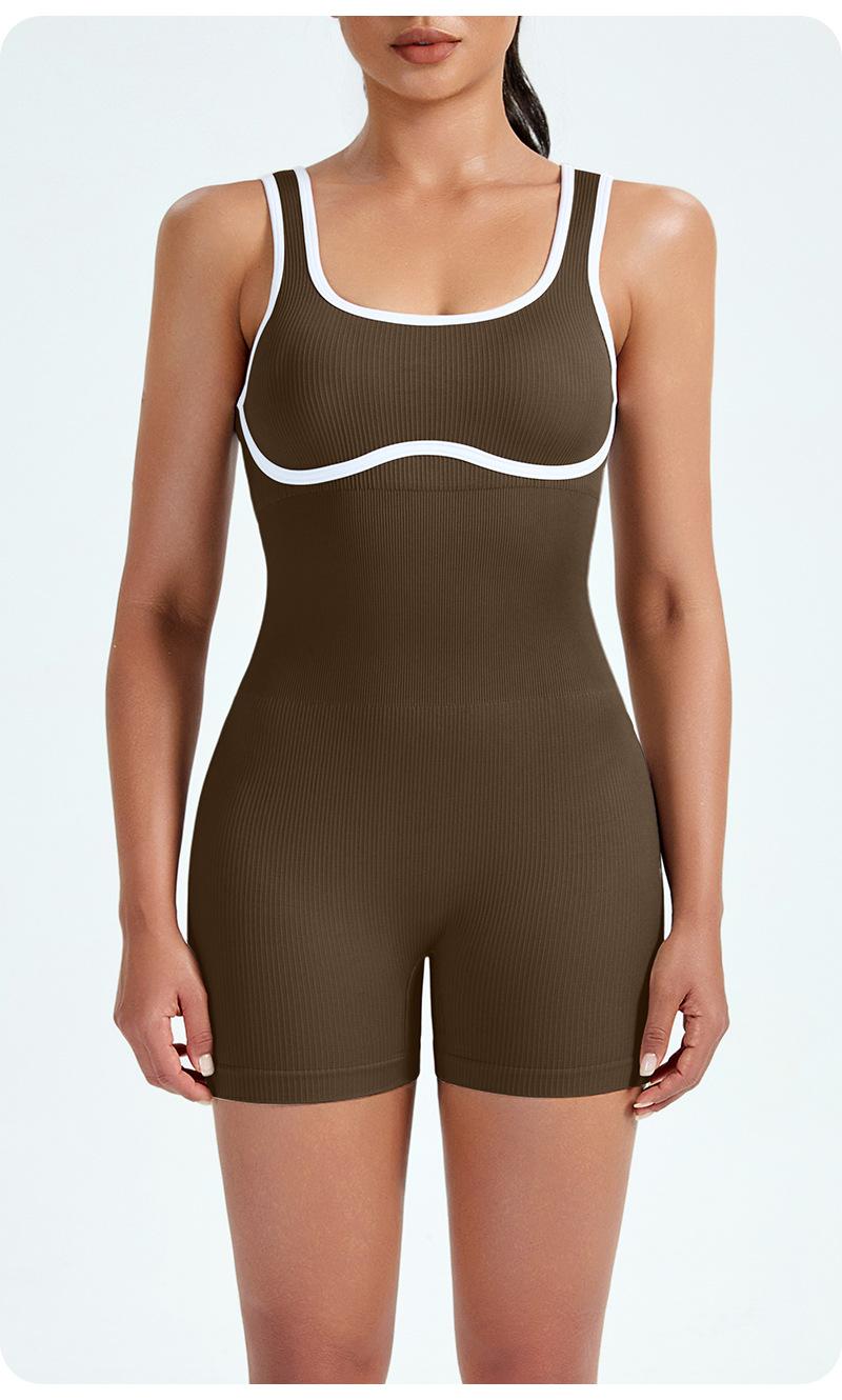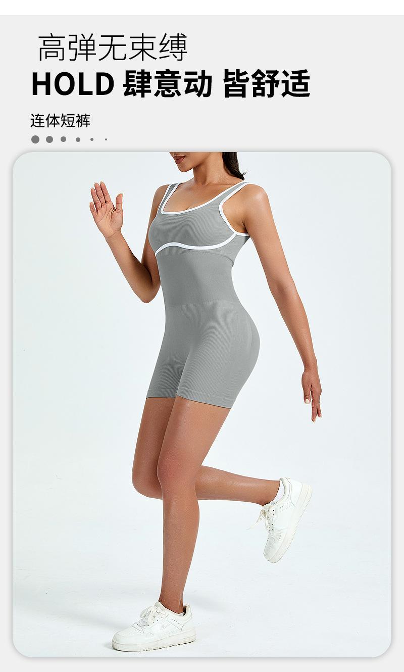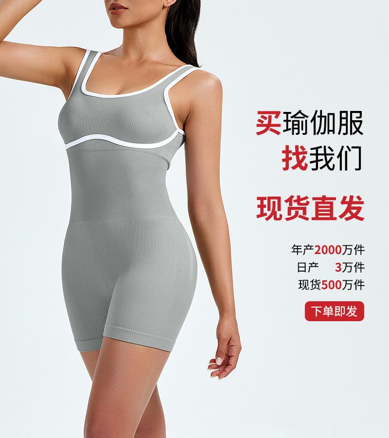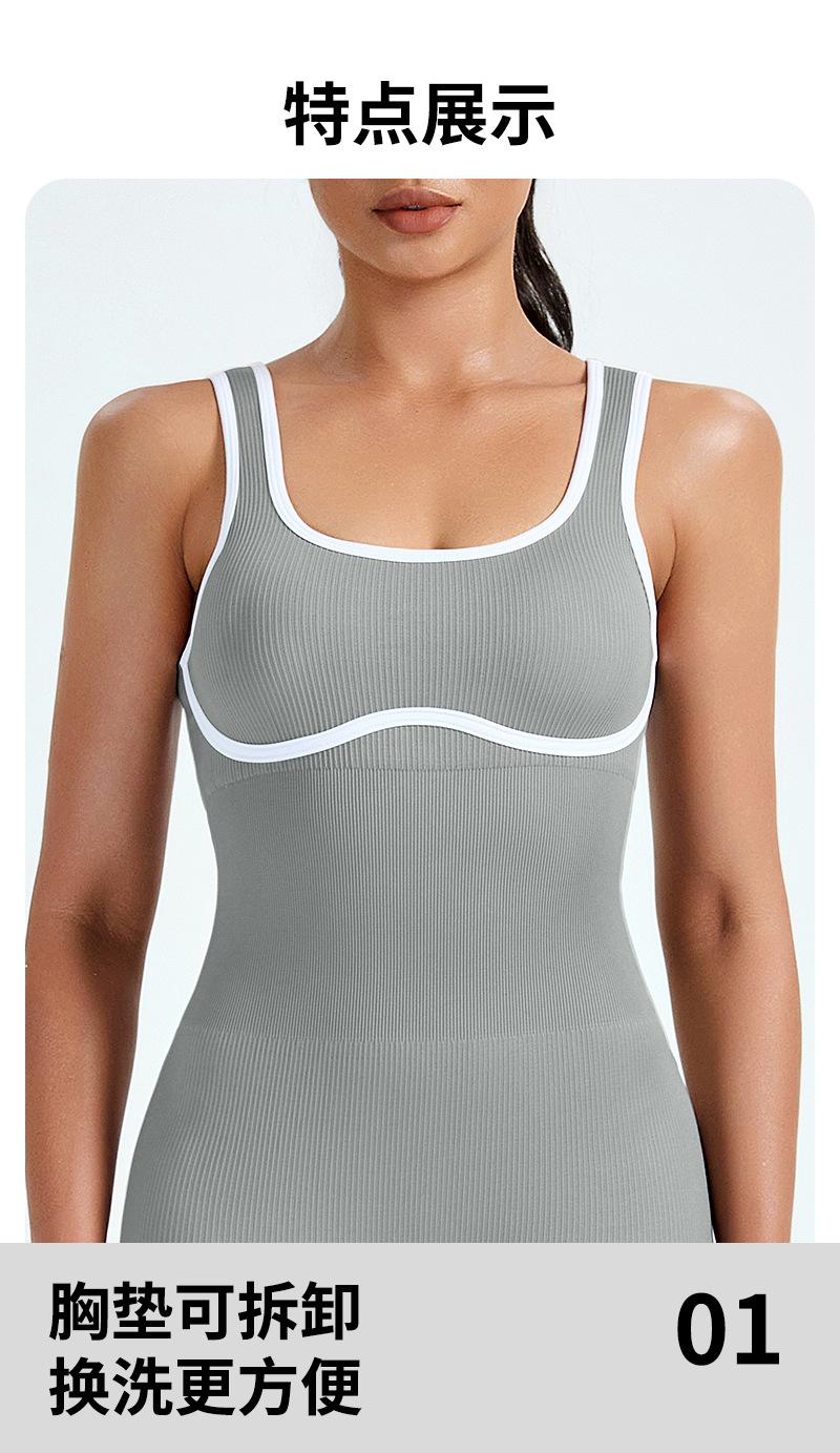Traje de yoga de una pieza transfronterizo Traje de fitness europeo y americano a prueba de golpes con bloques de color Traje de yoga para fitness para mujer Conjunto deportivo de Pilates