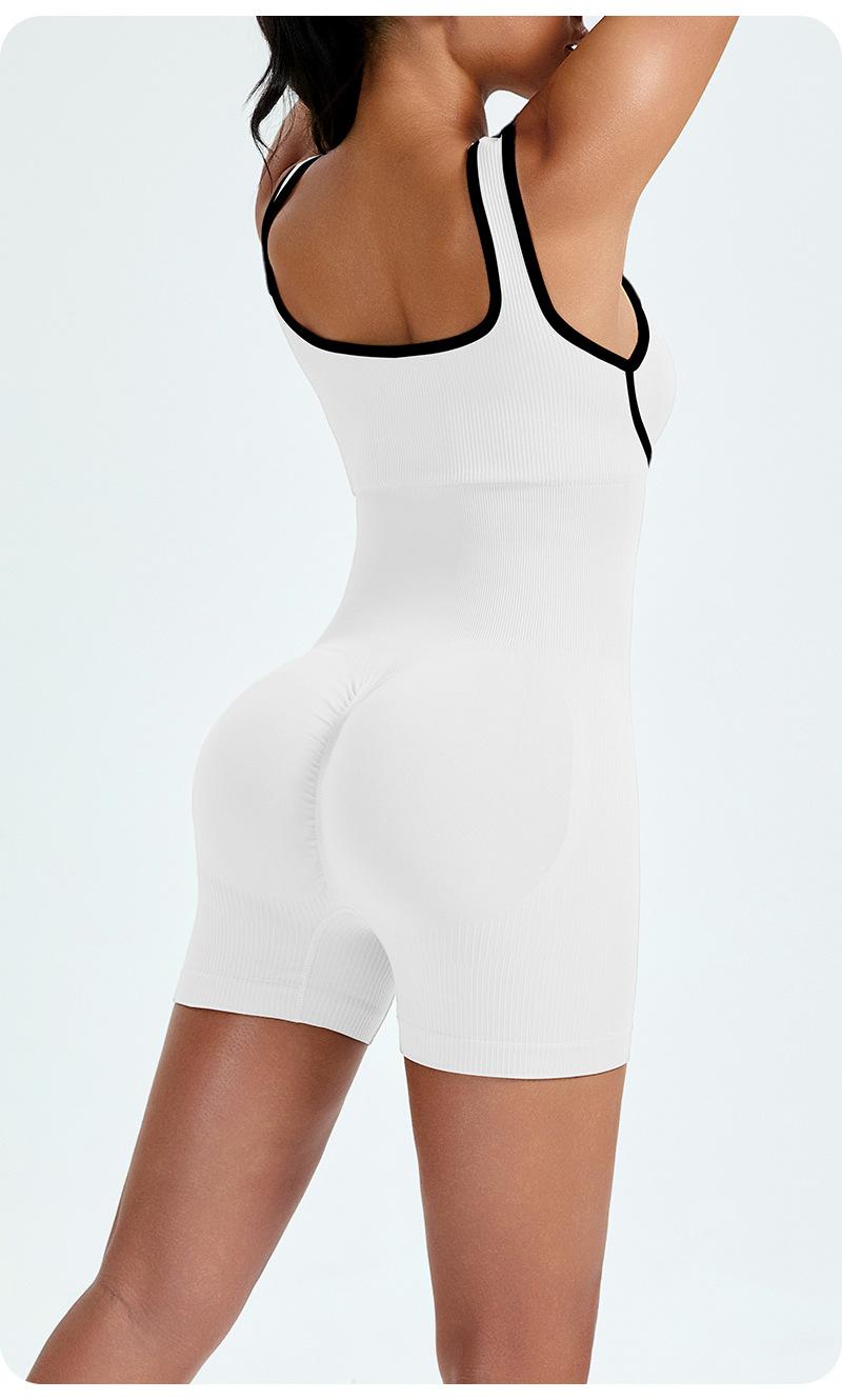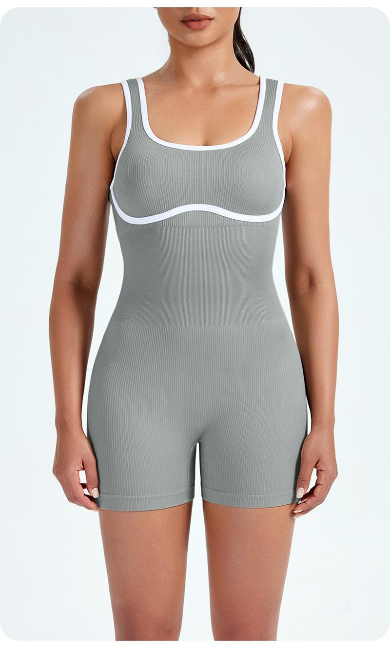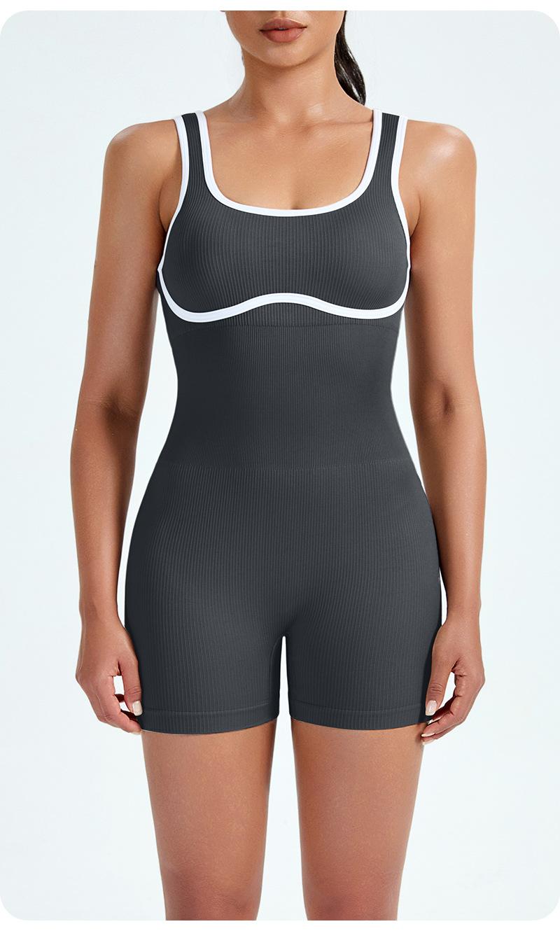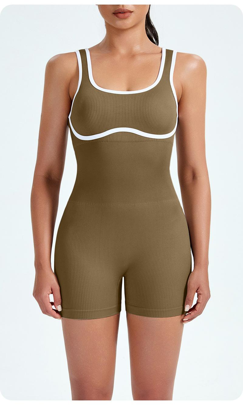 Traje de yoga de una pieza transfronterizo Traje de fitness europeo y americano a prueba de golpes con bloques de color Traje de yoga para fitness para mujer Conjunto deportivo de Pilates