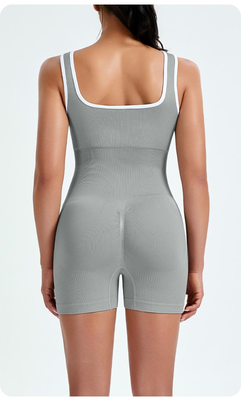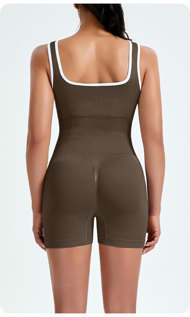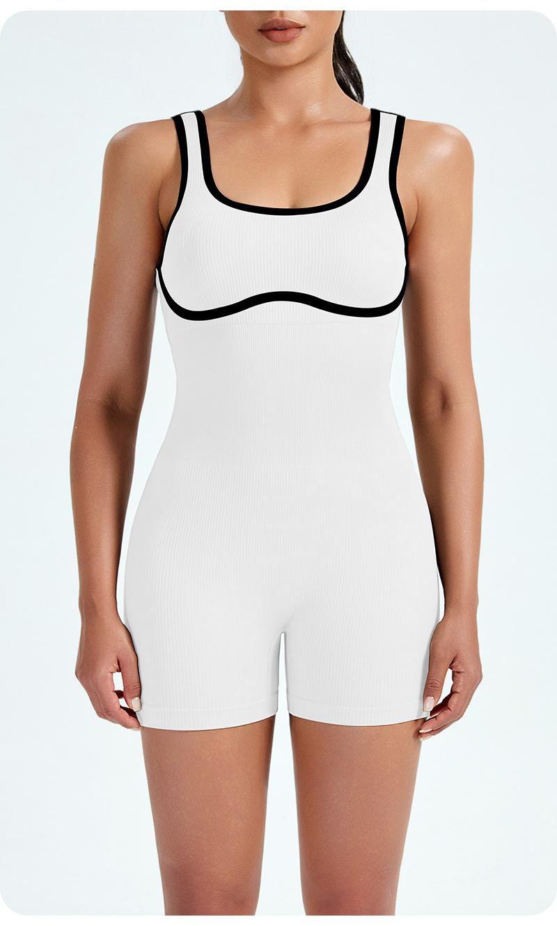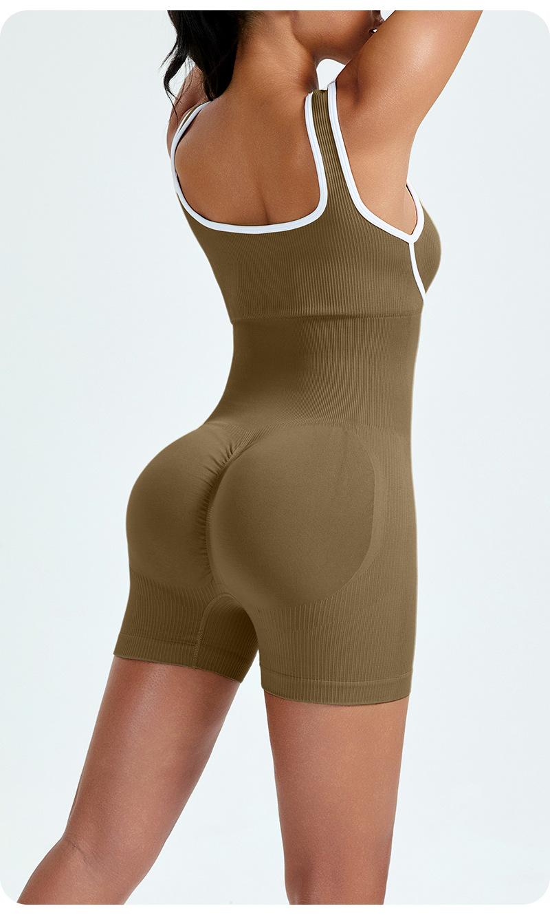 Traje de yoga de una pieza transfronterizo Traje de fitness europeo y americano a prueba de golpes con bloques de color Traje de yoga para fitness para mujer Conjunto deportivo de Pilates