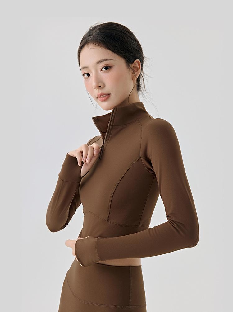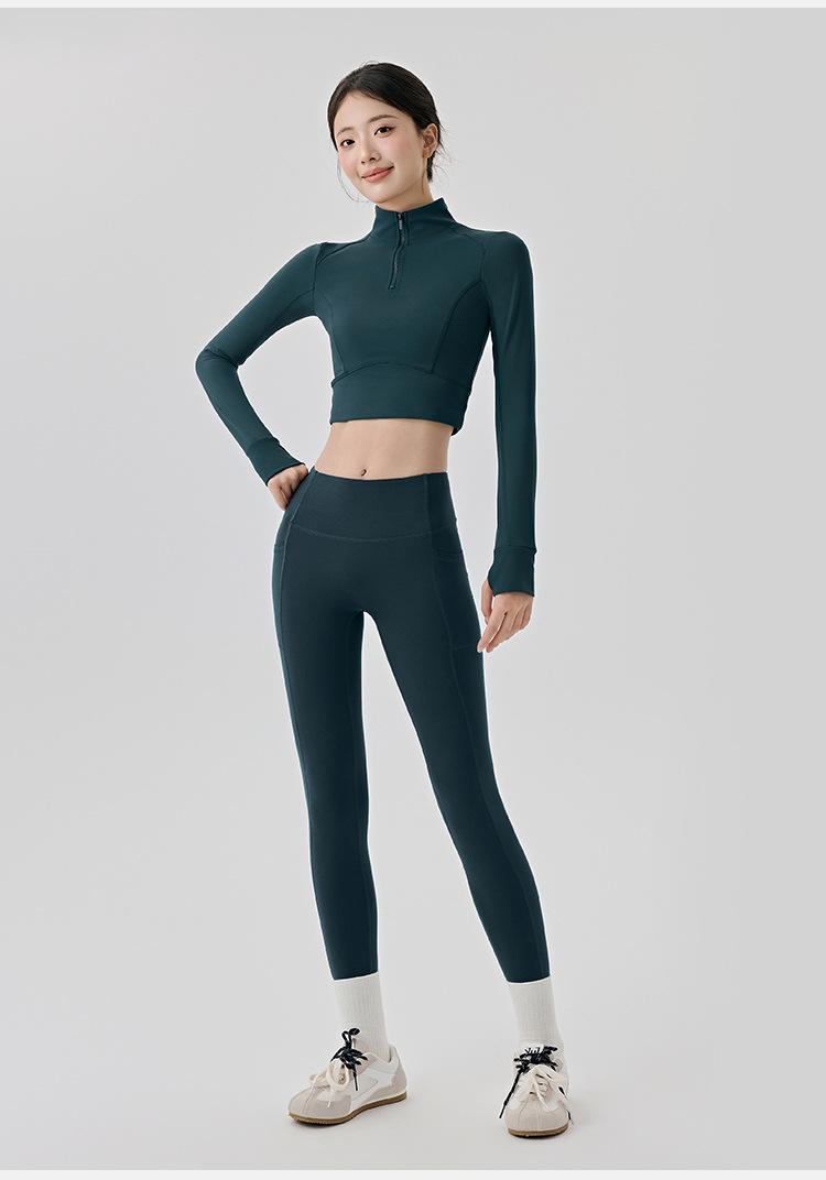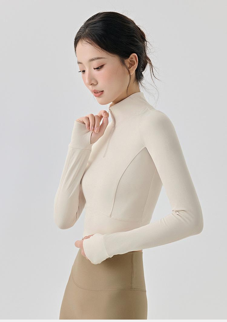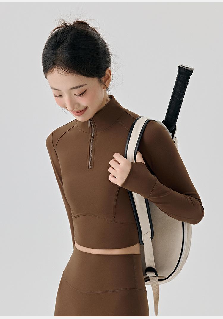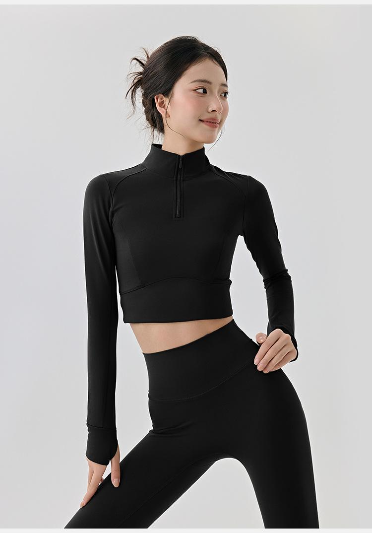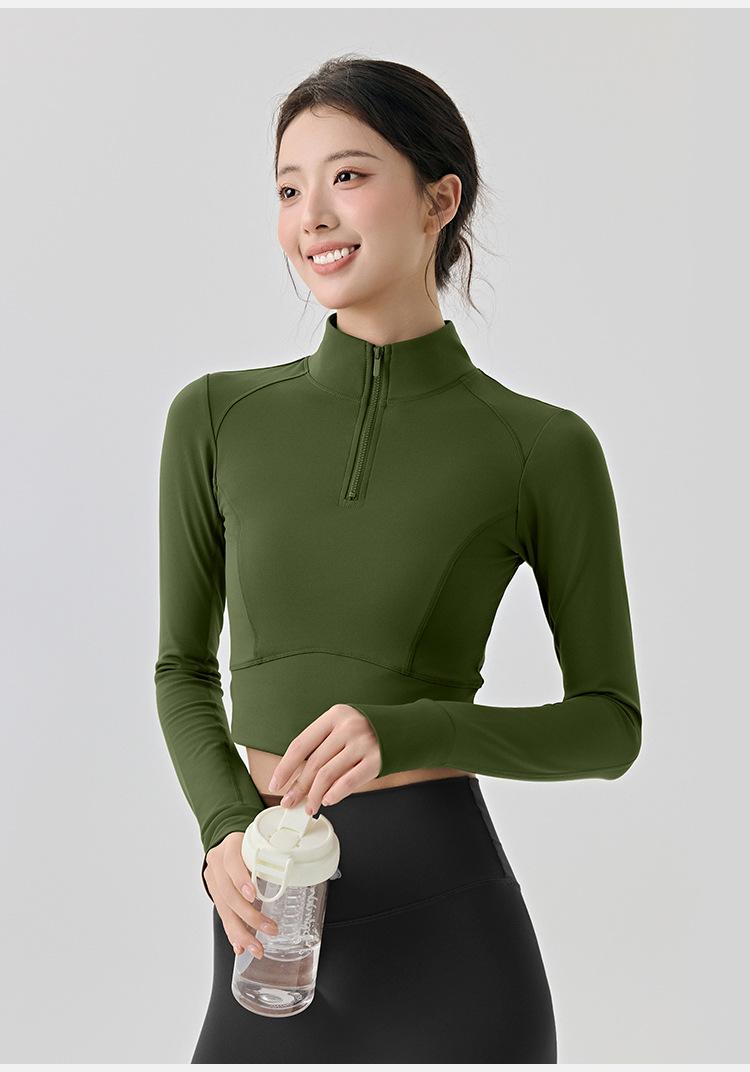 Nuevo Top de Yoga de Media Cremallera con Forro Polar de Manga Larga para Mujer, Adelgazante, Corto, para Fitness, para Correr, Entrenamiento, Deportivo
