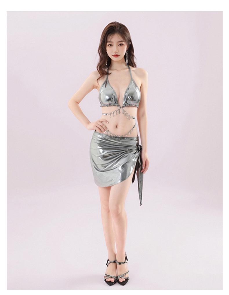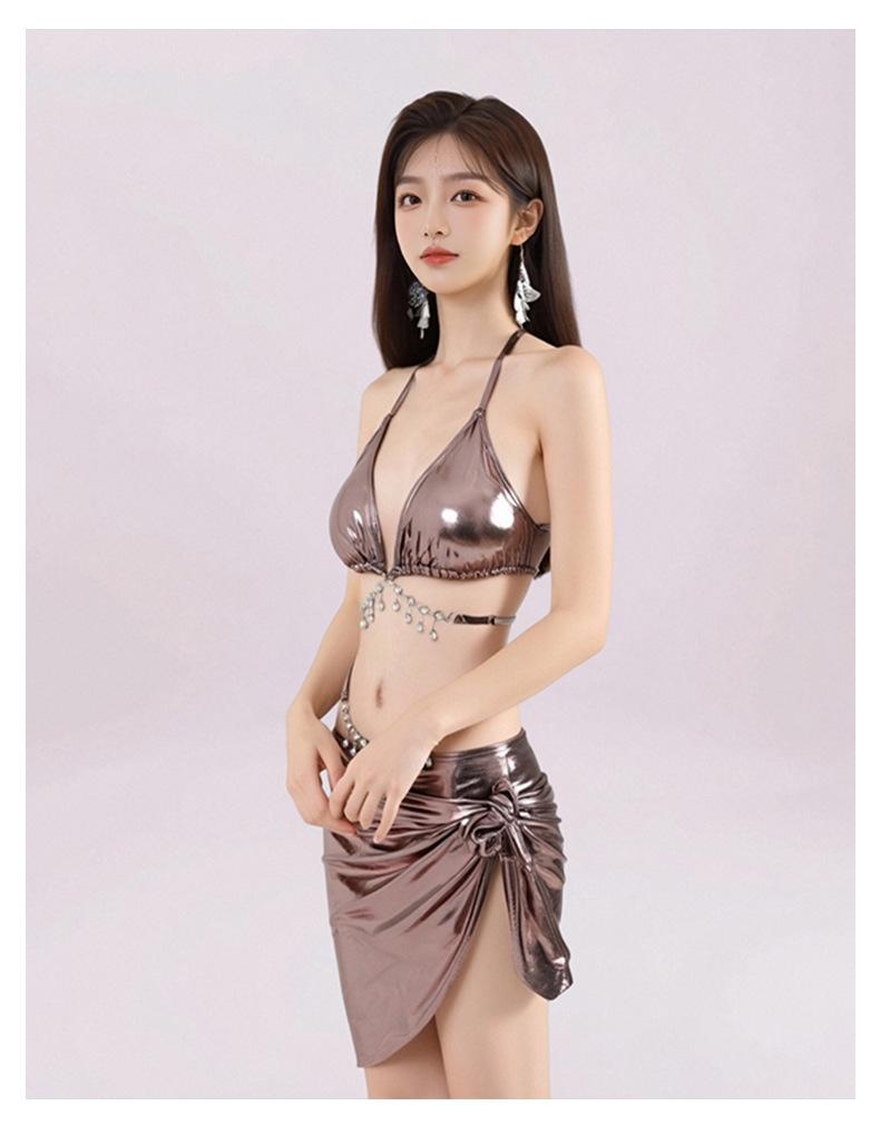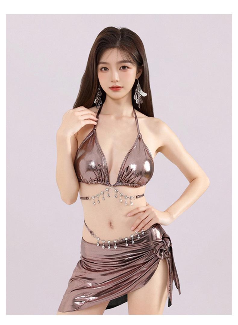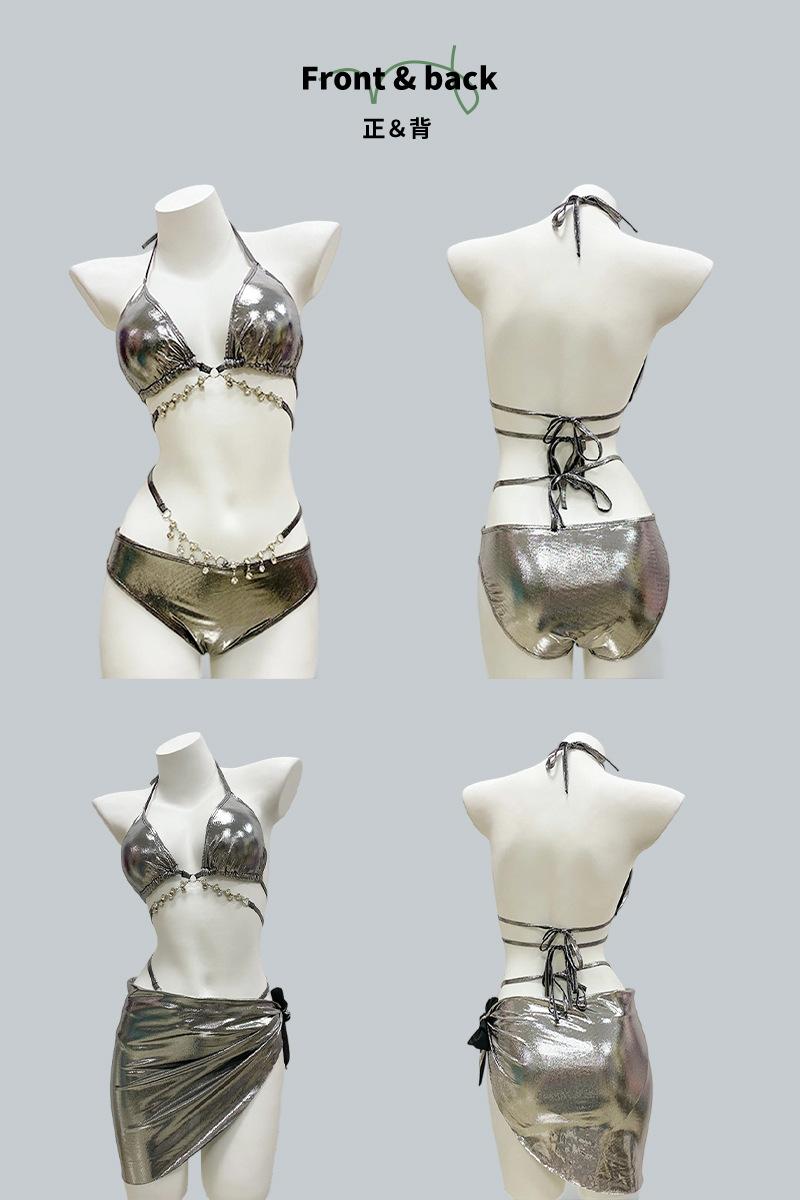 202 Nuevo Conjunto de Bikini Brillante Sexy Halter Dividido Traje de Baño Decoración de Cadena Ropa de Playa para Vacaciones