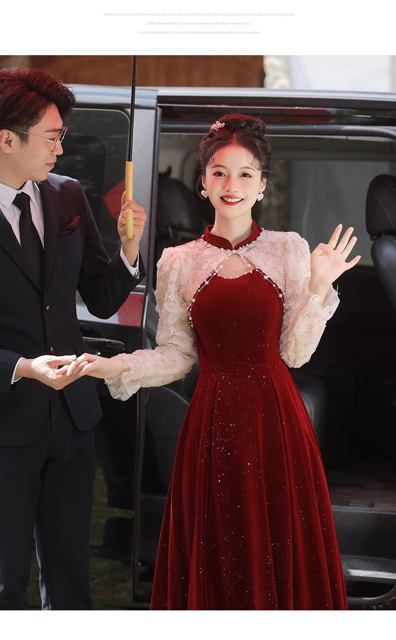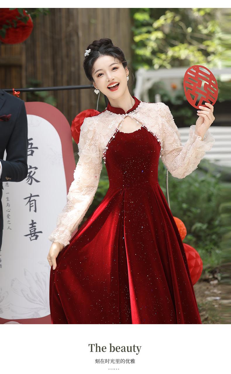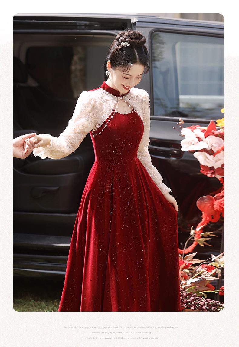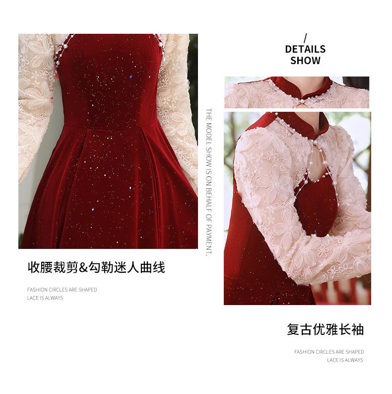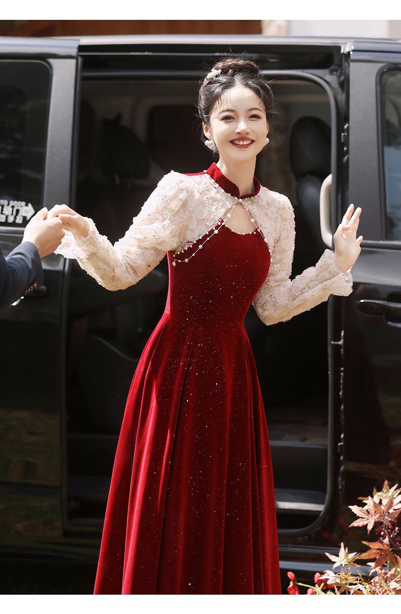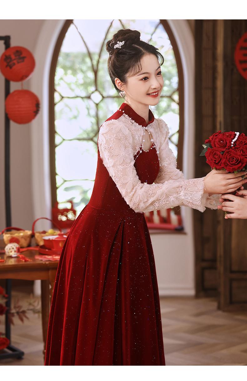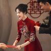 Nuevo Vestido de Brindis Estilo Chino para Novias 2025 Nuevo Vestido de Compromiso de Alta Gama para Boda Rojo Manga Larga Verano
