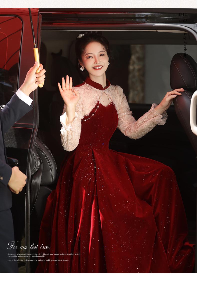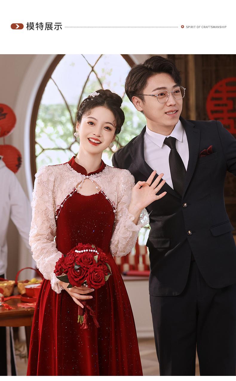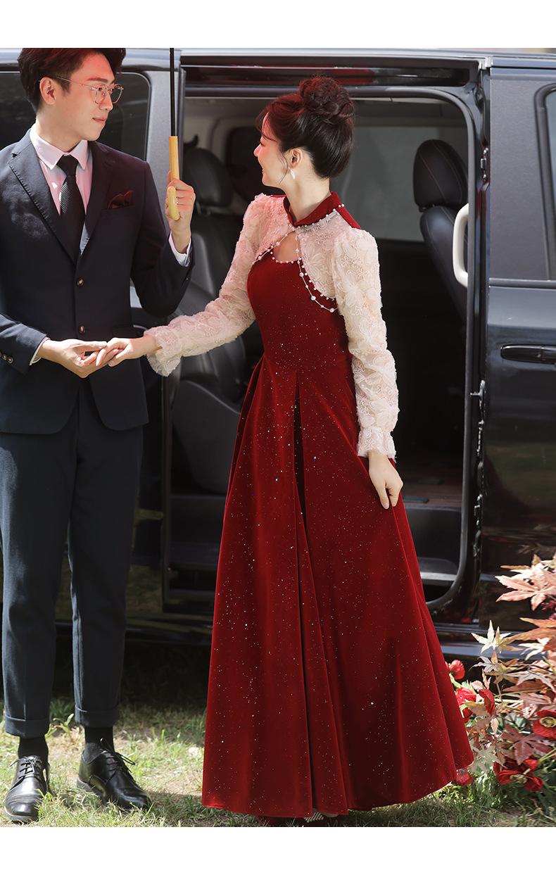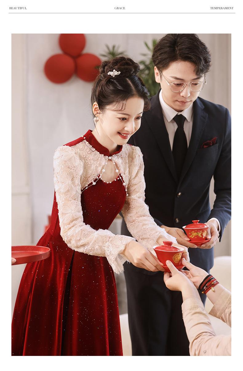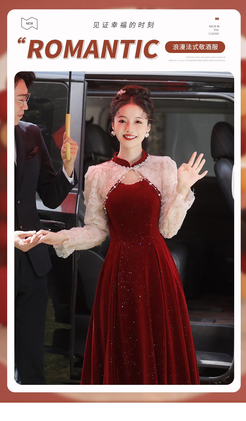 Nuevo Vestido de Brindis Estilo Chino para Novias 2025 Nuevo Vestido de Compromiso de Alta Gama para Boda Rojo Manga Larga Verano