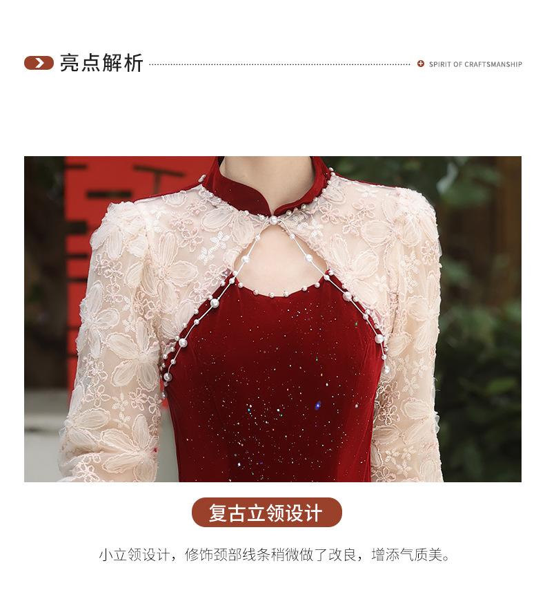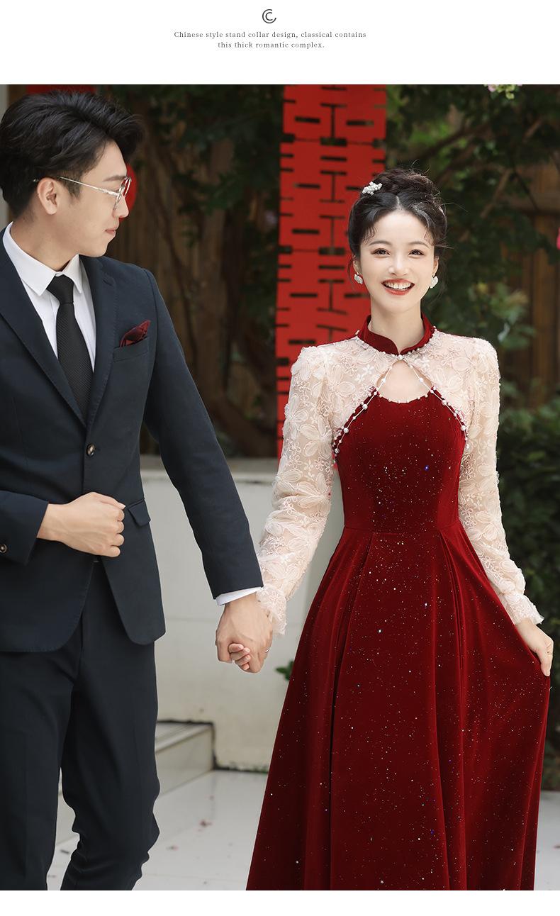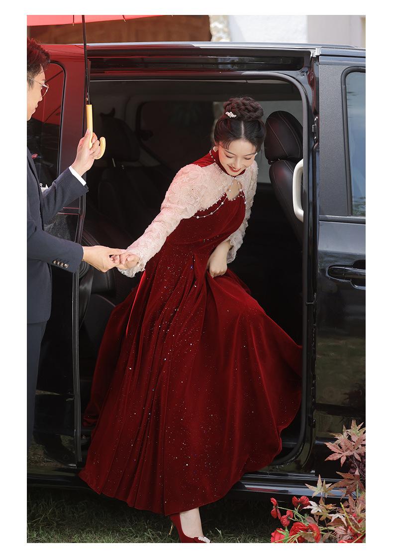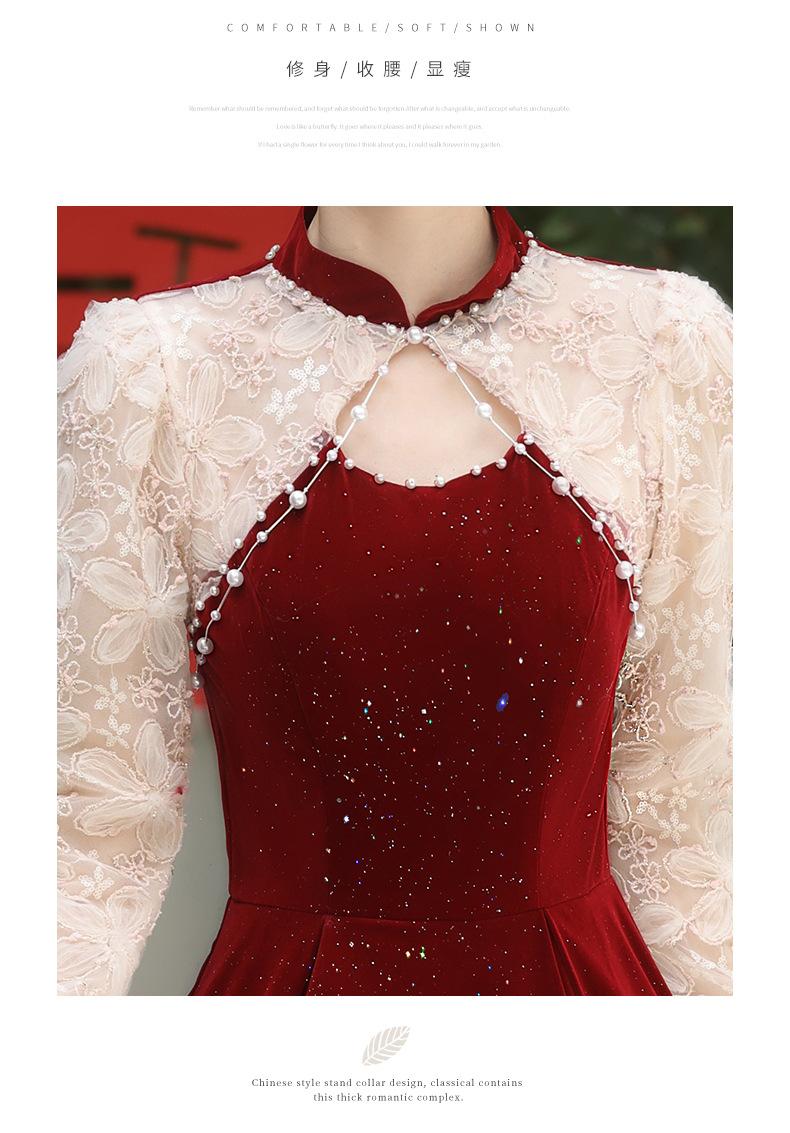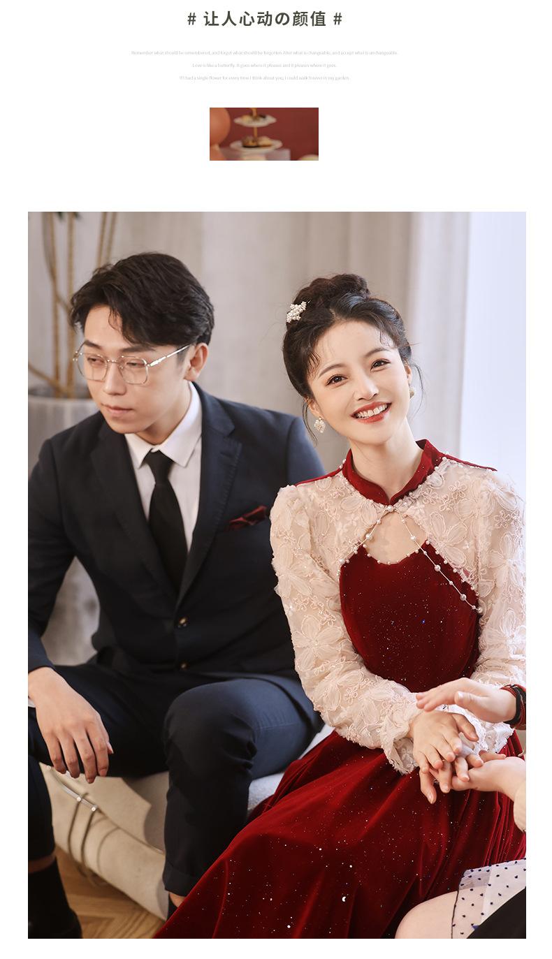 Nuevo Vestido de Brindis Estilo Chino para Novias 2025 Nuevo Vestido de Compromiso de Alta Gama para Boda Rojo Manga Larga Verano