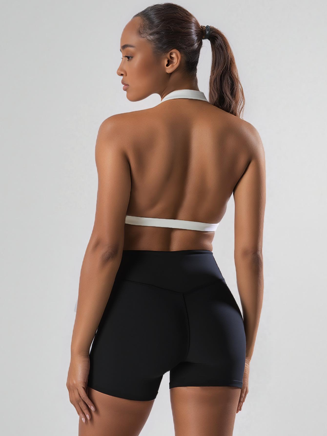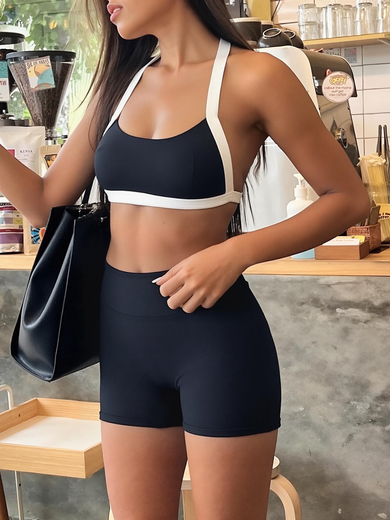 2025 Nuevo Sujetador Halter Europeo y Americano Transfronterizo Espalda Hermosa Cintura Alta Chica Picante Set de Fitness Shorts para Yoga Deportivo Levantamiento de Cadera