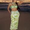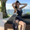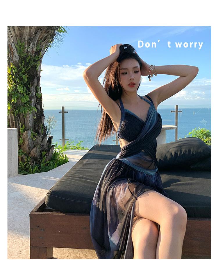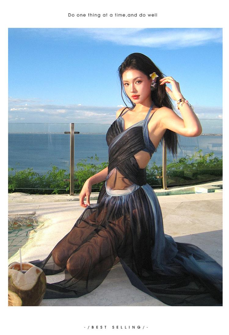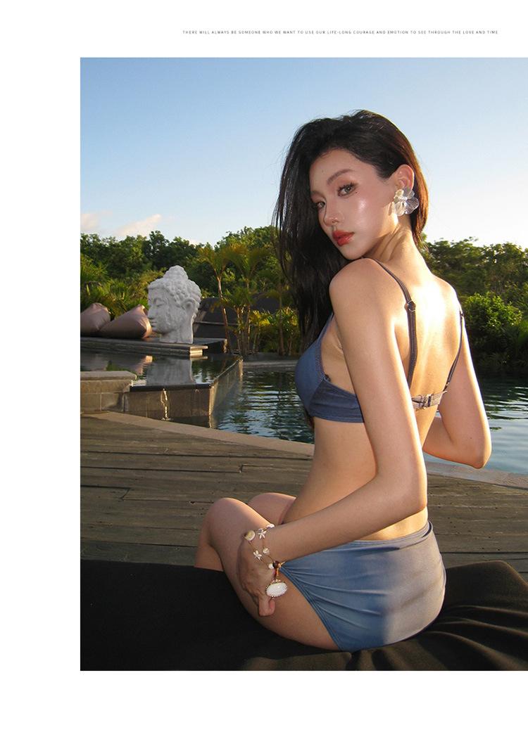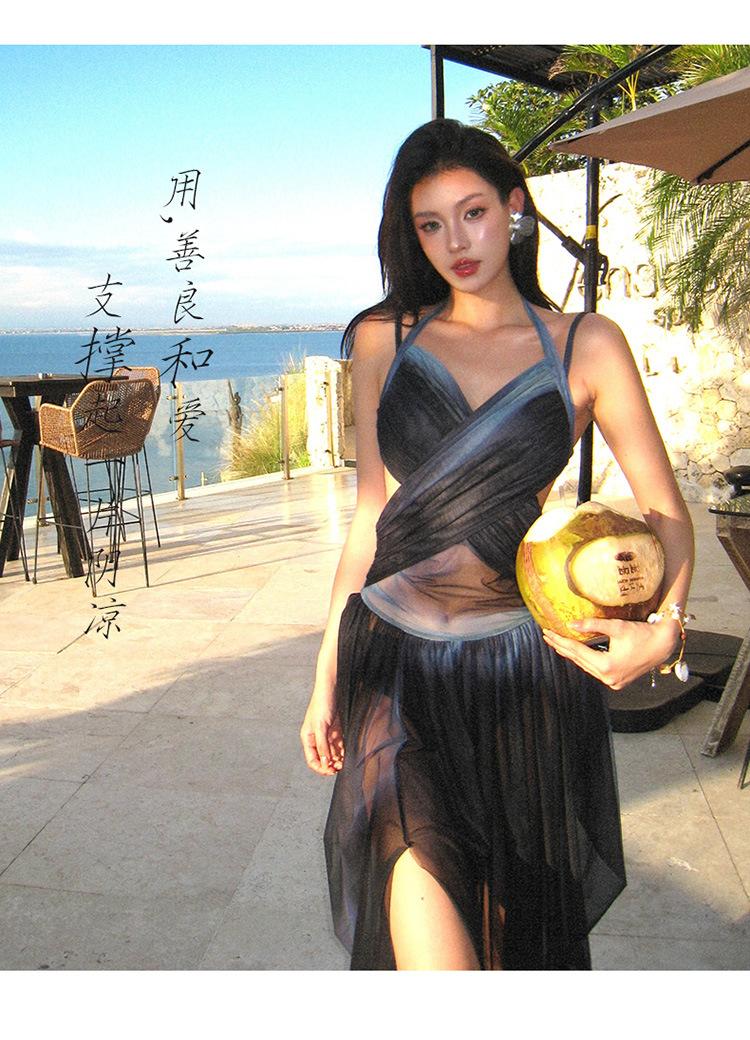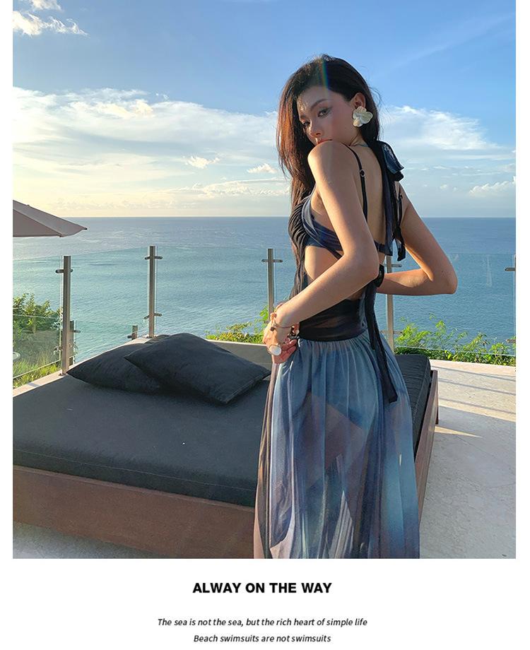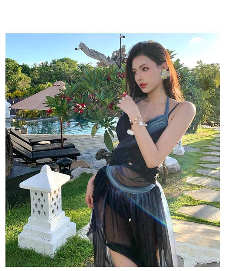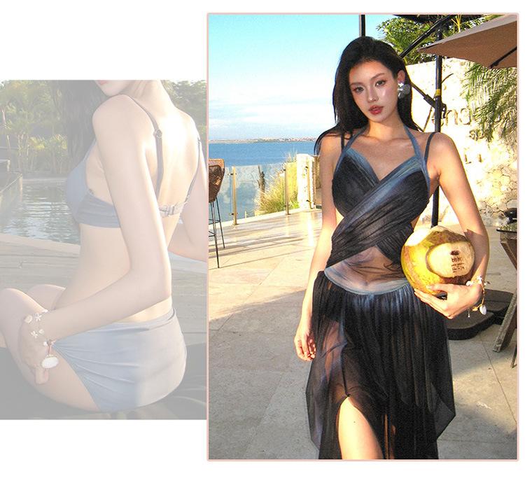 Traje de baño halter de tres piezas con abertura nueva 2025, falda de playa, conjunto de verano para la playa, traje de baño para mujer con ambiente fotográfico