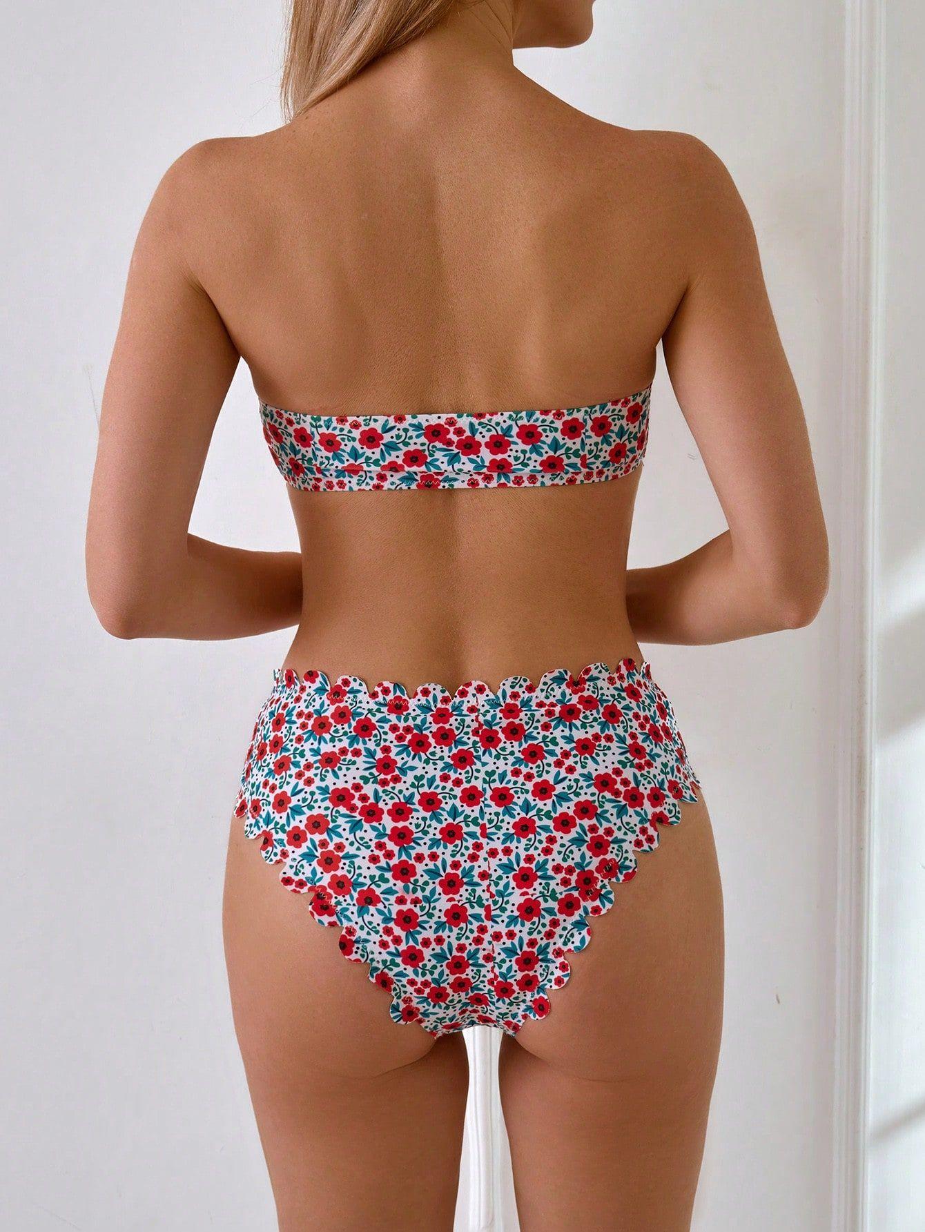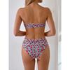 Traje de baño dividido de estilo nuevo europeo y americano para mujer, Bikini bandeau floral, Traje de baño ajustado sin espalda transfronterizo para mujer